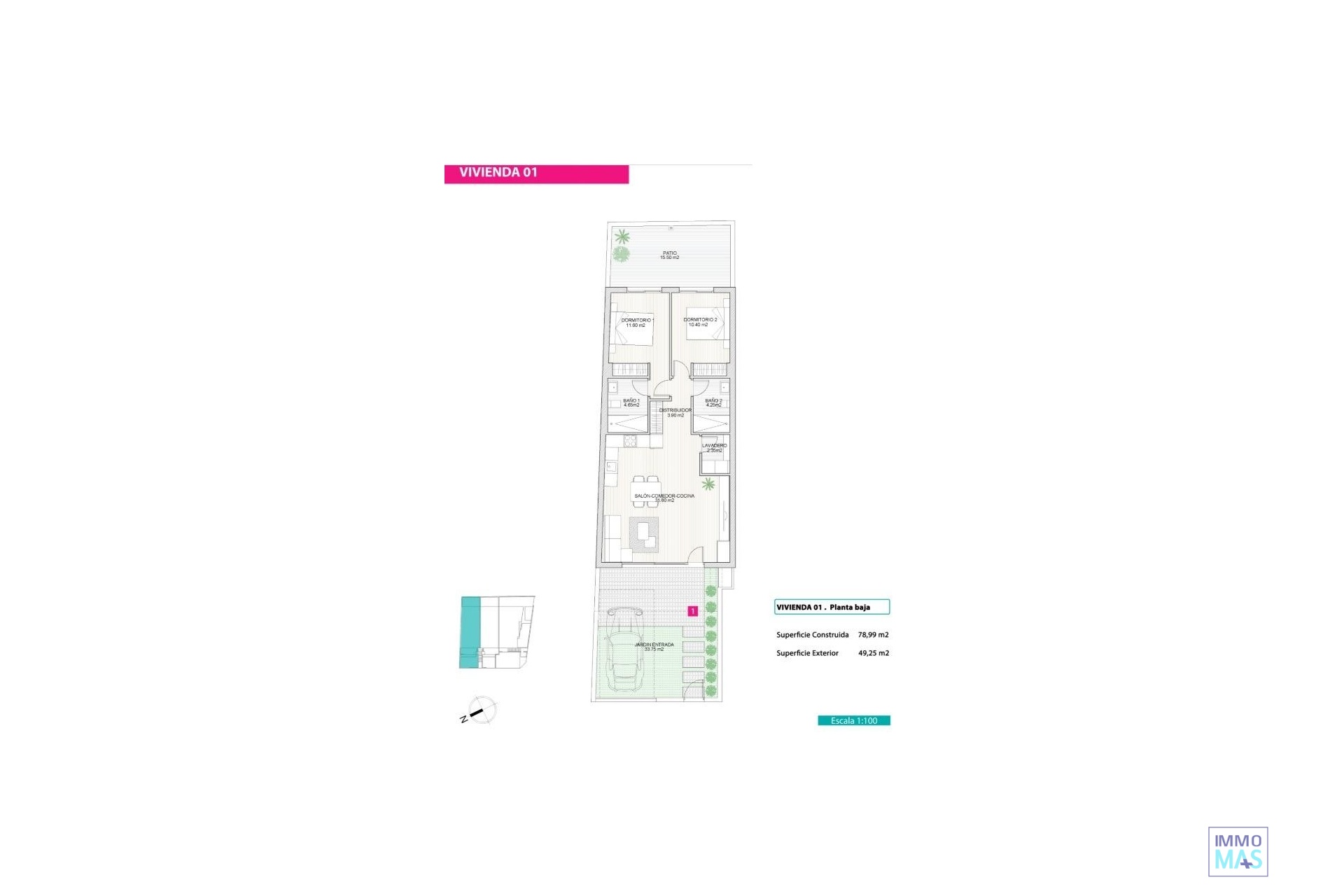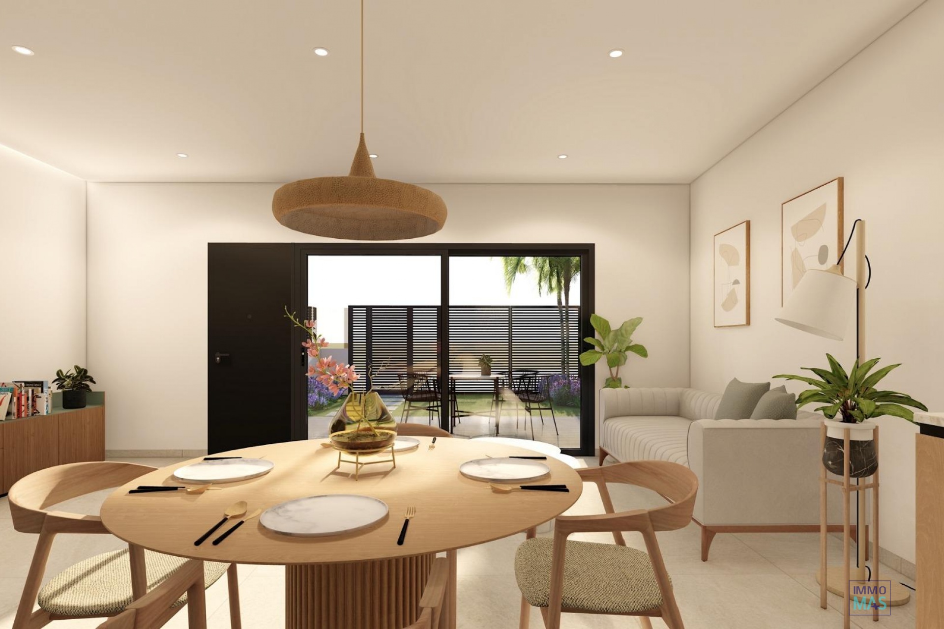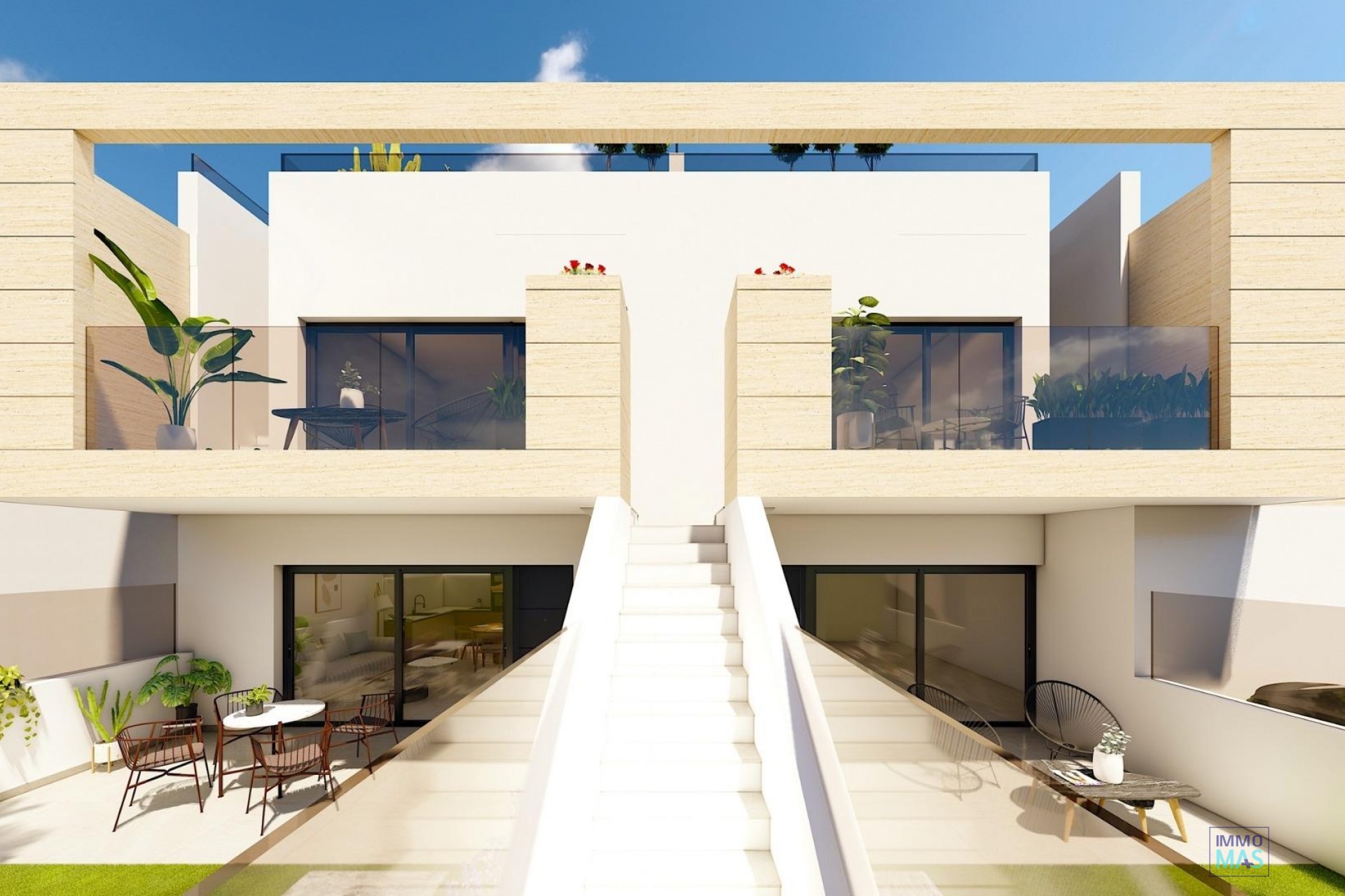 Bungalows de nueva construcción en Lo Pagán: Vida Moderna Cerca de la Playa Ubicación privilegiada en Lo Pagán, San Pedro del Pinatar Descubra el estilo de vida costero perfecto con estos bungalows de nueva construcción en Lo Pagán, una encantadora zona de San Pedro del Pinatar. Situado a sólo 1,2 km de la hermosa Playa de Villa Nanitos, estás a 15 minutos a pie de playas de arena y del icónico Molino Quintín. Esta ubicación privilegiada es perfecta para los amantes de la playa y los deportes náuticos, con clubes náuticos y puertos deportivos en las inmediaciones. Además, todos los servicios esenciales como supermercados, bares y restaurantes están a sólo unos minutos a pie. Características Estos elegantes bungalows disponen de 2 dormitorios, 2 baños, cocina americana y sala de estar. Los bungalows disponen de preinstalación de aire acondicionado, armarios empotrados e interiores modernos. Las unidades de la planta baja cuentan con una amplia terraza con la opción de añadir una piscina privada (disponible a un coste adicional), mientras que las unidades de la planta superior cuentan con un solarium privado con piscina incluida, perfecto para relajarse bajo el sol mediterráneo. Acabados de alta calidad Cada bungalow incluye una plaza de aparcamiento, y todos los apartamentos tienen acabados de alta calidad. Las características incluyen electrodomésticos de cocina Bosch, persianas eléctricas, pre instalación de aire acondicionado por conductos, baños totalmente equipados e iluminación LED tanto en el interior como en el exterior. Ideal para vivir todo el año Lo Pagán ofrece un estilo de vida tranquilo con una comunidad acogedora y establecida. Los residentes pueden disfrutar de actividades durante todo el año gracias al suave clima invernal de la región. La zona cuenta con piscinas cubiertas, instalaciones deportivas y una gran variedad de eventos sociales. Los baños de barro natural y las tranquilas aguas del Mar Menor contribuyen a su atractivo, convirtiéndolo en un destino privilegiado para el bienestar y la relajación. Atracciones cercanas Centro Comercial Dos Mares: 5 minutos en coche Aeropuerto de Murcia (Corvera): 30 minutos en coche Aeropuerto de Alicante: 1 hora en coche Los campos de golf y los puertos deportivos se encuentran a poca distancia en coche, lo que la convierte en una ubicación excelente tanto para el ocio como para la comodidad.