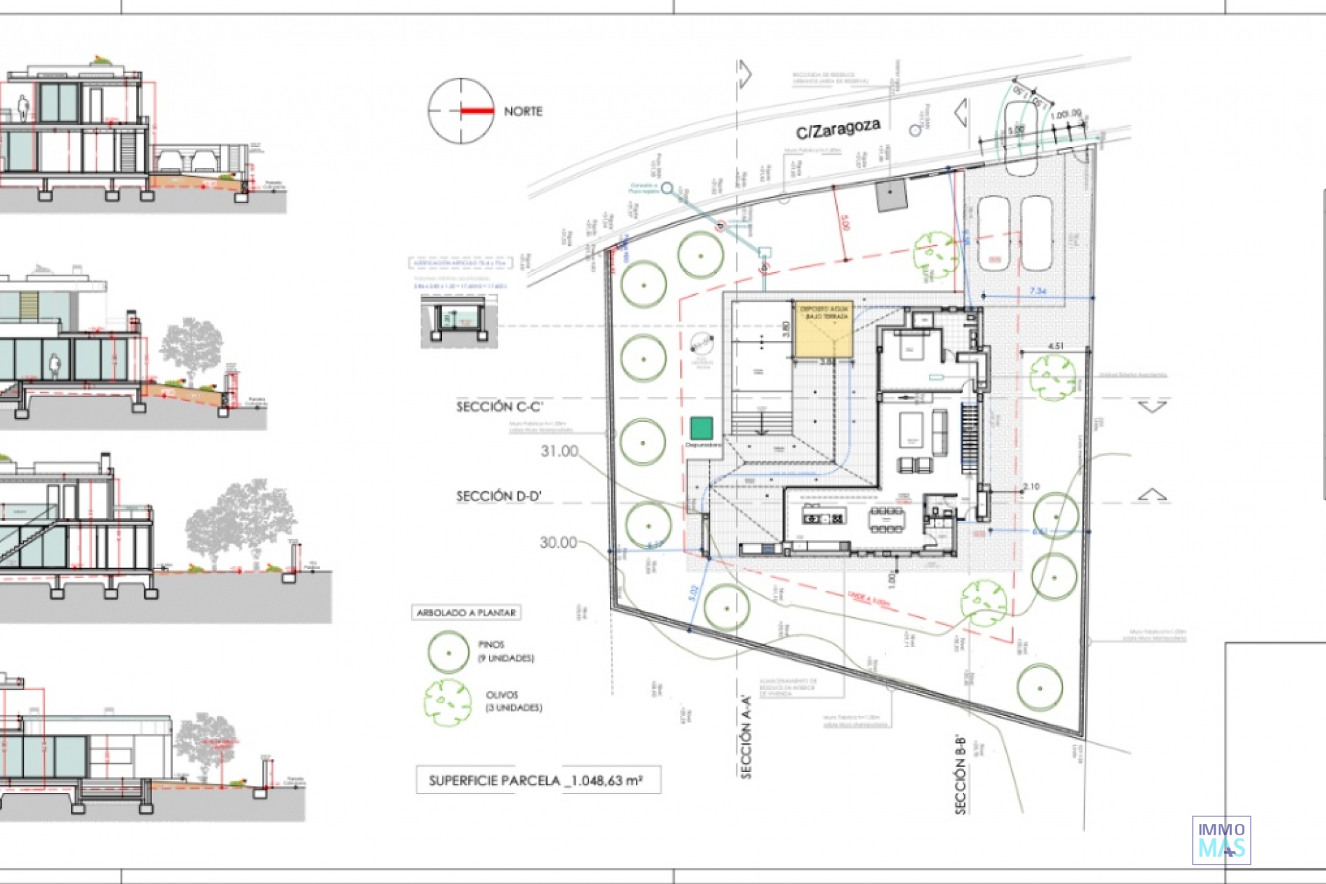 En el corazón de Moraira, este excepcional proyecto de villa moderna ejemplifica el lujo contemporáneo, integrándose perfectamente en el paisaje mediterráneo. El diseño presenta líneas arquitectónicas limpias y está construido con hormigón armado y acentos de madera, ubicado en varias terrazas que siguen la pendiente natural del terreno. Grandes paneles de vidrio permiten que la luz natural inunde los interiores y enmarcan las vistas de la vegetación. La planta baja alberga una amplia sala de estar de planta abierta (36,12 m²) conectada a una extensa terraza al aire libre (81,46 m²), diseñada para el confort y la elegancia con materiales de alta calidad. El área de comedor y la cocina (20 m²) están equipadas con electrodomésticos de última generación. El nivel superior incluye una suite principal con vestidor, baño en suite y acceso a una terraza privada, junto a tres habitaciones adicionales, cada una con baño en suite y terrazas privadas. Los espacios exteriores cuentan con una amplia terraza ideal para cenar y relajarse, que conduce a una piscina infinita maravillosamente diseñada. La propiedad está rodeada de un jardín paisajístico con plantas nativas, lo que realza su conexión natural. Además, la casa incorpora elementos de diseño sostenible, incluyendo un sistema de bomba de calor aire-agua, calefacción por suelo radiante y aislamiento de alto rendimiento, asegurando eficiencia energética y confort. No dudes en contactarnos para más información.