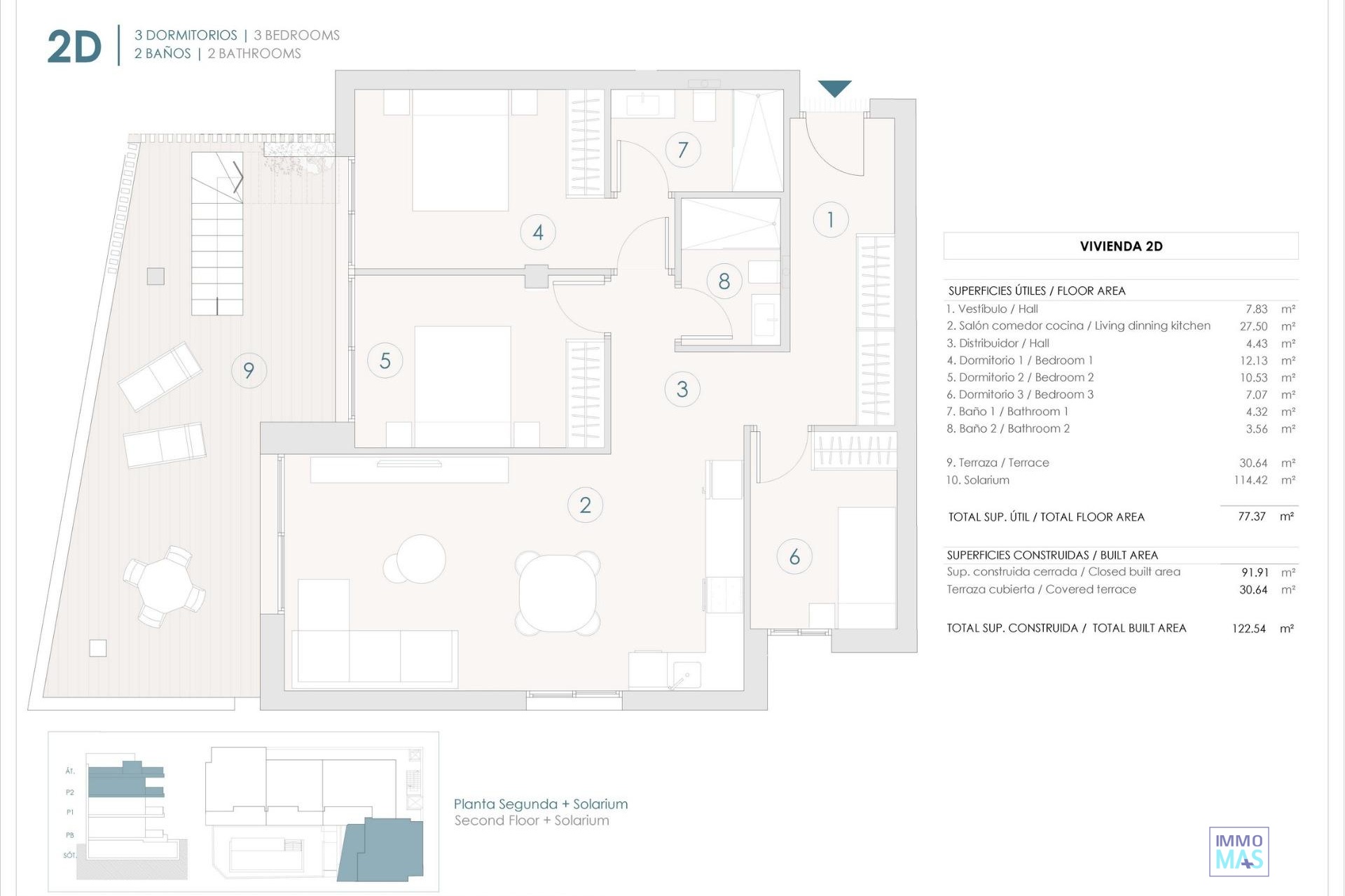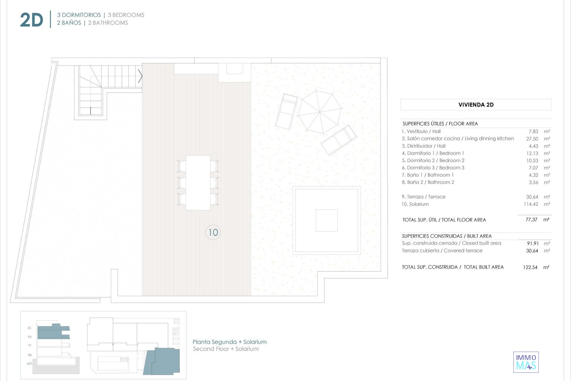 Apartamentos de nueva construcción en Benijófar con una ubicación céntrica Vida residencial contemporánea en Benijófar Esta exclusiva promoción nueva en Benijófar ofrece solo 11 viviendas modernas diseñadas para combinar arquitectura contemporánea, comodidad y materiales de alta calidad. El proyecto incluye apartamentos en planta baja y primera planta con amplias terrazas, así como áticos con terrazas y soláriums privados. Situada en una zona céntrica pero tranquila de Benijófar y frente a una gran zona verde, la urbanización disfruta de una excelente luz natural durante todo el día y de unas agradables vistas abiertas. Apartamentos modernos con características de primera calidad Cada propiedad ha sido cuidadosamente diseñada para cumplir con altos estándares de calidad y funcionalidad. Todas las viviendas incluyen una plaza de garaje privada y un trastero en el sótano, con cómodo acceso en ascensor. Los residentes también pueden disfrutar de una elegante piscina comunitaria rodeada de zonas comunes ajardinadas, ideal para relajarse y socializar. Los áticos destacan por sus amplios soláriums, que ofrecen la posibilidad de instalar una cocina al aire libre y cuentan con un jacuzzi, creando un espacio exterior único perfecto para entretenerse o relajarse bajo el sol del Mediterráneo. Acabados de alta calidad y eficiencia energética La residencia se ha construido prestando especial atención a la durabilidad, la eficiencia y la estética moderna. Las características incluyen: Preinstalación de aire acondicionado y calefacción por conductos Carpintería exterior con rotura de puente térmico y doble acristalamiento Sistema aerotérmico para agua caliente sanitaria Cocinas amuebladas con electrodomésticos incluidos Paquete de iluminación interior y exterior incluido Baños con tocadores, espejos y mamparas de ducha Jacuzzi incluido en los soláriums de los áticos Cada detalle ha sido seleccionado para garantizar un entorno de vida cómodo, eficiente y elegante. Estilo de vida y ubicación de Benijófar Benijófar es uno de los pueblos con más encanto de la Vega Baja, conocido por su ambiente relajado, su seguridad y su excelente calidad de vida. Todos los servicios cotidianos, como supermercados, colegios, centros médicos, restaurantes y zonas de ocio, se encuentran a menos de 5 minutos. El pueblo ofrece el equilibrio perfecto entre la vida tradicional española y las comodidades modernas. Distancias clave a puntos de interés Playas de Guardamar del Segura: 8 km Campos de golf La Finca y La Marquesa: 6 km Parque acuático de Rojales: 4 km Centro comercial Zenia Boulevard: 17 km Aeropuerto de Alicante: 35 km Su nuevo hogar en la Costa Blanca le espera Estos apartamentos de nueva construcción en Benijófar ofrecen una combinación excepcional de ubicación, calidad y diseño. Póngase en contacto con nosotros hoy mismo para concertar una visita y asegurarse su nuevo hogar en la Costa Blanca.