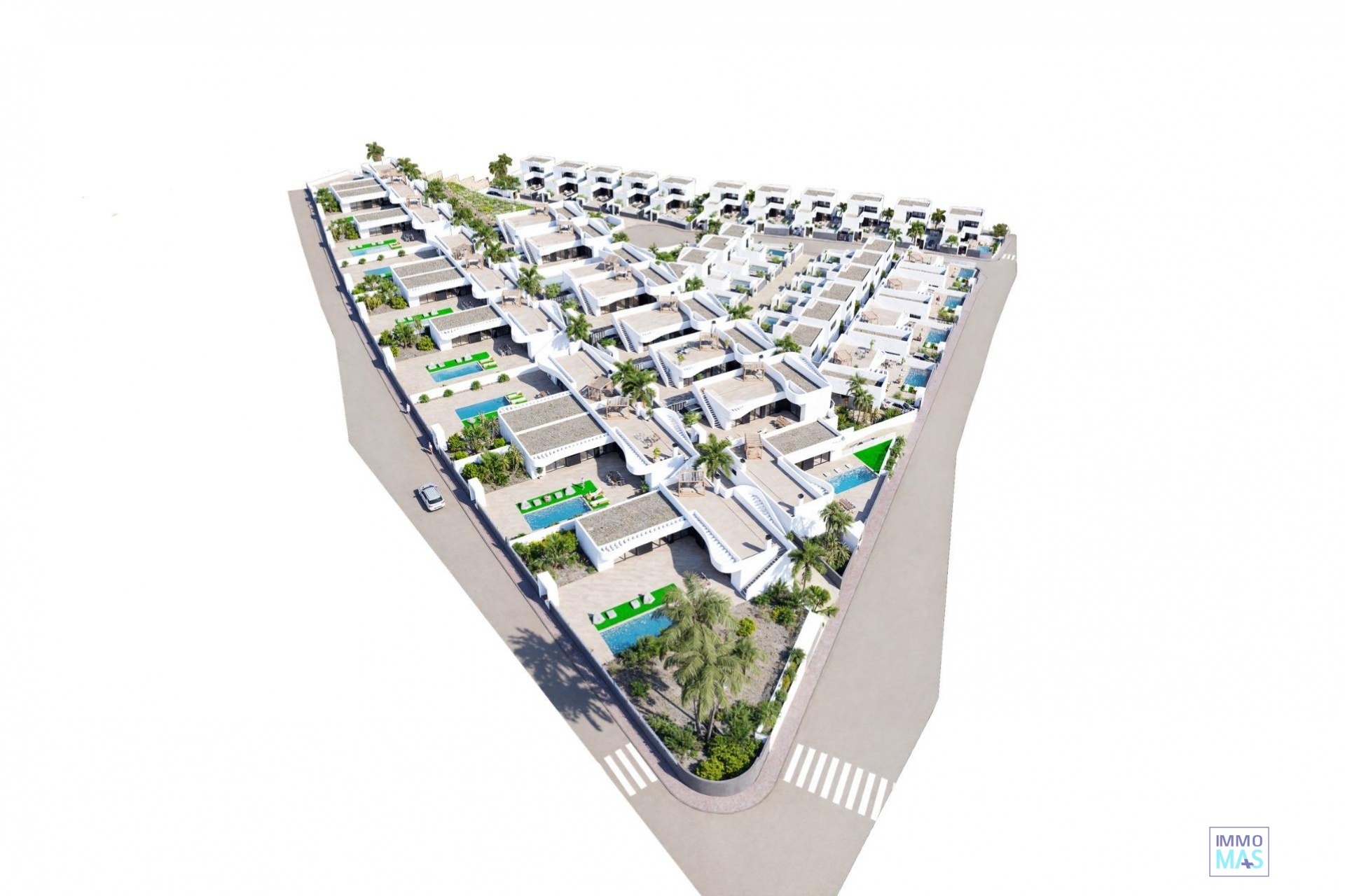 Villas de nueva construcción en La Finca Golf Resort Algorfa Exclusiva promoción nueva en un prestigioso entorno de golf Esta nueva promoción residencial de 53 villas modernas se encuentra en el famoso La Finca Golf Resort en Algorfa, una de las zonas más codiciadas de la Costa Blanca Sur. Rodeada de exuberantes paisajes verdes, huertos de cítricos y las onduladas calles del campo de golf, esta ubicación ofrece tranquilidad, privacidad y un estilo de vida mediterráneo de alta calidad, sin dejar de estar cerca de los servicios esenciales y de la costa. Elección de modelos y distribuciones de villas El proyecto ofrece una amplia selección de villas independientes y adosadas en tres tamaños diferentes de aproximadamente 98 m2, 111 m2 o 135 m2. Las viviendas están disponibles en uno o dos niveles y todas cuentan con tres dormitorios y dos baños. Los modelos más grandes también incluyen un aseo para invitados. Las villas de una sola planta disfrutan de un amplio solárium privado en la azotea, mientras que las viviendas de dos niveles cuentan con una gran terraza abierta en la planta superior. Algunas unidades incluyen un sótano y otras ofrecen esta opción con un coste adicional. Todas las villas cuentan con piscina privada y plaza de aparcamiento dentro de la parcela. Diseño al estilo ibicenco y vida al aire libre Las villas destacan por su elegante diseño al estilo ibicenco, con suaves líneas curvas y acabados en blanco brillante que se integran perfectamente con el entorno natural. Las amplias zonas exteriores están diseñadas para disfrutar del clima templado durante todo el año, ofreciendo espacios ideales para relajarse, entretenerse y aprovechar al máximo la vida al aire libre en un tranquilo entorno de golf. Especificaciones de alta calidad y comodidad Todas las viviendas están construidas con un alto nivel de calidad e incluyen una puerta de entrada de seguridad reforzada, cocinas totalmente equipadas, preinstalación de aire acondicionado por conductos y un sistema aerotérmico para el agua caliente sanitaria. Estas características garantizan el confort, la eficiencia energética y una vida moderna, ya sea como residencia permanente o como casa de vacaciones. La Finca Golf Resort y el estilo de vida de Algorfa La Finca Golf Resort es conocido por su campo de golf de campeonato, su hotel de lujo, sus instalaciones de spa, sus restaurantes y sus zonas deportivas, todo ello en un entorno seguro y bien cuidado. Algorfa es un encantador pueblo español que ofrece tiendas locales, restaurantes tradicionales y un ambiente relajado, mientras que las localidades cercanas proporcionan una mayor variedad de servicios y comodidades. Distancias y conexiones clave El campo de golf La Finca se encuentra dentro del complejo. Las playas de Guardamar del Segura están a unos 14 km. Los centros comerciales de Torrevieja y Orihuela Costa están a unos 15 km. Almoradí, Benijófar y Ciudad Quesada están entre 5 y 10 km. El aeropuerto internacional de Alicante está a unos 35 km. Una inversión inteligente en la Costa Blanca Con más de 300 días de sol al año, excelentes conexiones por carretera y proximidad a campos de golf, playas y zonas comerciales, estas villas son ideales para vivir, pasar las vacaciones o invertir. Póngase en contacto con nosotros hoy mismo Asegúrese hoy mismo su nueva villa en La Finca Golf Resort. Póngase en contacto con nosotros ahora para obtener más información o concertar una visita privada.