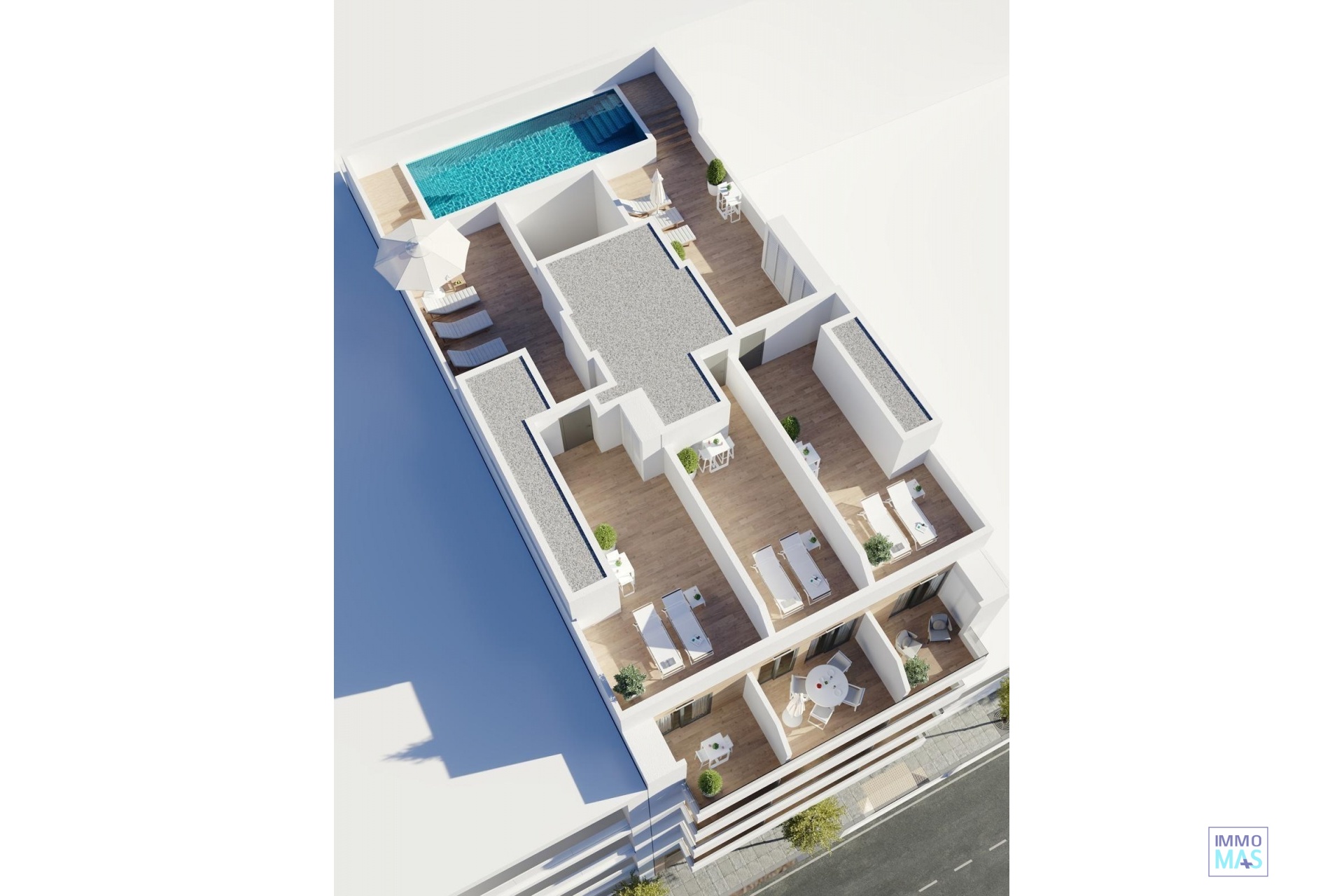 Apartamentos de nueva construcción en Torrevieja A solo 600 m de la Playa del Cura Ubicación privilegiada en el corazón de Torrevieja Descubra estos apartamentos y áticos a estrenar en una de las zonas más cotizadas de Torrevieja, a solo 600 m de la Playa del Cura y a 300 m del paseo marítimo. Situado en el centro de la ciudad, este animado barrio ofrece todos los servicios esenciales a poca distancia, incluyendo supermercados, tiendas, restaurantes, cafeterías y transporte público. Torrevieja es una conocida ciudad costera de la Costa Blanca, famosa por su clima mediterráneo templado, su animado ambiente y su estilo de vida junto al mar durante todo el año. Apartamentos modernos con distribuciones espaciosas Esta exclusiva promoción nueva consta de solo 12 apartamentos y áticos de 1 o 3 dormitorios, diseñados para ofrecer comodidad, funcionalidad y estilo contemporáneo. Los apartamentos de las plantas intermedias cuentan con amplias terrazas, mientras que los áticos disfrutan de un solárium privado adicional, ideal para tomar el sol o comer al aire libre. Todas las viviendas incluyen una cocina abierta conectada con el salón-comedor, lo que crea interiores luminosos y acogedores. Los dormitorios cuentan con armarios empotrados y los baños están totalmente equipados con muebles, espejos y mamparas de ducha. Hay plazas de aparcamiento opcionales disponibles con un coste adicional. Acabados de calidad y características de eficiencia energética Los apartamentos están construidos con materiales de alta calidad y un fuerte enfoque en la eficiencia energética. La carpintería exterior de aluminio incluye tecnología de rotura de puente térmico y doble acristalamiento para el aislamiento térmico y acústico. Las persianas motorizadas añaden comodidad y seguridad. Cada vivienda cuenta con preinstalación de aire acondicionado y calefacción por conductos, puertas de entrada reforzadas y puertas interiores lacadas en blanco. El agua caliente se produce mediante un sistema aerotérmico, lo que reduce el consumo de energía y mejora la sostenibilidad. Solárium en la azotea con piscina comunitaria Los residentes pueden disfrutar de un solárium exclusivo en la azotea con piscina comunitaria, accesible por ascensor o escaleras. Esta zona privada es perfecta para relajarse, tomar el sol y disfrutar de las vistas panorámicas de la ciudad. Ofrece un refugio tranquilo sobre las animadas calles de Torrevieja y añade un valor significativo a la promoción. Estilo de vida y alrededores de Torrevieja Torrevieja es conocida por su extenso litoral, sus playas de arena y sus emblemáticas salinas. El Parque Natural de las Lagunas de La Mata y Torrevieja se encuentra a unos 5 km y ofrece rutas de senderismo y paisajes únicos. Varios campos de golf, como Villamartin Golf y Las Colinas Golf, se encuentran a entre 12 y 18 km. El puerto deportivo y el puerto de Torrevieja están a aproximadamente 1 km. El aeropuerto de Alicante está a unos 45 km y el aeropuerto internacional de Murcia a unos 65 km, ambos con excelentes conexiones europeas. Su hogar en la costa le espera No pierda esta oportunidad de adquirir un moderno apartamento de nueva construcción cerca de la playa en Torrevieja. Póngase en contacto con nosotros hoy mismo para obtener más información o concertar una visita privada.