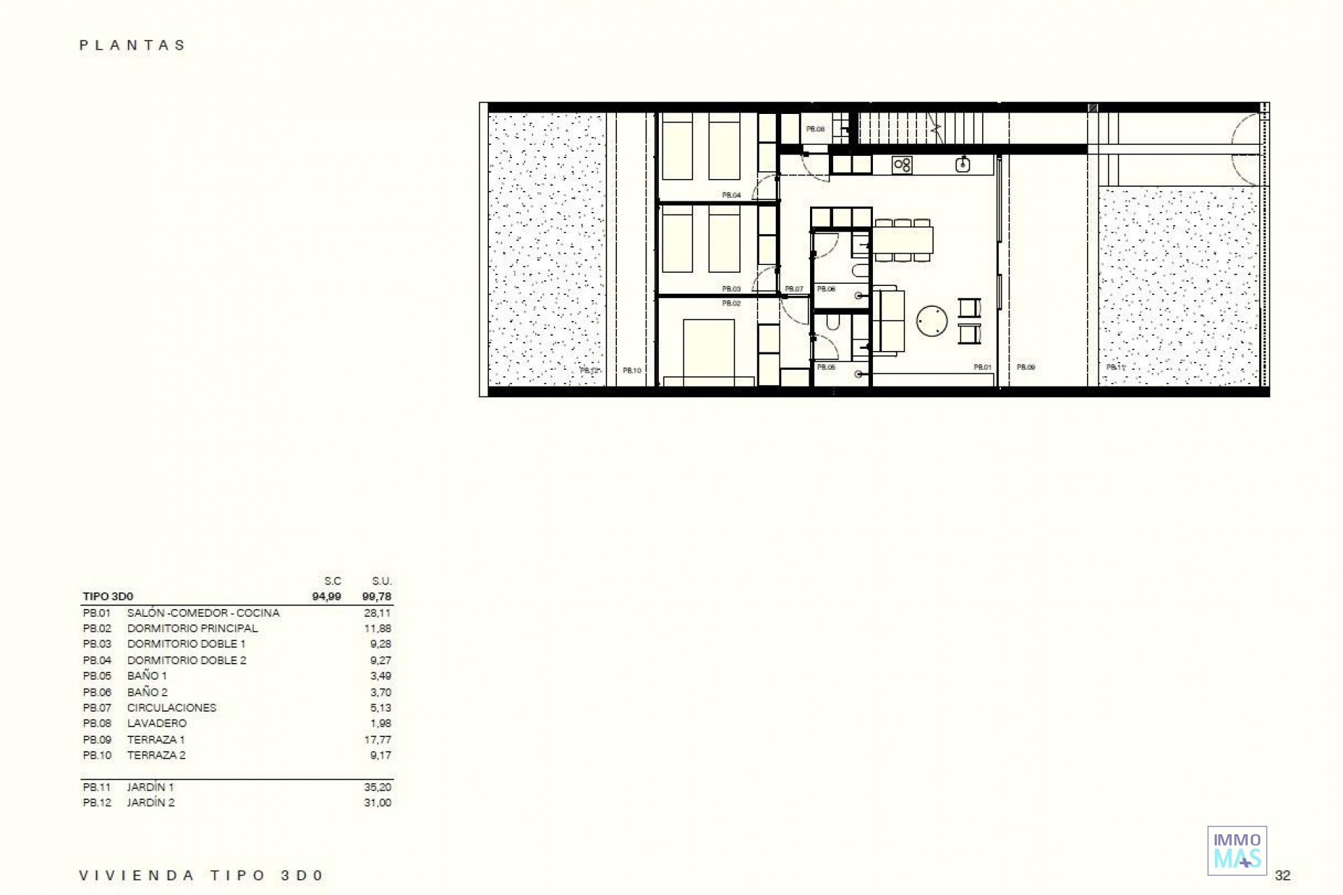 Apartamentos residenciales de nueva construcción en Los Balcones, Torrevieja Viviendas modernas en una zona residencial privilegiada Descubra este atractivo complejo residencial de nueva construcción situado en Los Balcones, uno de los barrios más populares y consolidados de las afueras de Torrevieja. Ubicado en un entorno tranquilo con excelente acceso a todos los servicios esenciales, este complejo se encuentra a solo 4 km de las playas de arena de la Costa Blanca. Los Balcones es conocido por su ambiente relajado, sus amplias calles, sus zonas verdes y su proximidad a hospitales, supermercados, restaurantes y centros comerciales, lo que lo hace ideal para vivir todo el año o para pasar las vacaciones. Apartamentos contemporáneos con espacios exteriores privados El complejo consta de 52 apartamentos modernos construidos en una superficie total de 6700 m2. Cada propiedad incluye una plaza de aparcamiento privada y un trastero en el sótano. Las viviendas ofrecen 2 o 3 dormitorios y 2 baños, uno de ellos en suite. Los compradores pueden elegir entre apartamentos en planta baja con jardín privado o viviendas en plantas superiores con una amplia terraza y solárium privado. Estas distribuciones están diseñadas para maximizar la luz natural y proporcionar cómodos espacios interiores y exteriores para disfrutar del clima mediterráneo durante todo el año. Zonas comunes diseñadas para el relax El proyecto se distribuye en cuatro bloques que rodean una gran zona común central. Este corazón verde de la urbanización cuenta con una piscina con zona infantil y unos jardines con un bonito diseño paisajístico. Estos espacios compartidos son perfectos para relajarse, socializar y pasar tiempo en familia en un entorno seguro y agradable. Características de calidad y diseño energéticamente eficiente Cada apartamento está construido según los estándares modernos e incluye la preinstalación de aire acondicionado por conductos, un sistema de agua caliente aerotérmica para mejorar la eficiencia energética, iluminación exterior y carpintería exterior con doble acristalamiento. Las cocinas están completamente equipadas, ofreciendo un espacio funcional y elegante para la vida diaria. Estas características garantizan un alto nivel de confort, un bajo mantenimiento y un consumo energético reducido, lo que hace que las viviendas sean prácticas y sostenibles. Excelente ubicación cerca de playas y campos de golf Los Balcones ofrece una ubicación estratégica cerca de muchos puntos de interés. Las playas de Torrevieja están a unos 4 km. Varios campos de golf de renombre, como Villamartin Golf, Las Ramblas Golf y Campoamor Golf, se encuentran a entre 10 y 15 km. El Hospital Universitario de Torrevieja está a menos de 2 km, lo que añade comodidad y tranquilidad. El centro de Torrevieja está a unos 5 km, conectado por autobús con Los Balcones, donde encontrará una amplia gama de tiendas, restaurantes, locales culturales y un animado puerto deportivo. El aeropuerto internacional de Alicante se encuentra a unos 42 km, lo que facilita las conexiones internacionales. El puerto de Torrevieja está a unos 6 km. Ideal para vivir o invertir Con su diseño moderno, sus excelentes zonas comunes y su ubicación privilegiada cerca de playas, campos de golf y servicios, este nuevo complejo residencial en Los Balcones Torrevieja es perfecto como residencia permanente, casa de vacaciones o oportunidad de inversión. Póngase en contacto con nosotros hoy mismo para obtener más información o concertar una visita a estos apartamentos de nueva construcción en Los Balcones, Torrevieja.