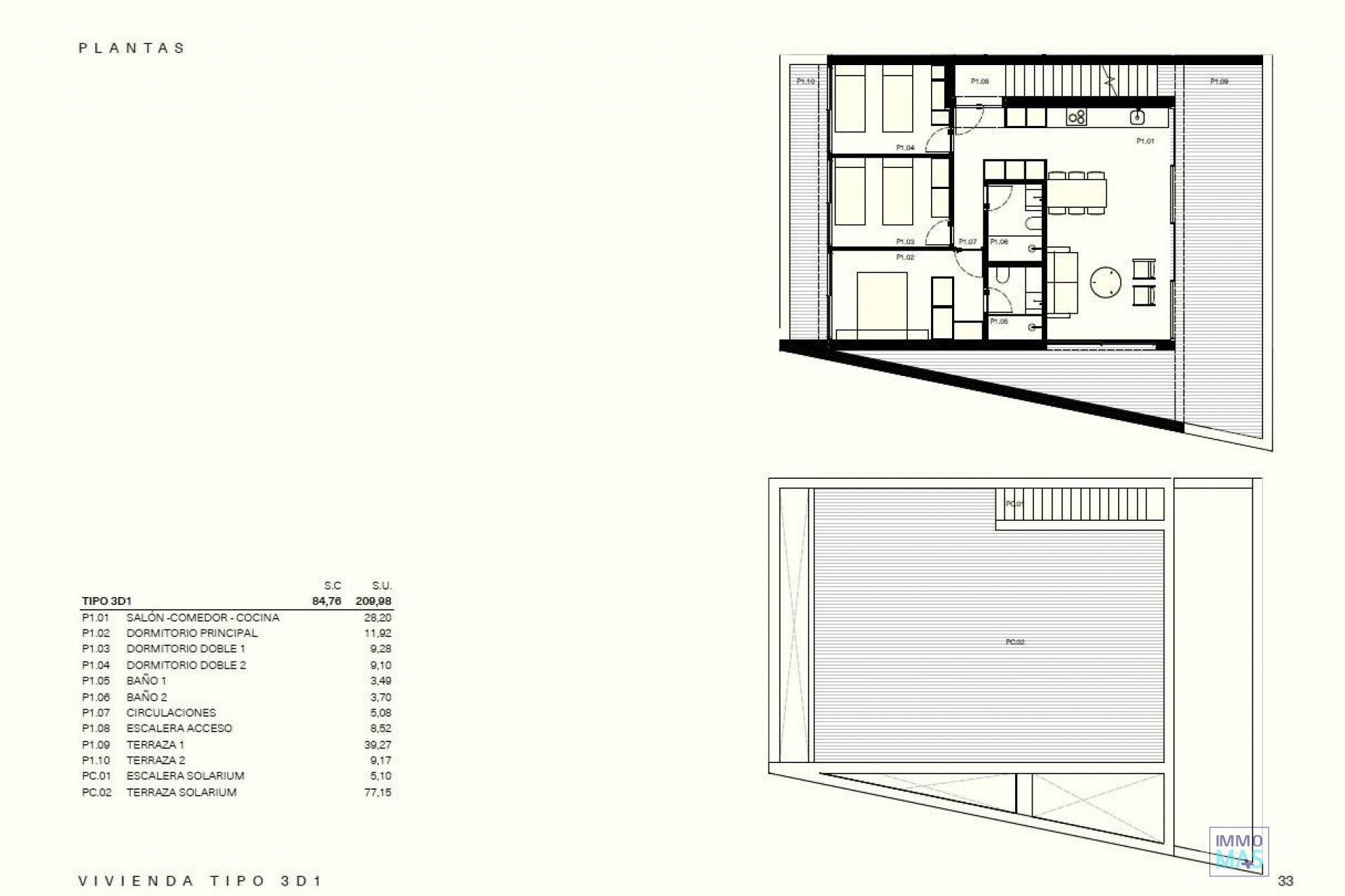 Apartamentos residenciales de nueva construcción en Los Balcones, Torrevieja Viviendas modernas en una zona residencial privilegiada Descubra este atractivo complejo residencial de nueva construcción situado en Los Balcones, uno de los barrios más populares y consolidados de las afueras de Torrevieja. Ubicado en un entorno tranquilo con excelente acceso a todos los servicios esenciales, este complejo se encuentra a solo 4 km de las playas de arena de la Costa Blanca. Los Balcones es conocido por su ambiente relajado, sus amplias calles, sus zonas verdes y su proximidad a hospitales, supermercados, restaurantes y centros comerciales, lo que lo hace ideal para vivir todo el año o para pasar las vacaciones. Apartamentos contemporáneos con espacios exteriores privados El complejo consta de 52 apartamentos modernos construidos en una superficie total de 6700 m2. Cada propiedad incluye una plaza de aparcamiento privada y un trastero en el sótano. Las viviendas ofrecen 2 o 3 dormitorios y 2 baños, uno de ellos en suite. Los compradores pueden elegir entre apartamentos en planta baja con jardín privado o viviendas en plantas superiores con una amplia terraza y solárium privado. Estas distribuciones están diseñadas para maximizar la luz natural y proporcionar cómodos espacios interiores y exteriores para disfrutar del clima mediterráneo durante todo el año. Zonas comunes diseñadas para el relax El proyecto se distribuye en cuatro bloques que rodean una gran zona común central. Este corazón verde de la urbanización cuenta con una piscina con zona infantil y unos jardines con un bonito diseño paisajístico. Estos espacios compartidos son perfectos para relajarse, socializar y pasar tiempo en familia en un entorno seguro y agradable. Características de calidad y diseño energéticamente eficiente Cada apartamento está construido según los estándares modernos e incluye la preinstalación de aire acondicionado por conductos, un sistema de agua caliente aerotérmica para mejorar la eficiencia energética, iluminación exterior y carpintería exterior con doble acristalamiento. Las cocinas están completamente equipadas, ofreciendo un espacio funcional y elegante para la vida diaria. Estas características garantizan un alto nivel de confort, un bajo mantenimiento y un consumo energético reducido, lo que hace que las viviendas sean prácticas y sostenibles. Excelente ubicación cerca de playas y campos de golf Los Balcones ofrece una ubicación estratégica cerca de muchos puntos de interés. Las playas de Torrevieja están a unos 4 km. Varios campos de golf de renombre, como Villamartin Golf, Las Ramblas Golf y Campoamor Golf, se encuentran a entre 10 y 15 km. El Hospital Universitario de Torrevieja está a menos de 2 km, lo que añade comodidad y tranquilidad. El centro de Torrevieja está a unos 5 km, conectado por autobús con Los Balcones, donde encontrará una amplia gama de tiendas, restaurantes, locales culturales y un animado puerto deportivo. El aeropuerto internacional de Alicante se encuentra a unos 42 km, lo que facilita las conexiones internacionales. El puerto de Torrevieja está a unos 6 km. Ideal para vivir o invertir Con su diseño moderno, sus excelentes zonas comunes y su ubicación privilegiada cerca de playas, campos de golf y servicios, este nuevo complejo residencial en Los Balcones Torrevieja es perfecto como residencia permanente, casa de vacaciones o oportunidad de inversión. Póngase en contacto con nosotros hoy mismo para obtener más información o concertar una visita a estos apartamentos de nueva construcción en Los Balcones, Torrevieja.
