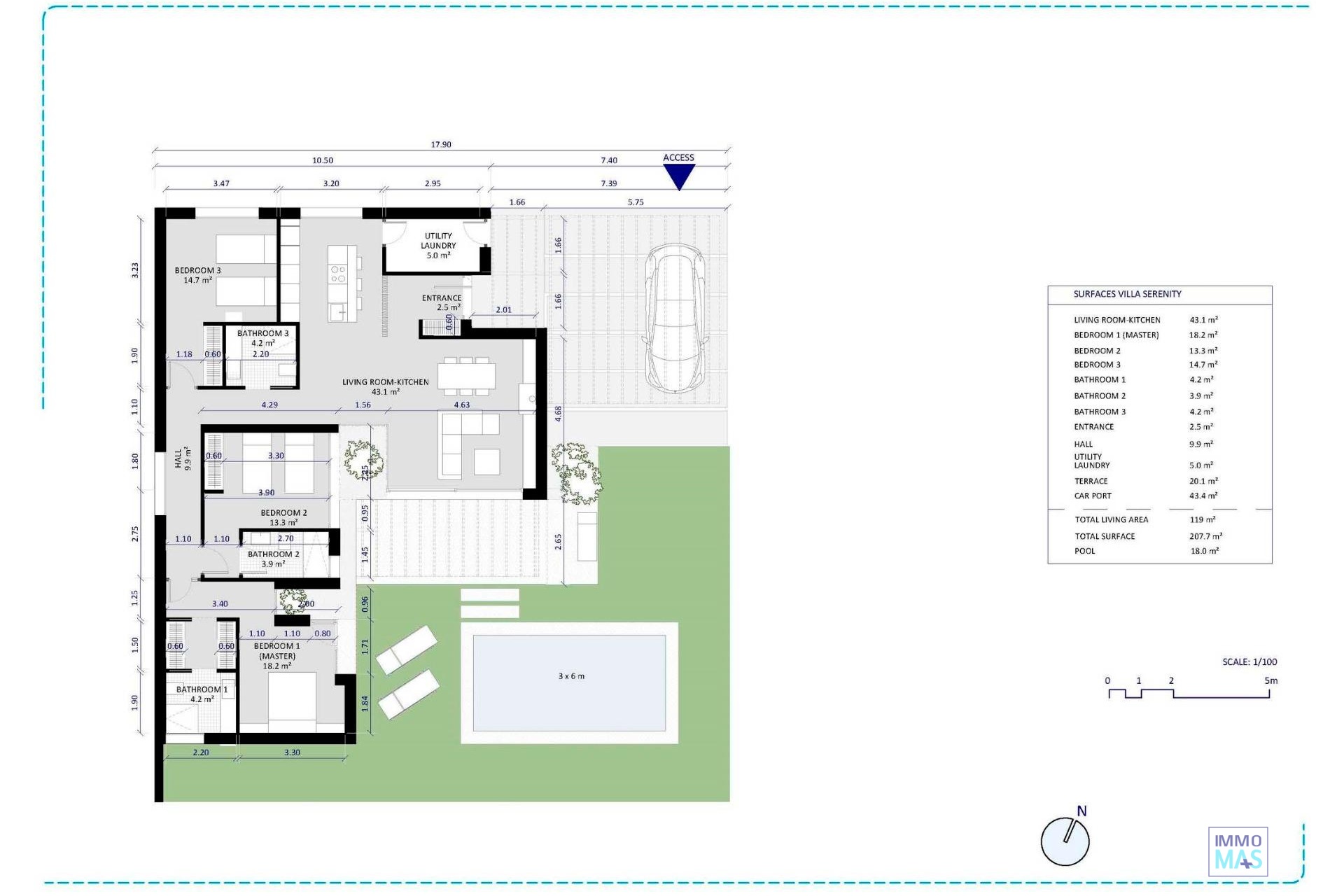 VILLAS DE OBRA NUEVA EN ALTAONA GOLF RESORT, MURCIA Nueva promoción de preciosas villas en Altaona Golf resort, Murcia. Situadas en un entorno privilegiado donde podemos vivir tranquilamente, en contacto con la naturaleza y la montaña, obtenemos calidad de vida, aire puro y espacios abiertos. La hermosa villa de 1 nivel tiene 3 dormitorios, 3 baños, cocina americana con zona de estar, jardines privados con la piscina y plaza de aparcamiento. Exclusivo residencial de nueva construcción situado en Altaona Golf a tan solo 15 minutos en coche del centro de la ciudad de Murcia y a 20 minutos de las playas podrá disfrutar de la tranquilidad y seguridad que ofrece el campo de golf de 18 hoyos y la comodidad de vivir cerca de todos los servicios. El aeropuerto de Murcia Corvera se encuentra a tan solo 15 minutos en coche. 421