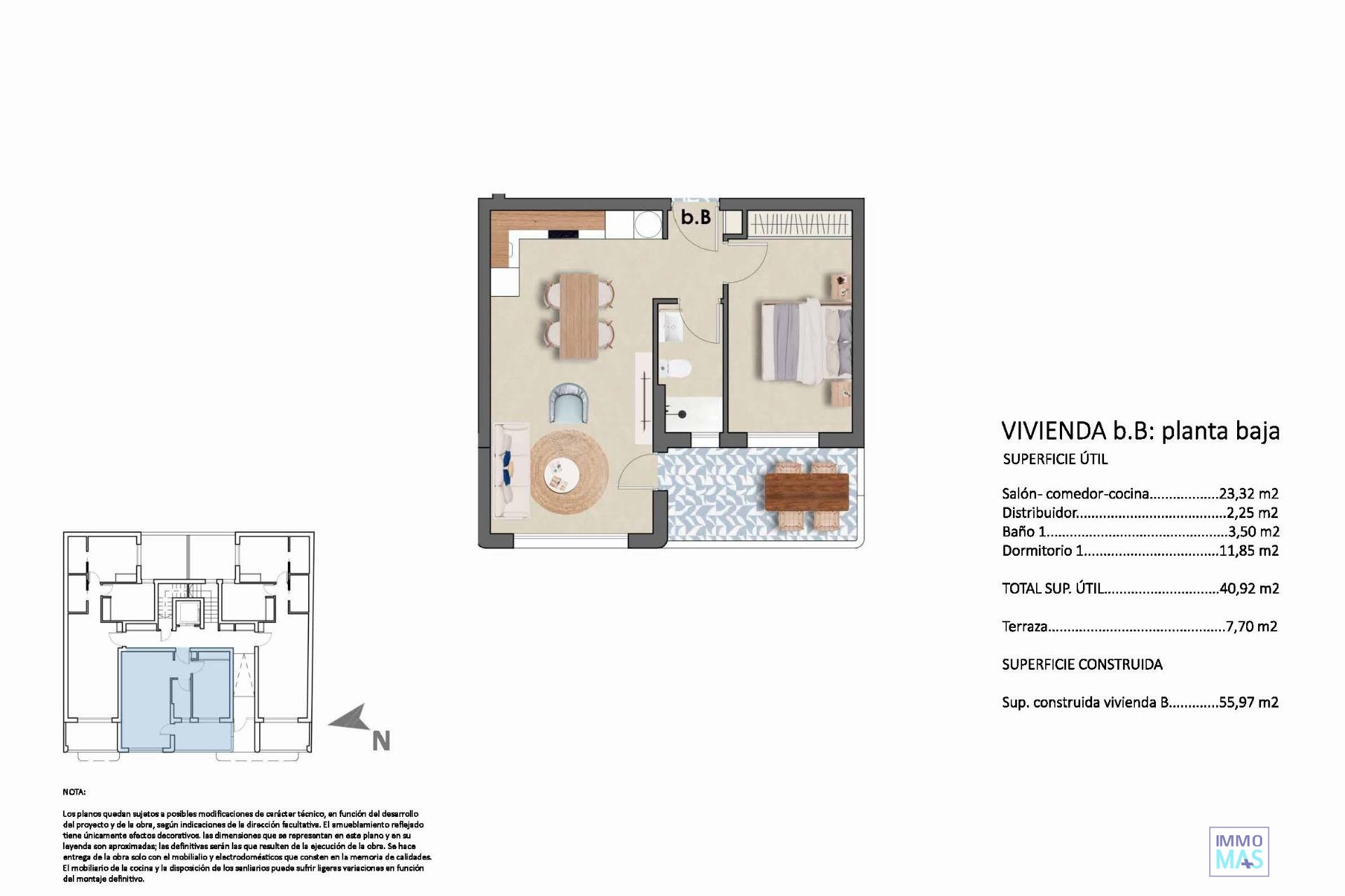 Nuevos apartamentos mediterráneos a solo 140 m de la playa en Torre de la Horadada Vida exclusiva junto al mar en la Costa Blanca Descubra este nuevo proyecto residencial en Torre de la Horadada, con una ubicación ideal a solo 140 metros del mar, entre las Playas de El Conde y de El Puerto y junto al puerto deportivo. Esta exclusiva promoción cuenta con solo 8 modernos apartamentos de estilo mediterráneo, que ofrecen una combinación única de encanto costero y comodidad contemporánea en una de las ubicaciones más codiciadas de la Costa Blanca Sur. Situadas en un tranquilo y pintoresco pueblo costero, estas viviendas están rodeadas de servicios esenciales como supermercados, restaurantes, cafeterías y tiendas, todos ellos a poca distancia a pie. La zona es conocida por su ambiente relajado, sus aguas cristalinas y su entorno familiar. Diseño elegante y acabados de calidad Cada apartamento cuenta con 1, 2 o 3 dormitorios y 1 o 2 baños, cuidadosamente diseñados para maximizar el espacio y la luz natural. Los interiores cuentan con: Puerta de entrada de seguridad para mayor tranquilidad Armarios empotrados en los dormitorios, totalmente revestidos y acabados Baños modernos equipados con muebles, espejos y mamparas de ducha Preinstalación de aire acondicionado por conductos para disfrutar de confort durante todo el año Estos acabados de alta calidad crean espacios luminosos y funcionales, perfectos tanto para residencia permanente como para uso vacacional. Solárium en la azotea con piscina y zona chill-out La característica más destacada de esta promoción es el solárium comunitario en la azotea, al que se puede acceder por escaleras o ascensor. Los residentes pueden disfrutar de una piscina en la azotea, una zona de cocina al aire libre, barbacoa y comedores bajo pérgolas, y una zona para tomar el sol con césped artificial. Este exclusivo oasis en la azotea es el lugar perfecto para relajarse bajo el sol español. Ubicación privilegiada y excelentes conexiones Torre de la Horadada es conocida por su impresionante costa, su puerto deportivo y su animado paseo marítimo. La promoción ofrece fácil acceso a destinos cercanos: Playas: 100 m Campo de golf Lo Romero: 7 km San Pedro del Pinatar: 5 km Aeropuerto de Murcia-Corvera: 40 minutos (55 km) Aeropuerto de Alicante: 55 minutos (75 km) La casa de playa de sus sueños le espera Con su inmejorable ubicación, su elegante diseño y sus excepcionales servicios comunitarios, este nuevo proyecto residencial boutique en Torre de la Horadada es la oportunidad perfecta para disfrutar del estilo de vida mediterráneo. Póngase en contacto con nosotros hoy mismo para concertar una visita y asegurarse su nueva casa a pocos pasos del mar en la Costa Blanca. 421