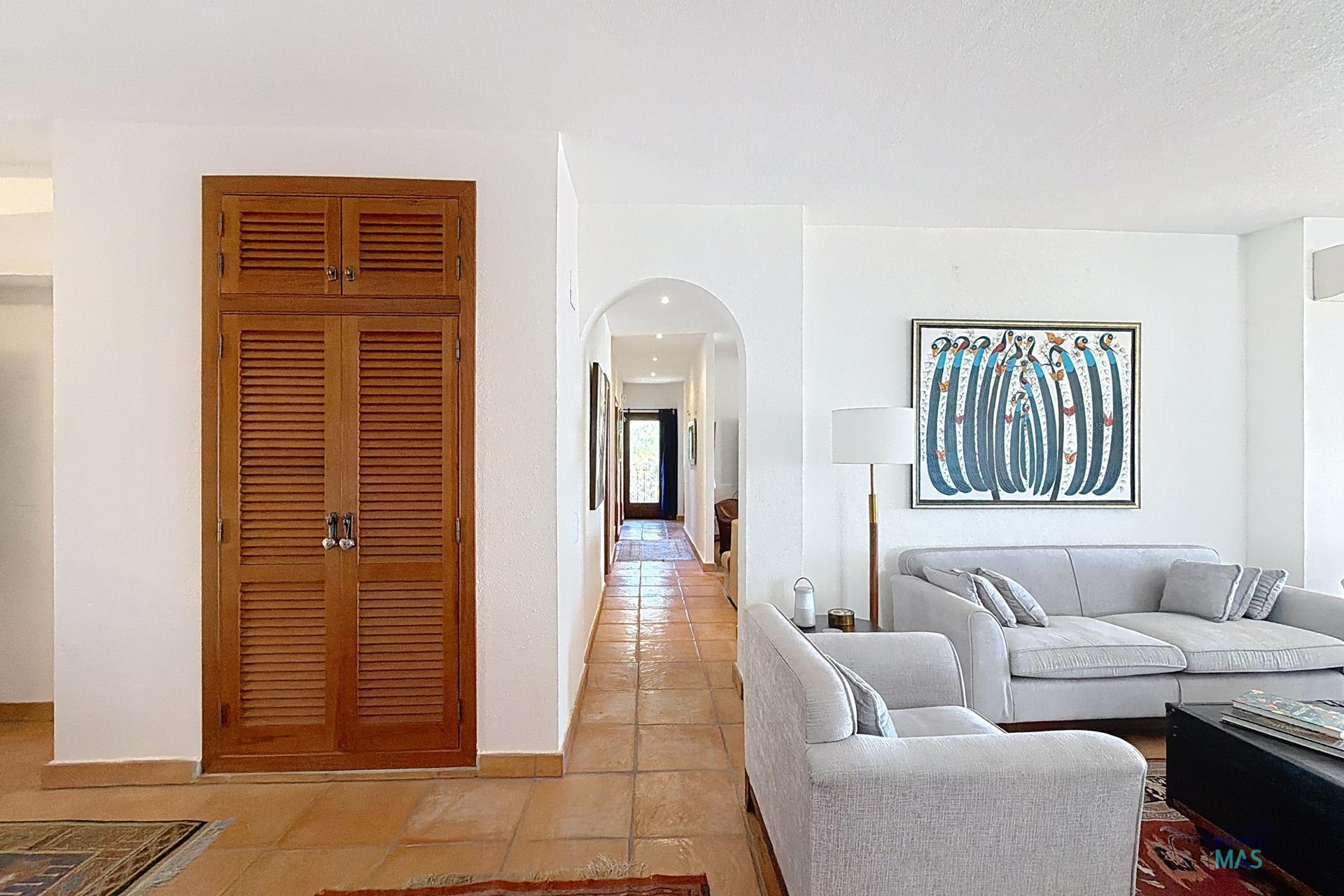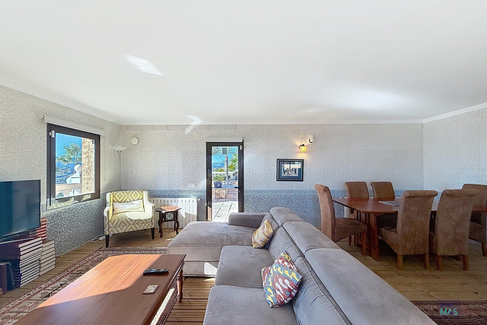 Villa con vistas panorámicas al mar en parcela doble – Zona Residencial Kalmias, Cumbre del SolUna propiedad única con vistas al Mediterráneo y máxima privacidadEsta exclusiva villa se ubica en la zona residencial Kalmias de la prestigiosa urbanización Cumbre del Sol, entre Jávea y Moraira, en el municipio de Benitachell. Construida sobre una parcela doble de 1.746 m², la vivienda destaca por su orientación sur, su privacidad absoluta y sus impresionantes vistas panorámicas al mar. Rodeada por un espectacular jardín mediterráneo perfectamente cuidado, esta propiedad representa la esencia del estilo de vida en la Costa Blanca Norte. Distribución y espacios ampliosCon una superficie total construida de 663 m², de los cuales 445 m² corresponden a la vivienda principal, esta villa ofrece una distribución funcional en dos plantas, pensada para disfrutar del confort y la amplitud. Planta principalEn esta planta encontramos: Un luminoso salón principal con acceso directo a una amplia terraza con vistas al mar.Un segundo salón perfecto como zona de lectura o relax, también con salida a la terraza.Un comedor acristalado orientado al sur, que actúa como un auténtico mirador al Mediterráneo.Una cocina abierta y completamente equipada, con vistas espectaculares.Un dormitorio doble y el dormitorio principal, este último con baño en suite y acceso directo a la terraza.Un aseo de cortesía y una zona de lavadero.Planta inferiorConectada mediante una escala interior, la planta sótano dispone de: Una amplia estancia polivalente ideal como despacho, gimnasio o sala de ocio.Un salón con acceso a la terraza inferior.Dos dormitorios dobles muy amplios, un baño completo, cocina auxiliar y varios trasteros.Zonas exteriores y estilo de vida mediterráneoEn el exterior, la propiedad ofrece: Un garaje cerrado de 34 m².Varias terrazas abiertas y cubiertas para disfrutar del clima durante todo el año.Una zona de barbacoa ideal para reuniones con familiares y amigos.Una piscina privada rodeada de un jardín exuberante que proporciona privacidad y un entorno natural incomparable.Una villa diseñada para disfrutar del sol, el mar y la tranquilidadCada rincón de esta vivienda está pensado para ofrecer bienestar, amplitud y conexión con el entorno. Su orientación sur garantiza luz natural durante todo el día, mientras que las amplias terrazas permiten disfrutar de amaneceres y atardeceres únicos sobre el mar. Vea también los vídeos adicionales de esta villa: Tomas Dron: https://youtu.be/69oP-jNQjUw Tomas Jardín: https://youtu.be/iOjCR98Sj2Y Zona Residencial Kalmias – Cumbre del Sol, BenitachellLa Zona Residencial Kalmias es una de las áreas más consolidadas y codiciadas de Cumbre del Sol, compuesta por 189 parcelas de entre 750 y 1.200 m². Su ubicación, en la entrada sur de la urbanización, ofrece una combinación perfecta entre tranquilidad, vistas y cercanía a los servicios. Desde Kalmias se disfruta de una panorámica privilegiada del mar Mediterráneo, el valle de Moraira y el Peñón de Ifach, con la Sierra de Bernia al fondo. Además, se encuentra a pocos minutos de: Playas y calas como Cala del Moraig, Cala Llebeig o Cala de los Tiestos.Dreamsea Mediterranean Camp, con bar y restaurante frente al mar.Colegio Internacional Lady Elizabeth, centros deportivos, restaurantes y supermercados como Mercadona o Pepe La Sal.Moraira y Jávea, a tan solo unos minutos en coche.Vivir en Kalmias es disfrutar de un entorno natural, exclusivo y con todos los servicios al alcance. ¿Desea más información o visitar esta propiedad?Si busca una villa con vistas al mar, privacidad y espacios amplios en una de las zonas más demandadas de la Costa Blanca Norte, no dude en contactarnos. Estaremos encantados de ofrecerle toda la información y acompañarle en su visita a esta espectacular vivienda.
