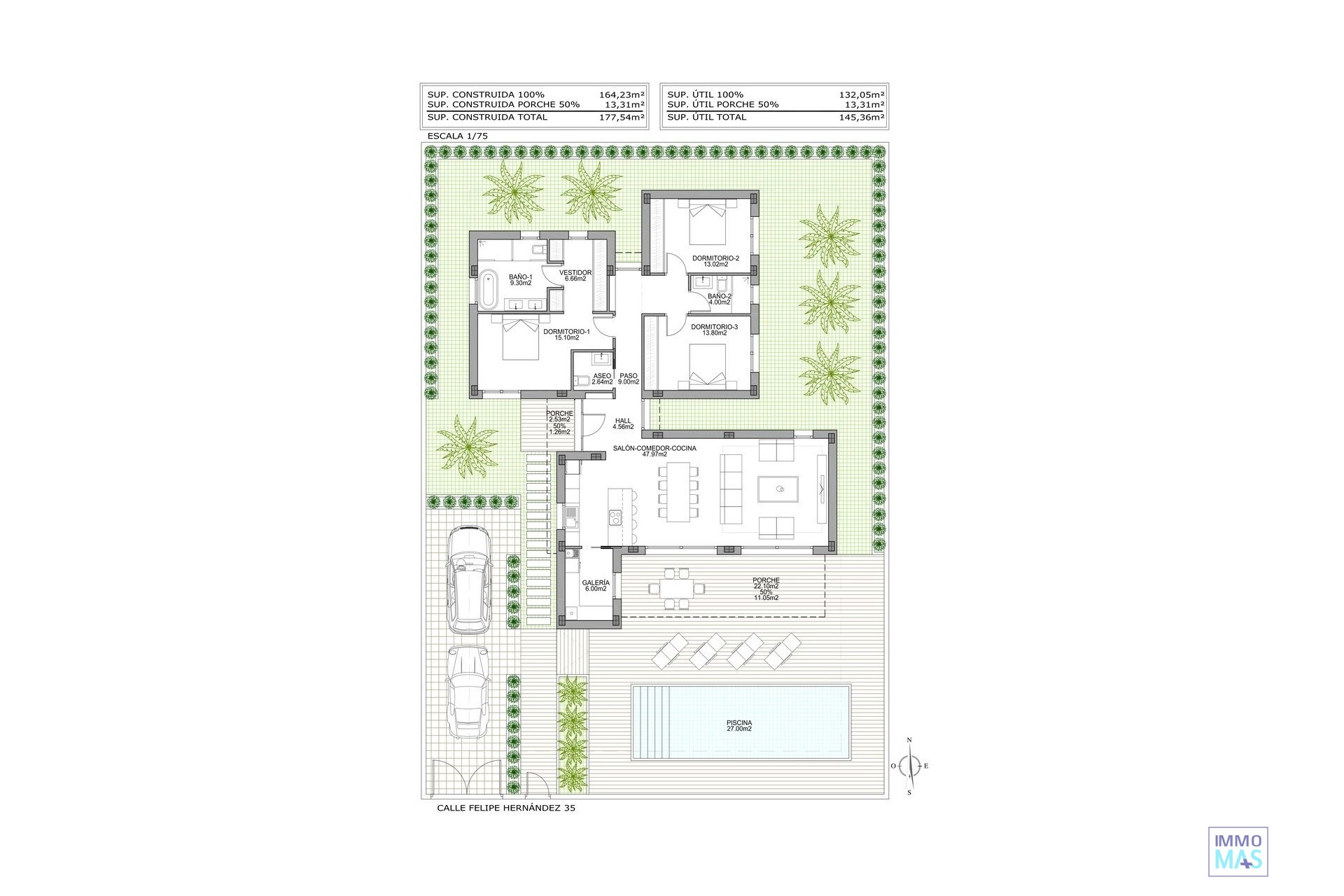 NOUVELLE CONSTRUCTION DE VILLAS MODERNES À BENIJOFAR Villas de nouvelle construction situées à Benijófar, une zone privilégiée de la Costa Blanca, équipées de tous les services, à 20 minutes de l'aéroport d'Alicante, à proximité des belles plages de Guardamar et de plusieurs terrains de golf. Il s'agit d'une villa de style moderne composée d'un spacieux salon-salle à manger avec une cuisine américaine, 3 chambres (dont une en suite) et 3 salles de bains. Il dispose également d'un terrain privé avec terrasse, parking, piscine privée, jardin de style méditerranéen avec de superbes vues. La maison dispose également de la climatisation chaude et froide, d'un interphone vidéo et d'une porte de sécurité. Benijofar c'est un charmant village avec une charmante église et tous les services tels que supermarchés, pharmacies, banques, restaurants et parc naturel situé tout près des villas. Il y a plusieurs terrains de golf à proximité ainsi que des parcs aquatiques dans les environs de Rojales et Torrevieja. Benijófar situé à quelques minutes de la N-332 et de l'AP-7. À seulement 30 minutes de l'aéroport d'Alicante, à 10 minutes des plages de Guardamar et Torrevieja.