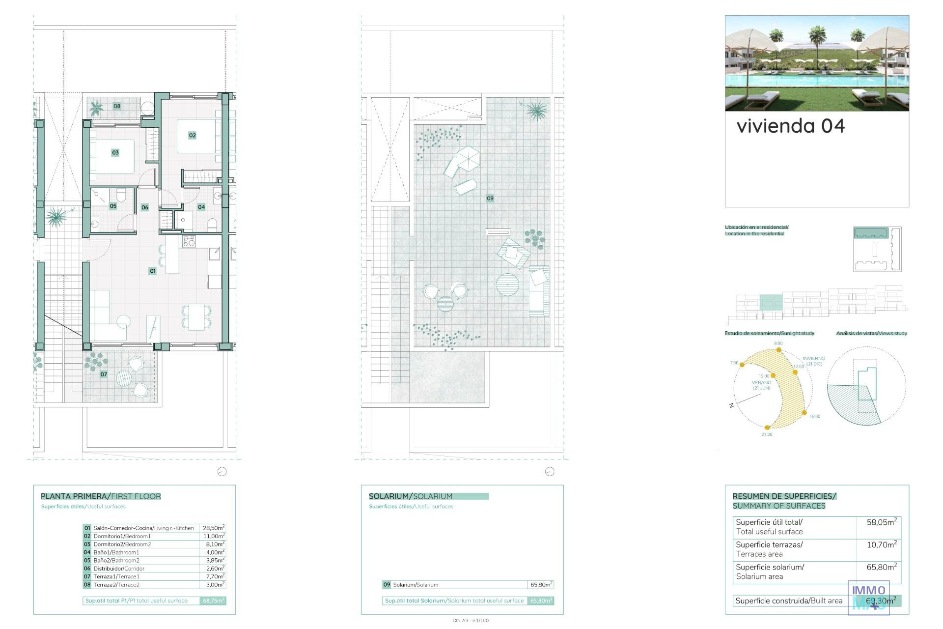 NOUVELLE CONSTRUCTION RÉSIDENTIELLE D'APPARTEMENTS DE PLAIN-PIED À LOS BALCONES Découvrez l'harmonie parfaite entre le luxe et le confort dans nos appartements au rez-de-chaussée avec jardin ou aux étages supérieurs avec balcon et solarium. Les résidences se composent de 2 chambres et de 2 salles de bains, avec la possibilité d'ajouter une troisième chambre en fonction de vos besoins. Chaque appartement offre des vues spectaculaires sur la lagune rose de Torrevieja, créant une expérience unique où la nature fait partie intégrante de votre vie quotidienne. Les parties communes sont le prolongement de votre oasis privée. Plongez dans la piscine à débordement tout en profitant des vues panoramiques sur la lagune rose, jouez avec les plus petits dans l'aire de jeux ou promenez-vous dans les espaces verts aménagés. Stratégiquement nichée, la résidence se trouve à quelques minutes des plages de Torrevieja, du centre commercial animé Zenia Boulevard et d'une variété de commodités telles que des supermarchés, des pharmacies et des restaurants. La proximité des terrains de golf et de la sortie d'autoroute vers l'aéroport d'Alicante garantit un accès facile à tout ce que vous aimez. Ces propriétés sont plus qu'une maison ; c'est un style de vie qui englobe la beauté naturelle, le confort moderne et la commodité. Exceptional residential est l'endroit idéal pour vivre la vie que vous avez toujours imaginée. Bienvenue dans la nouvelle résidence, où chaque jour est un chef-d'œuvre de luxe et de sérénité !