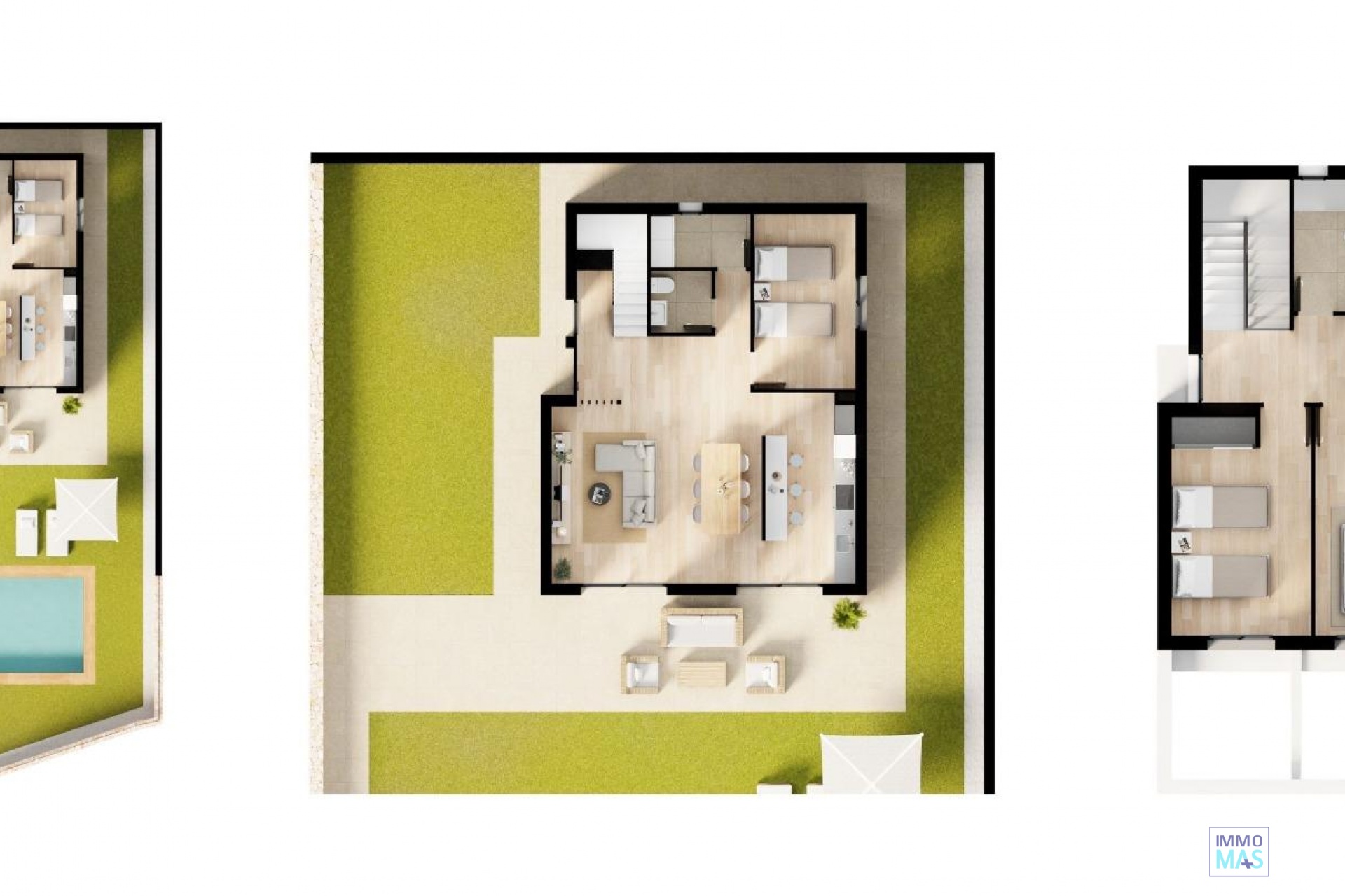 VILLAS NEUVES A FINESTRAT Nouvelle construction de villas indépendantes et jumelées à Balcon de Finestrat. Belles villas avec 4 chambres, 3 salles de bain, cuisine ouverte sur le salon, placards, jardin privé avec piscine et place de parking. Installation de l'air conditionné (chaud/froid). Le complexe résidentiel comprend une piscine communautaire pour adultes avec bassin pour enfants et solarium, un parking pour vélos, une aire de jeux pour enfants carrelée avec des pavés de sécurité continus. Complexe résidentiel parfaitement situé dans une enclave naturelle de la Costa Blanca et offrant des vues incroyables sur la ligne d'horizon de Benidorm, la crique de Finestrat et El Puig Campana. Benidorm est à seulement cinq minutes en voiture des propriétés et offre tous les services dont vous avez besoin, y compris des magasins, des bars, des restaurants, des supermarchés, des banques, des pharmacies et plusieurs écoles privées internationales. Les plages de Levante, Poniente et Cala de Finestrat, qui s'étendent sur plus de 6 km, sont parmi les meilleures d'Europe et ont été récompensées par le drapeau bleu de l'Union européenne. Tous les services de loisirs tels que les parcs à thème Aqua Natura, Terra Mítica, Terra Natura, Aqualandia et Mundomar, les terrains de golf Sierra Cortina et Villaitana, la randonnée et l'escalade à Puig Campana, un cadre naturel incomparable, ou encore les sports nautiques. Distance de la mer 4 km, de l'aéroport 26 km et du golf 1km. Complexe situé à 40 minutes de l'aéroport d'Alicante.