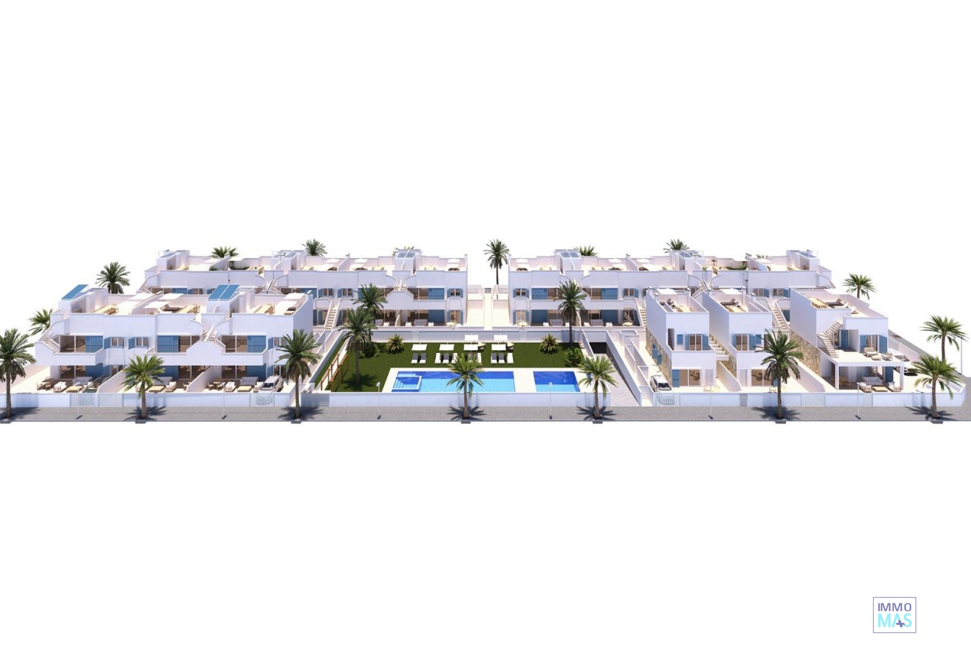 Villa neuve dans un complexe résidentiel avec piscine commune à Torre de la Horadada situé à 800m de la plage.