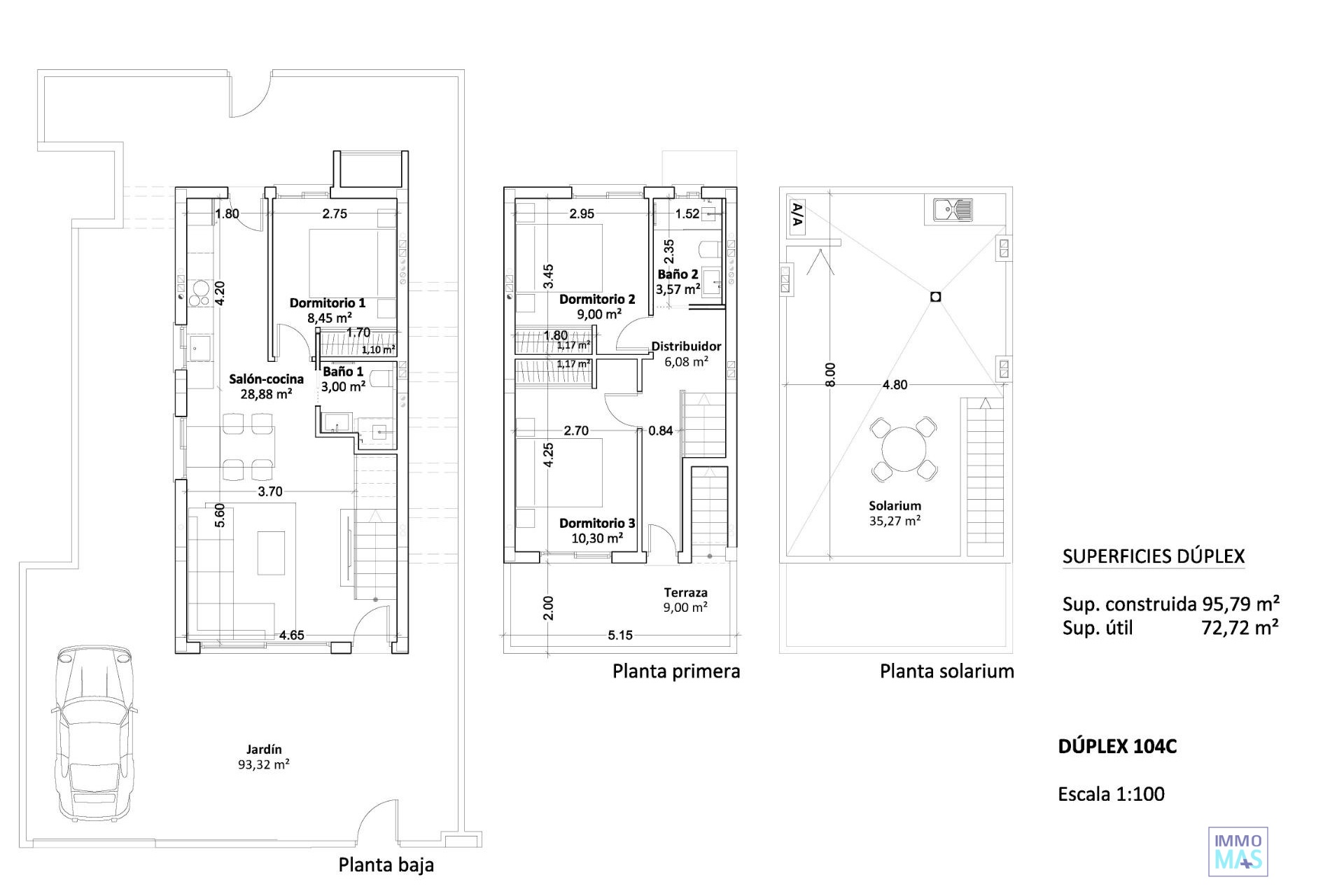 La villa dispose de 3 chambres, 2 salles de bains, cuisine ouverte sur le salon, placards, terrasse, solarium privé, jardin et place de parking.
