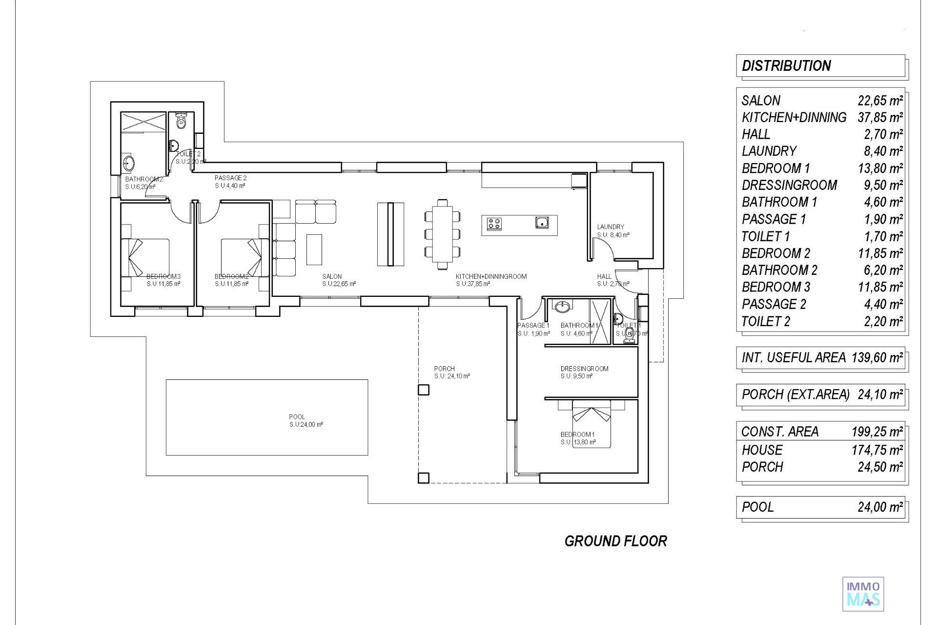 VILLAS NEUVES A PINOSO Nouvelle construction Villas indépendantes et modernes qui peuvent être construites sur des terrains rustiques ou urbains, nous avons une large gamme disponible dans la région de Pinoso : - 3 chambres, 2 salles de bains, 2 toilettes pour les invités - Piscine privée - Installation complète de l'air conditionné - Cuisine entièrement équipée - Grand choix de matériaux de qualité - Electricité et eau courante - 4 panneaux solaires inclus - Label énergétique AA - Choix de parcelles à partir de 10 000 m2 dans différents endroits. - Terrain clôturé de 3.000 m² pour un entretien facile - Portail coulissant motorisé Sur les parcelles rustiques, environ 3.000 m2 du terrain total seront clôturés et les maisons seront livrées avec environ 1.000 m2 de gravier autour de la maison. La maison dispose d'une piscine privée et de panneaux solaires photovoltaïques pour l'alimentation en électricité. Il y a plusieurs terrains rustiques à choisir dans différents endroits, chacun avec un prix différent (dans les prix publiés dans cette annonce, un terrain d'une valeur de 40.000 eur a été considéré, si l'acheteur choisit un autre terrain, le prix final sera recalculé en conséquence). Le délai de livraison est de 8 mois à compter de l'octroi du permis de construire. Il est acquis sous le régime de l'autopromotion : l'acheteur verse des acomptes sur le prix au fur et à mesure de l'exécution des travaux par le constructeur.