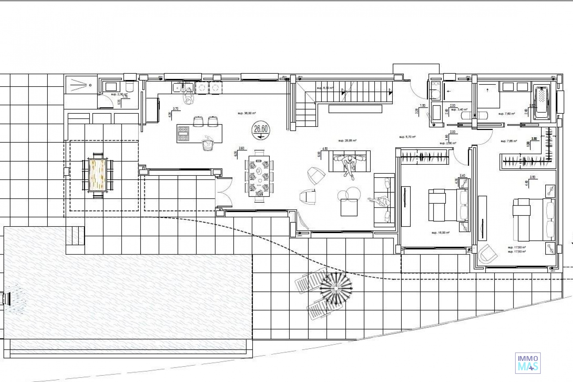 VILLA NEUVE AVEC VUE SUR LA MER A BENISSA Nouvelle villa de luxe construite sur un grand terrain de 1250m2, offrant une vue imprenable sur la mer et une vue dégagée vers Moraira. Moraira, très bien située dans une urbanisation tranquille à seulement 200 m de la plage ''La fustera'' et à 2 km du centre de Calpe. centre de Calpe. Villa de luxe distribuée sur 3 étages et dispose de 4 chambres à coucher, 5 salles de bains, cuisine ouverte équipée, salon avec de grandes fenêtres et accès direct à la piscine. Belle terrasse avec la piscine et l'espace barbecue, d'où il y a de belles vues sur la mer. La villa est située dans l'un des plus beaux quartiers résidentiels de la Costa Blanca. Les villes de Calpe, Benissa et Moraira offrent un littoral extraordinairement attrayant, d'un grand intérêt paysager et écologique, avec une côte accidentée aux nombreuses plages et criques cachées. Benissa est située entre Valence et la ville d'Alicante. L'aéroport de Manises à Valence est à une heure de route et celui de L'Altet à Alicante à 50 minutes. Ces deux aéroports sont de grands aéroports internationaux desservis par un grand nombre de compagnies aériennes à bas prix.