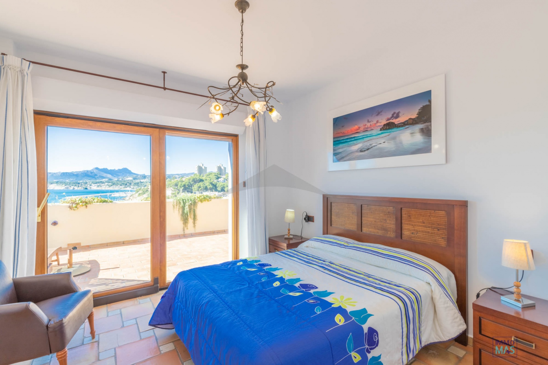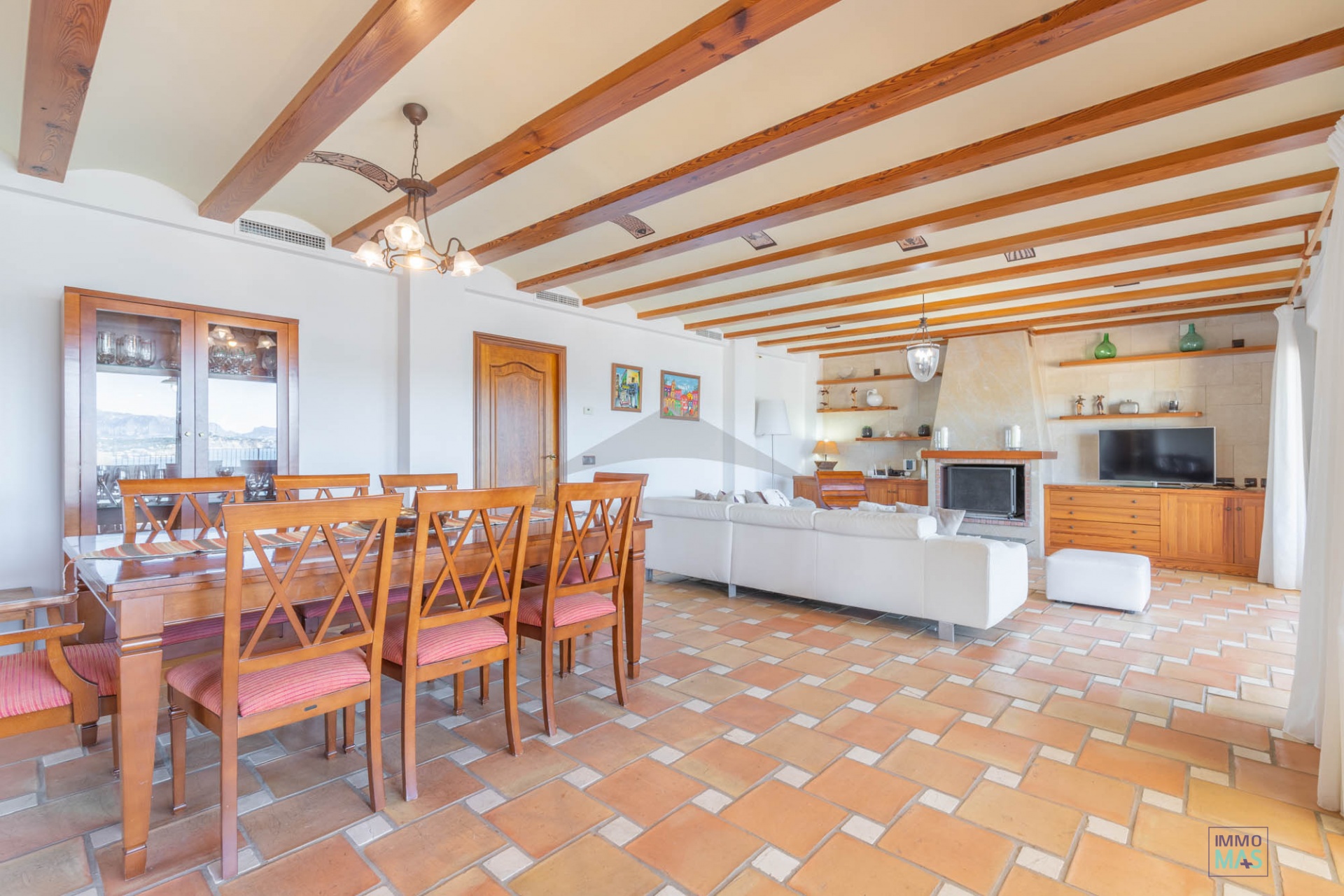 Vous cherchez une villa à Moraira à quelques pas de la plage d'El Portet avec une vue imprenable sur la mer jusqu'au Peñon de Ifach Alors cette propriété est parfaite pour vous. Cette grande propriété à El Portet a toutes les finitions de luxe nécessaires. La villa est conçue avec des matériaux de haute qualité, beaucoup d'espace extérieur, une grande piscine à partir de laquelle vous pouvez profiter des belles vues d'El Portet et de la mer Méditerranée. Cette belle villa est prête à emménager et située dans un endroit parfait avec une exposition sud. Par conséquent, vous disposez de tout le soleil pour profiter au mieux de la vie espagnole. Description de cette villa à El PortetCette villa située à quelques pas de la plage d'El Portet se compose de deux étages reliés par un escalier interne. Le rezdechaussée de la maison, au niveau de la piscine, auquel on accède par la belle porte d'entrée, donne accès au spacieux salon/salle à manger avec poêle à bois. Cette pièce a un accès direct à la terrasse extérieure par les grandes fenêtres coulissantes. À côté du salon/salle à manger se trouve la grande cuisine, entièrement équipée d'appareils de qualité. Un grand avantage de cette cuisine est l'espace de rangement supplémentaire qui en fait une cuisine très pratique. De plus, la cuisine a un accès direct à la terrasse de la piscine et à la naya. De plus, à cet étage, vous trouverez une chambre double avec salle de bain attenante. 300 jours de soleil sur la Costa BlancaL'escalier interne mène à l'étage supérieur où se trouvent trois autres chambres doubles et deux salles de bains, dont une en suite. Deux des chambres à coucher ont accès à la terrasse supérieure, d'où vous pouvez profiter des merveilleuses vues sur la mer. Cette belle maison à seulement 300m de la plage d'El Portet a beaucoup d'espace extérieur, une grande piscine entourée d'une grande terrasse pour que vous puissiez profiter du soleil toute la journée. La maison a également une belle cuisine extérieure qui assure que la vie extérieure peut être utilisée de manière optimale. La propriété est située sur un terrain clos de 800 m2 avec une aire de stationnement où vous pouvez garer trois voitures plus deux dans le garage. L'accès à la propriété se fait par une rampe qui monte jusqu'à l'aire de stationnement. Pourquoi choisir cette villa de luxe à vendre à Moraira Climatisation dans toutes les chambres Vues fantastiques sur la baie d'El Portet Grand terrain orienté au sud Portes et fenêtres en PVC avec double vitrage et volets de sécurité électriques. Jardin charmant avec des palmiers et différents arbresVous ne pouvez pas attendre pour voir cette propriété à El Portet N'hésitez pas à nous contacter sans aucune obligation.