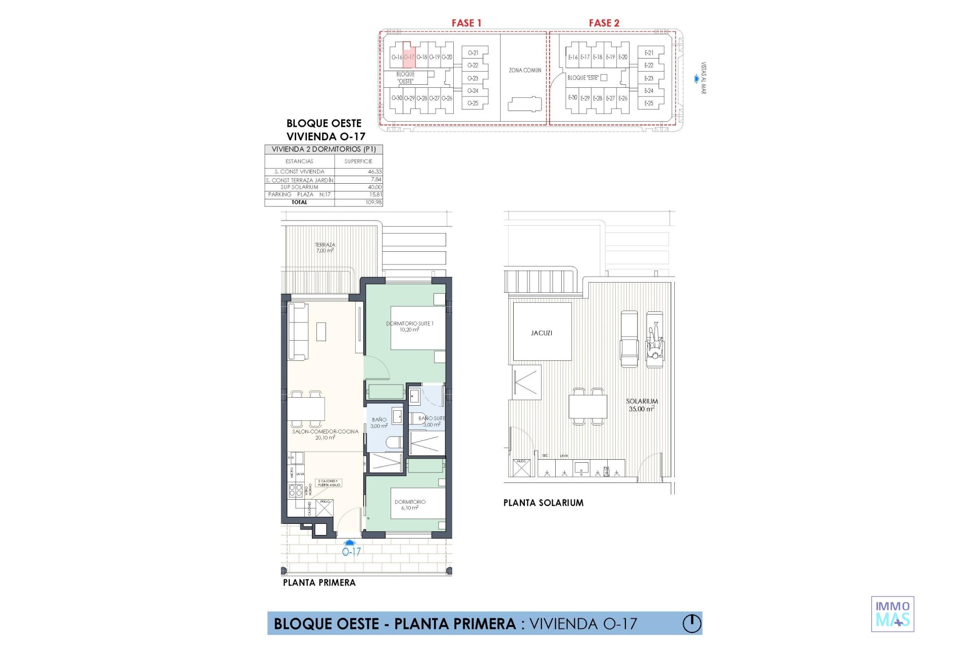 Vie moderne à quelques pas de la plage de Las Higuericas à Torre de la Horadada Situation privilégiée à proximité de la côte méditerranéenne Découvrez le meilleur de la vie côtière avec ce superbe nouveau projet situé à seulement 150 mètres de la plage de Las Higuericas à Torre de la Horadada. Connue pour son sable doré et ses eaux cristallines, cette ville en bord de mer offre un mélange parfait de détente et d'équipements modernes. Que vous recherchiez une retraite tranquille ou un mode de vie dynamique, Torre de la Horadada offre le cadre idéal pour la maison de vos rêves. Des résidences bien conçues Vous avez le choix entre des bungalows modernes au rez-de-chaussée avec jardins privés et des bungalows au dernier étage avec solariums spacieux. Chaque propriété de deux chambres est conçue dans un souci d'esthétique et de fonctionnalité contemporaines : Des places de parking privées. De grandes terrasses pour profiter de l'extérieur. Des équipements haut de gamme qui améliorent le confort et la commodité. Des équipements collectifs exceptionnels La résidence est dotée d'un ensemble d'équipements collectifs conçus pour améliorer votre expérience de vie : Des espaces verts aménagés pour la détente. Une piscine commune rafraîchissante. Un terrain de paddle pour les amateurs de sport. Un accès pratique par ascenseur depuis le parking souterrain. Des équipements haut de gamme pour un confort moderne Chaque logement est équipé de finitions de haute qualité, notamment Des portes d'entrée sécurisées pour la tranquillité d'esprit. Fenêtres à rupture de pont thermique pour une meilleure isolation acoustique. Placards aménagés avec éclairage LED. Climatisation par gaine préinstallée pour un confort tout au long de l'année. Des équipements de salle de bain élégants, des miroirs et des écrans de douche en verre. Stores électriques et éclairage extérieur pour plus de commodité. Chauffe-eau aérothermiques pour une meilleure efficacité énergétique. Accès pratique aux attractions locales L'emplacement privilégié de ce projet garantit un accès facile à une variété d'attractions et de commodités : Plage de Las Higuericas : À seulement 150 mètres, pour des journées de plage sans effort. Aéroport de Murcie : 30 km (environ 30 minutes en voiture). Terrain de golf Lo Romero : 10 km, idéal pour les amateurs de golf. Centre commercial Dos Mares : 11 km, offrant des boutiques, des restaurants et des divertissements. Port de San Pedro del Pinatar : 8 km, idéal pour profiter des activités en bord de mer. La maison de vos rêves vous attend à Torre de la Horadada Adoptez le style de vie unique de Torre de la Horadada, où le design moderne rencontre le charme méditerranéen. Ne manquez pas votre chance de devenir propriétaire d'une maison dans cette communauté exclusive. Contactez-nous dès aujourd'hui pour en savoir plus ou planifier une visite !