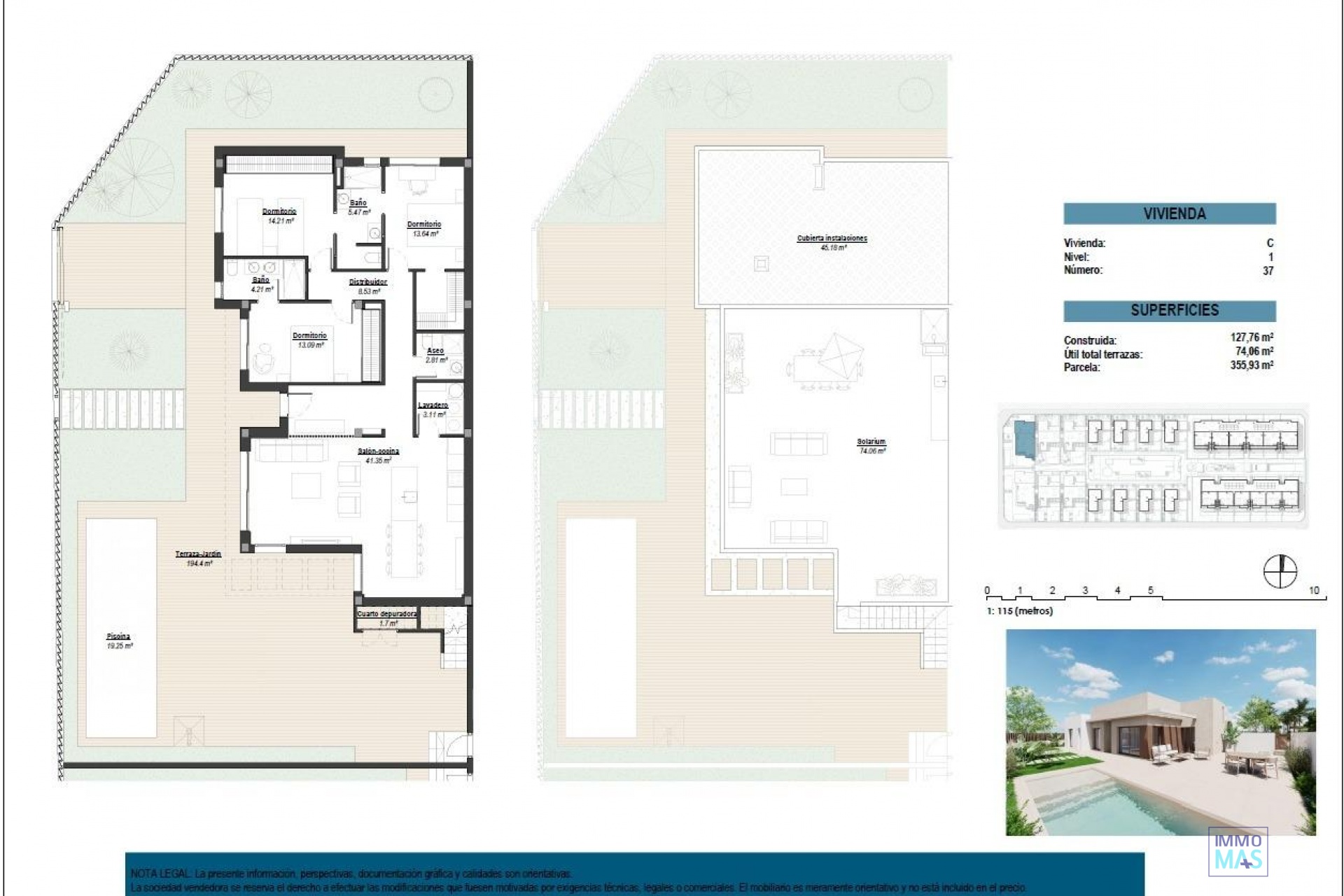 Villas et bungalows exclusifs sur la Costa Cálida - Design, confort et emplacement privilégié Un projet qui allie intimité et vie en communauté Découvrez un nouveau concept résidentiel sur la Costa Cálida, conçu pour ceux qui recherchent la combinaison parfaite entre intimité, confort et vie sociale. Ce complexe exclusif propose des villas individuelles et des bungalows, avec accès à de vastes espaces communs et à une piscine commune, offrant le meilleur des deux mondes : la tranquillité d'une maison privée et le confort d'espaces partagés à apprécier avec les amis, la famille et les voisins. Tous les logements comprennent une place de parking et un local de rangement en sous-sol, garantissant sécurité et commodité aux résidents. Conception moderne et options de personnalisation Ce projet offre une large gamme de logements qui répondent à des besoins et à des styles de vie différents : Bungalows au rez-de-chaussée avec jardins privés jusqu'à 122 m². Bungalows au dernier étage avec de grandes terrasses et un solarium privé. Villas individuelles à un ou deux étages, avec des parcelles allant de 201 à 356 m² et différentes options d'aménagement et de finition. Chaque maison est conçue pour maximiser la lumière naturelle, créant ainsi des espaces spacieux et accueillants. La suite parentale a été soigneusement conçue pour garantir l'intimité et le confort, en séparant complètement la chambre de la salle de bains, évitant ainsi les interruptions de lumière ou de bruit pendant la nuit. Qualité et durabilité dans les moindres détails Ces maisons ont été construites avec des matériaux de haute qualité et équipées de technologies durables, telles que les panneaux solaires et l'aérothermie, afin d'améliorer l'efficacité énergétique. Caractéristiques remarquables : Stores motorisés dans les chambres. Porte d'entrée blindée pour plus de sécurité. Pré-installation de l'air conditionné. Salles de bains modernes avec cloisons en verre trempé et meubles suspendus avec miroir LED. Emplacement stratégique à Los Alcázares Situé à quelques mètres du prestigieux terrain de golf Serena et à 1 km des plages de la Mar Menor, ce complexe jouit d'une situation privilégiée à Los Alcázares, l'une des zones les plus prometteuses de la Costa Cálida. De plus, l'accès facile à l'autoroute AP-7 permet de rejoindre rapidement d'autres destinations de la région et facilite l'accès aux services essentiels tels que les supermarchés, les centres sportifs, les écoles et les pharmacies. Distances des points d'intérêt La Serena Golf - 1 km (2 minutes en voiture). Plage de Mar Menor - 1 km (2 minutes en voiture ou 10 minutes à pied). Aéroport de Murcie - 35 km (30 minutes en voiture). Port de Carthagène - 22 km (20 minutes en voiture). Centre commercial local - 3 km (5 minutes en voiture). Un style de vie méditerranéen et une rentabilité élevée Ce projet représente non seulement une excellente option pour profiter du style de vie méditerranéen, mais aussi un investissement sûr dans une région en pleine croissance. Ne manquez pas cette opportunité unique. Contactez-nous dès aujourd'hui pour plus d'informations et pour réserver votre maison idéale sur la Costa Cálida.