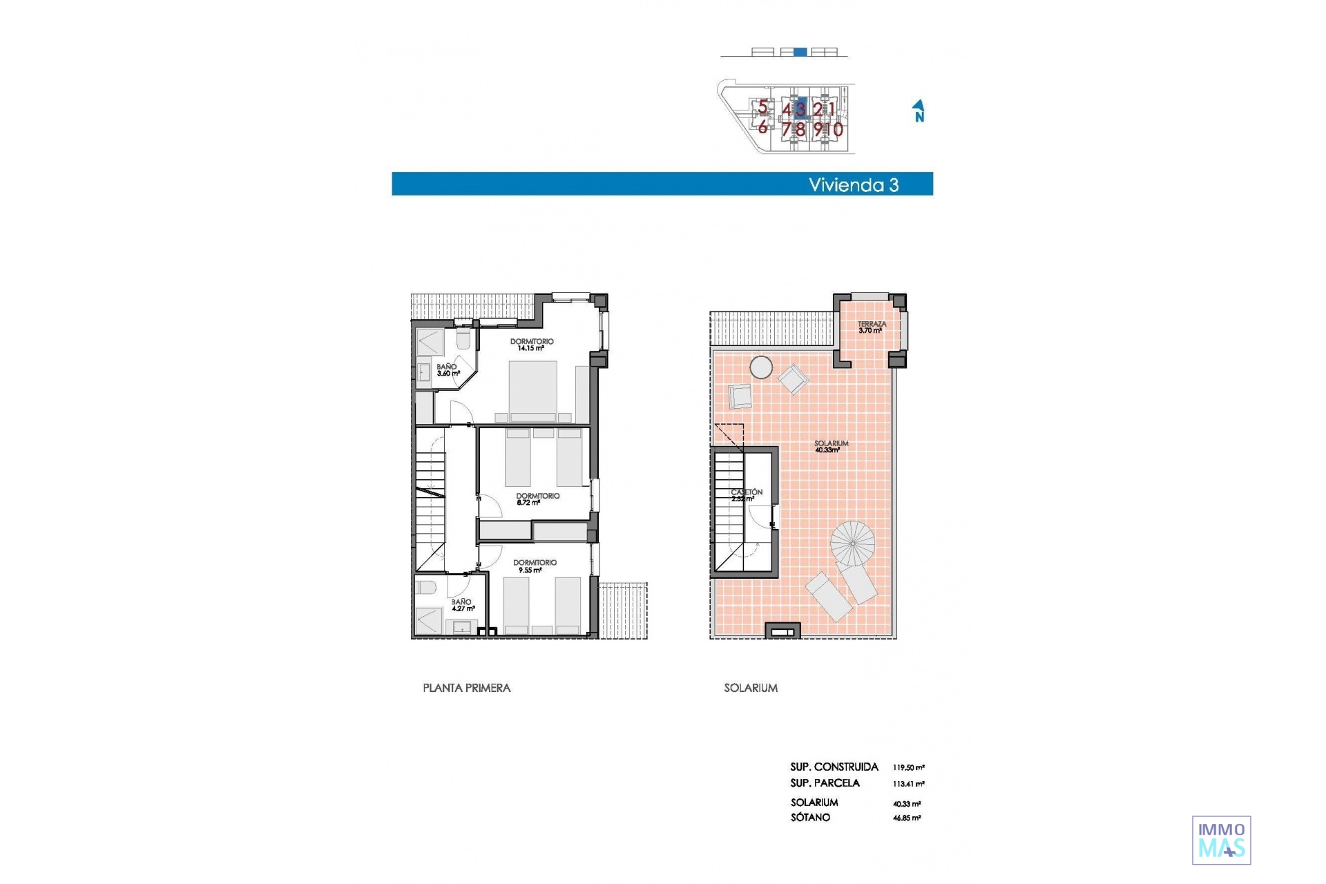 Villas jumelées et quads exclusifs à Bigastro, Alicante Maisons de style méditerranéen au cœur de la Vega Baja Ce nouveau complexe résidentiel à Bigastro, un charmant village de la Vega Baja, propose 8 quads et 2 villas jumelées conçues dans un élégant style méditerranéen. Situées dans un quartier calme et bien desservi, ces propriétés sont idéales pour ceux qui recherchent une combinaison parfaite de confort, d'intimité et de proximité de toutes les commodités. Conception spacieuse et fonctionnelle Chaque propriété a été conçue pour offrir espace et confort, avec 4 chambres et 3 salles de bains réparties sur 2 étages. Rez-de-chaussée : une chambre, une salle de bains, une cuisine ouverte sur le salon, une buanderie et un accès au jardin. A l'étage : 3 chambres, dont la chambre principale avec salle de bains attenante. Solarium privé de 40 m², idéal pour profiter du climat méditerranéen et des vues dégagées. Jardin privé avec possibilité de piscine, moyennant un supplément. Garage privé de plus de 60 m² en sous-sol, avec accès direct à la propriété. Bigastro : Tranquillité et connectivité Bigastro est une commune accueillante du sud d'Alicante, connue pour son environnement paisible et son excellente connexion avec les principales villes et plages de la Costa Blanca. Orihuela - 5 km (5 minutes en voiture). Plages de Guardamar - 25 km (15 minutes en voiture). Torrevieja - 30 km (25 minutes en voiture). Aéroport d'Alicante - 55 km (30 minutes en voiture). Centre commercial Zenia Boulevard - 30 km (25 minutes en voiture). La municipalité dispose de tous les services essentiels, tels que des supermarchés, des écoles, des centres sportifs et une riche offre gastronomique, ce qui en fait un endroit parfait pour une résidence permanente ou pour profiter d'une résidence secondaire. Découvrez votre nouvelle maison sur la Costa Blanca Si vous êtes à la recherche d'une maison moderne et spacieuse dans un endroit calme mais bien desservi, ces villas et quads à Bigastro sont le choix idéal. Contactez-nous dès aujourd'hui pour plus d'informations ou pour organiser une visite.