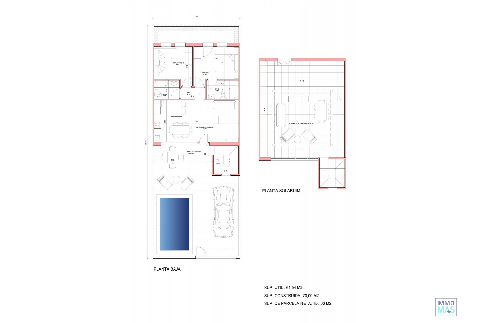 Résidence neuve composée de villas et de maisons mitoyennes à Fuente Álamo, Murcie. Cet emplacement offre un cadre naturel exceptionnel, loin de l'agitation des grandes villes et de la pression touristique de la côte. De plus, nous nous engageons à travailler dans une perspective de développement durable, en minimisant notre impact environnemental et en maximisant l'intégration avec la communauté locale. Ici, vos rêves d'un mode de vie paisible et durable deviennent réalité. Imaginez-vous vous réveiller chaque matin dans un cadre naturel impressionnant, entouré de paysages sereins et de la beauté unique de la campagne murcienne. Cette promotion privilégie l'efficacité énergétique, l'utilisation de matériaux respectueux de l'environnement et l'intégration harmonieuse dans le milieu rural. De la conception de la propriété à la planification du développement, nous réduisons notre empreinte carbone et encourageons des pratiques responsables dans toutes nos opérations. Installation complète de climatisation par conduits, froid/chaud. Système de vidéophone. Porte d'accès sécurisée laquée, avec serrure et ferrures anti-vandalisme. Armoires avec coffre, doublées à l'intérieur, laquées en blanc. Meubles de cuisine avec appareils électroménagers inclus. Eau chaude par aérothermie. Volets électriques. Pergolas dans les solariums. Piscine privée de 2,5 x 4,5 m avec éclairage nocturne immergé et purification par système de chloration saline. Pré-installation pour cuisine extérieure/jacuzzi dans le solarium. Fuente Álamo de Murcia est une localité et une commune de la région de Murcie, dans le sud de l'Espagne. Elle est située à 22 km au nord-ouest de Carthagène et à 35 km au sud-ouest de Murcie. La ville se trouve dans le bassin de la Mar Menor, entourée par les sierras d'Algarrobo, Los Gómez, Los Victorias et Carrascoy. L'eau de ces montagnes s'écoule vers la Rambla de Fuente Álamo, puis vers la Mar Menor. Fuente Álamo se trouve à 30 minutes de l'aéroport de Murcie - Corvera. Commerces les plus proches à 6 km.