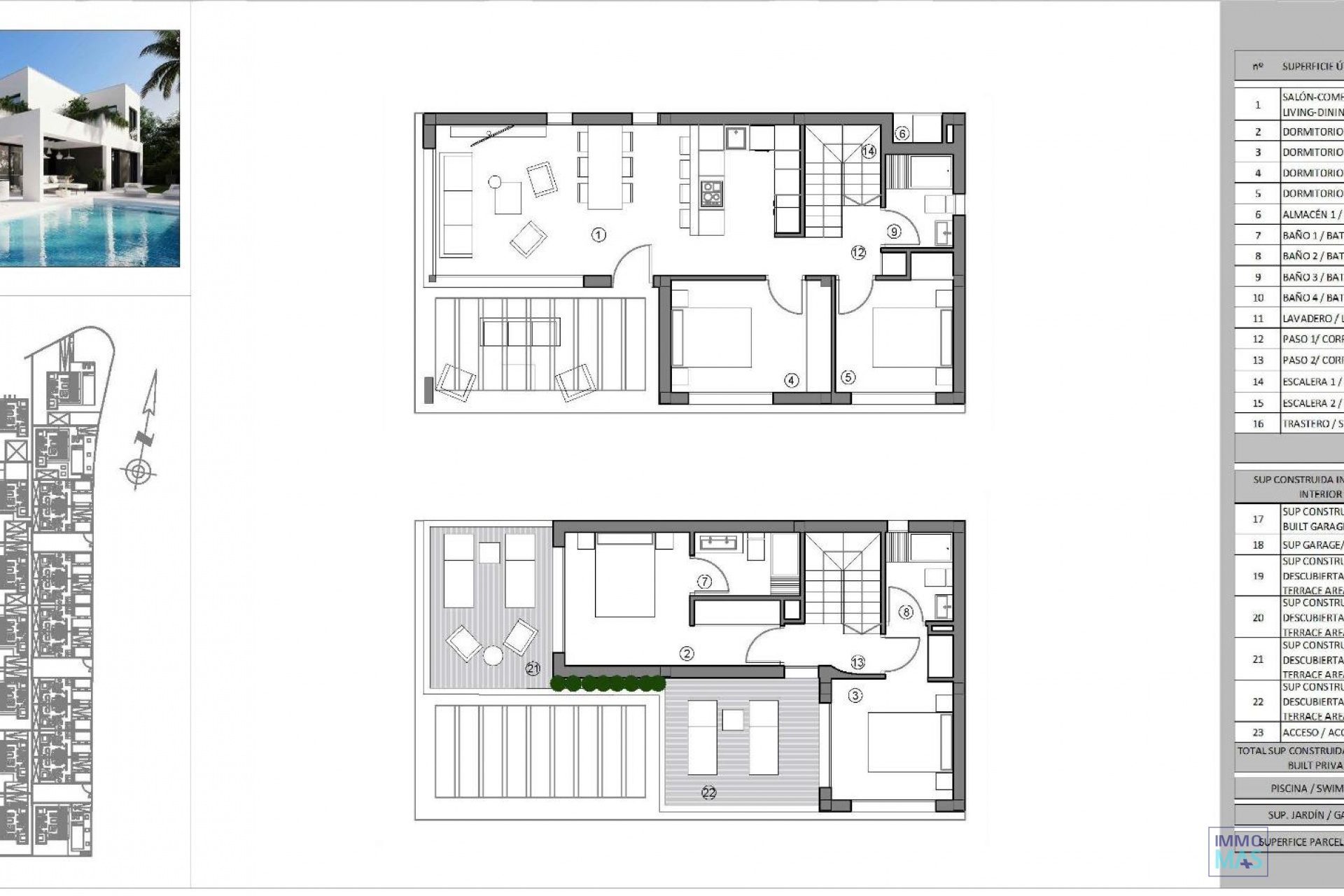 Villas neuves à Finestrat - Luxe, nature et vues sur la mer Résidence exclusive à Sierra Cortina, Benidorm-Finestrat Découvrez ce nouveau projet résidentiel de luxe à Sierra Cortina, Finestrat, l'une des zones les plus exclusives de la Costa Blanca. Ce lotissement propose 30 villas au design avant-gardiste, avec des options de villas jumelées et individuelles, toutes avec des vues spectaculaires sur la mer et les montagnes. Situé dans un cadre paisible, mais proche de toutes les commodités, ce lotissement est idéal pour ceux qui recherchent l'intimité, le confort et l'accès aux meilleures plages et aux meilleurs services de Benidorm. Design moderne et espace de vie Les villas ont été conçues dans un style contemporain, optimisant la lumière naturelle et les vues panoramiques. Vous pourrez choisir parmi différents modèles avec des options de 2 à 4 chambres, et certains modèles comprennent un sous-sol avec patio anglais, offrant la possibilité d'ajouter des chambres supplémentaires. Chaque maison présente les caractéristiques suivantes 2 étages avec terrasses privées avec vue sur la mer. Piscine privée et jardin pour votre plaisir. Garage sur le terrain, avec espace pour votre véhicule. Cuisine ouverte intégrée au salon. Placards aménagés et espaces de rangement. Buanderie pour plus de commodité. Situation privilégiée sur la Costa Blanca Cette résidence exclusive est située à Sierra Cortina, l'une des zones les plus prestigieuses de la Costa Blanca, entourée par la nature et avec un accès à des services de première classe. À seulement 3 km de la mer, ce projet est situé à côté de deux terrains de golf et à proximité du parc à thème Terra Mitica et de l'hôtel de luxe Asia Gardens. Il bénéficie également de connexions rapides avec les principaux axes routiers et aéroports de la région. Distances des principaux points d'intérêt Plages de Benidorm - 3 km. Terrains de golf Villaitana et Sierra Cortina - 2 km. Centre commercial La Marina - 2 km. Parc à thème Terra Mitica - 1,5 km. Aéroport d'Alicante - 40 km. Vivre dans une zone exclusive avec toutes les commodités Finestrat est une charmante commune de la Marina Baixa, située à quelques minutes de Benidorm. La combinaison de la montagne et de la mer, ainsi que l'infrastructure moderne, en font un endroit idéal pour vivre ou investir. Ne manquez pas l'occasion d'acquérir une villa neuve dans cet endroit privilégié. Contactez-nous dès aujourd'hui pour plus d'informations et pour organiser une visite.