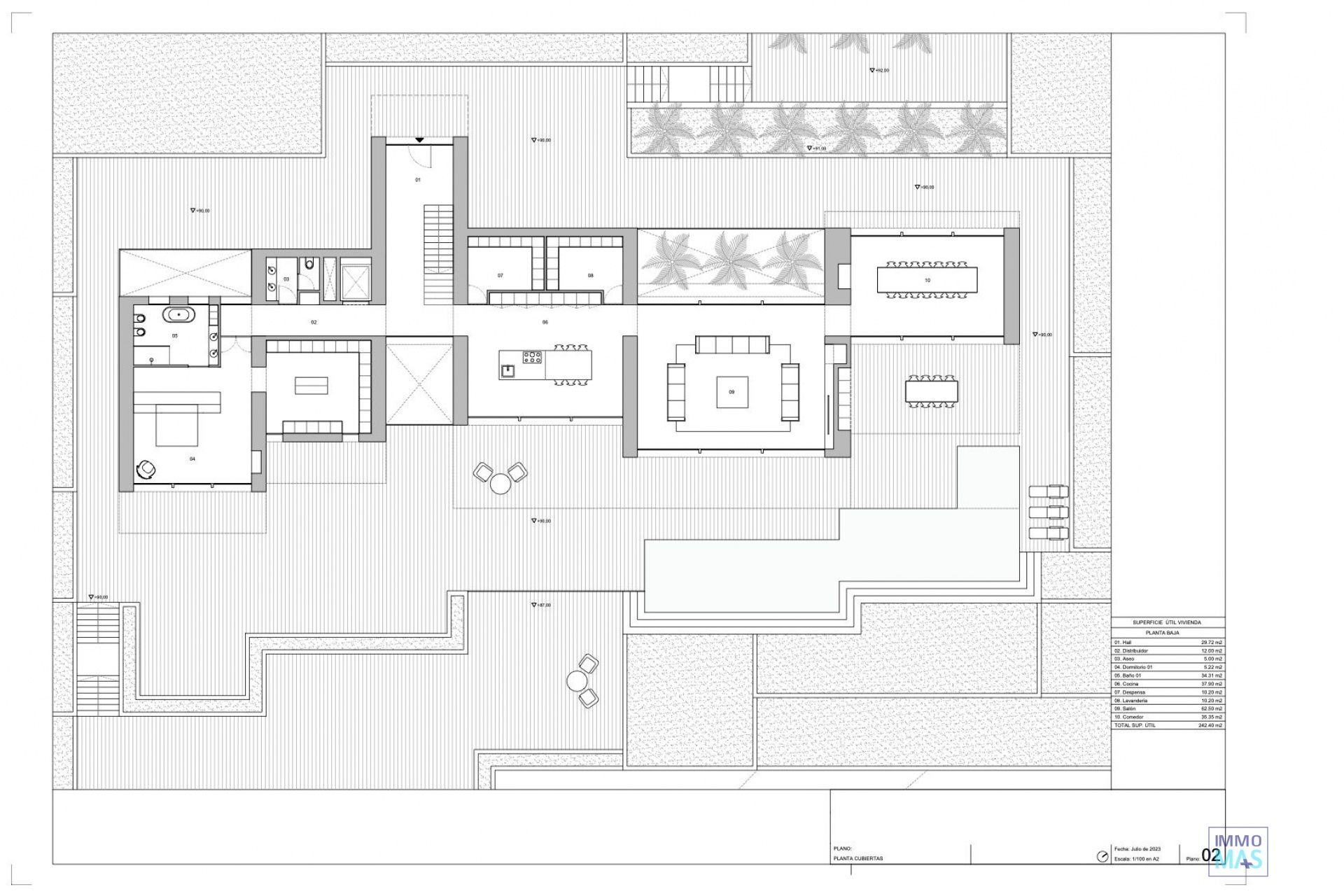 Construit sur un terrain de 2 896 m², réparti sur 3 étages reliés par un escalier intérieur et un ascenseur, avec 2 264,10 m² construits, répartis en 6 chambres, 6 salles de bains, 2 toilettes, cuisine ouverte entièrement équipée avec garde-manger et buanderie, salon, salle à manger avec accès direct à la terrasse avec barbecue et piscine de surface d’eau, Terrasses extérieures couvertes et non couvertes de 650 m² , chauffage au sol équipé avec pompe à chaleur, climatisation canalisée, jardin, garage fermé pour 6 voitures, débarras, panneaux solaires...