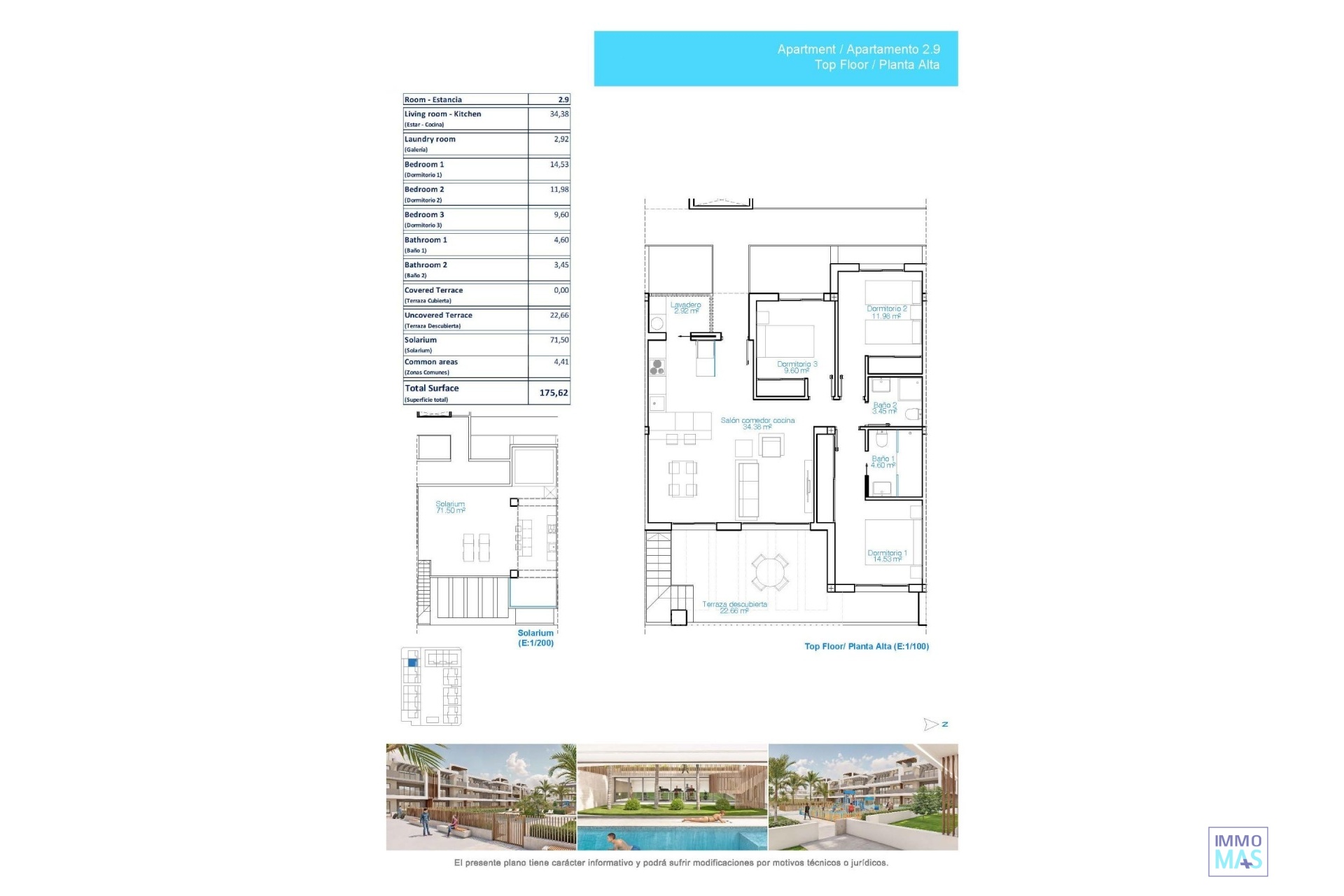 Appartements touristiques de luxe à 150 mètres de la plage de Las Higuericas - Torre de la Horadada Nouveau projet exclusif avec licence de location incluse Bienvenue dans un nouveau complexe résidentiel à Torre de la Horadada, à seulement 150 mètres du sable doré de la plage de Las Higuericas. Ce projet moderne propose 48 appartements touristiques entièrement meublés, tous livrés avec une licence de location à court terme, ce qui en fait un investissement idéal pour les locations de vacances ou l'agrément personnel. Vous avez le choix entre 42 unités avec 3 chambres et 2 salles de bains ou 6 unités avec 2 chambres et 2 salles de bains, toutes conçues pour maximiser le confort, le style et la fonctionnalité. Aménagements conçus pour la vie côtière Chaque propriété est conçue pour répondre à des besoins de vie différents : Les appartements du rez-de-chaussée disposent de vastes jardins privés avec vue sur les espaces communs. Les appartements du premier étage disposent de grandes terrasses, dont certaines offrent une vue partielle sur la mer. Les penthouses disposent de solariums privés avec vue sur la mer, de cuisines extérieures, de pergolas, de jacuzzis et de gazon artificiel. Tous les logements comprennent un parking souterrain privé et une salle de stockage. La première phase de construction devrait être achevée à l'été 2026. Entièrement équipées et prêtes à l'emploi Ces maisons sont entièrement équipées pour une occupation immédiate, y compris : Meubles et décorations de style méditerranéen Cuisines entièrement équipées avec appareils électroménagers Buanderies indépendantes Chauffage par le sol dans tout le logement Climatisation (chaud/froid) Linge de lit et articles ménagers Les fenêtres sont équipées de volets électriques et de verre thermo-acoustique Climasun, tandis que des systèmes aérothermiques à faible consommation d'énergie fournissent l'eau chaude. Des espaces communs de type villégiature pour profiter de la vie toute l'année Le projet comprend de nombreux équipements communs, tels que Piscine extérieure pour adultes et enfants Aire de jeux pour enfants Espaces verts paysagers Espace bien-être au sous-sol avec piscine intérieure chauffée, jets de massage, sauna et salle de sport entièrement équipée Chaque détail a été conçu pour offrir aux résidents et aux invités une expérience méditerranéenne relaxante et luxueuse. Emplacement privilégié avec accès facile aux principales attractions Cet emplacement imbattable offre une proximité avec le meilleur de la Costa Blanca et de la Costa Cálida : Plage de Las Higuericas - 150 m Terrain de golf Lo Romero - 10 km Centre commercial Dos Mares - 11 km Port de San Pedro del Pinatar - 8 km Aéroport de Murcie - 30 km Aéroport d'Alicante - 65 km Sécurisez votre investissement côtier dès aujourd'hui Si vous cherchez une maison de vacances ou un investissement locatif, c'est l'occasion de posséder une propriété de première qualité près de la plage dans l'une des zones les plus recherchées. Contactez-nous dès maintenant pour en savoir plus ou planifiez votre visite à Torre de la Horadada !