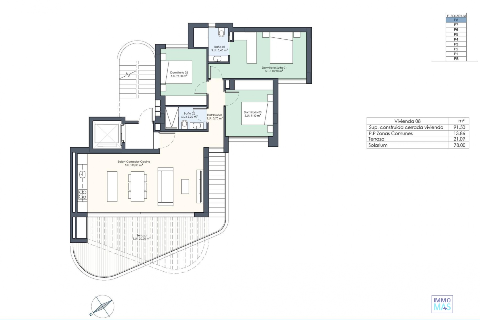 Appartements neufs avec vue sur le fleuve à Guardamar del Segura Résidence exclusive de seulement 9 logements modernes Ce nouveau projet résidentiel à Guardamar del Segura, Alicante, offre une occasion unique de vivre dans un emplacement privilégié avec une vue imprenable sur le fleuve Segura et la Vega Baja. Le bâtiment se compose de seulement 9 logements exclusifs, un par étage, garantissant intimité, tranquillité et confort. Logements spacieux avec grandes terrasses Chaque appartement dispose de 3 chambres et 2 salles de bains, ainsi que de grands espaces extérieurs : Rez-de-chaussée avec jardin privé de 120 m² Étages intermédiaires avec terrasses de 18 m² Penthouse avec terrasse et solarium privé de 78 m² Ces propriétés ont été conçues dans un style contemporain, idéal aussi bien pour une résidence permanente que pour des vacances sur la Costa Blanca. Équipements et finitions haut de gamme Les logements sont livrés avec d'excellentes finitions, pensées pour offrir confort et efficacité : Porte d'entrée blindée Salles de bains avec lavabos suspendus, miroir, douche à l'italienne et paroi en verre Système d'aérothermie pour l'eau chaude sanitaire (100 litres) Place de parking incluse dans le prix Emplacement idéal près de la mer et de tous les services La résidence est située à seulement 1,4 km de la plage et à quelques minutes du port de Guardamar, de la pinède naturelle et d'une zone commerciale animée avec des supermarchés, des restaurants et des services essentiels. Distances approximatives vers les points clés : Centre de Guardamar : 1,2 km (15 minutes à pied) Plage la plus proche : 1,4 km Port de plaisance : 1 km Parc Reina Sofía : 1,5 km Camp de golf La Marquesa (Ciudad Quesada) : 9 km Centre commercial Habaneras (Torrevieja) : 13 km Aéroport d'Alicante-Elche : 33 km Guardamar offre également une liaison directe en bus vers Alicante et Torrevieja, ce qui facilite les déplacements sans avoir besoin d'un véhicule personnel. Votre nouvelle maison à Guardamar vous attend Que ce soit comme investissement, résidence permanente ou maison de vacances, ce complexe résidentiel représente une opportunité exceptionnelle dans l'une des zones les plus prisées de la Costa Blanca. Contactez-nous dès maintenant et réservez votre appartement avec vue à Guardamar del Segura.
