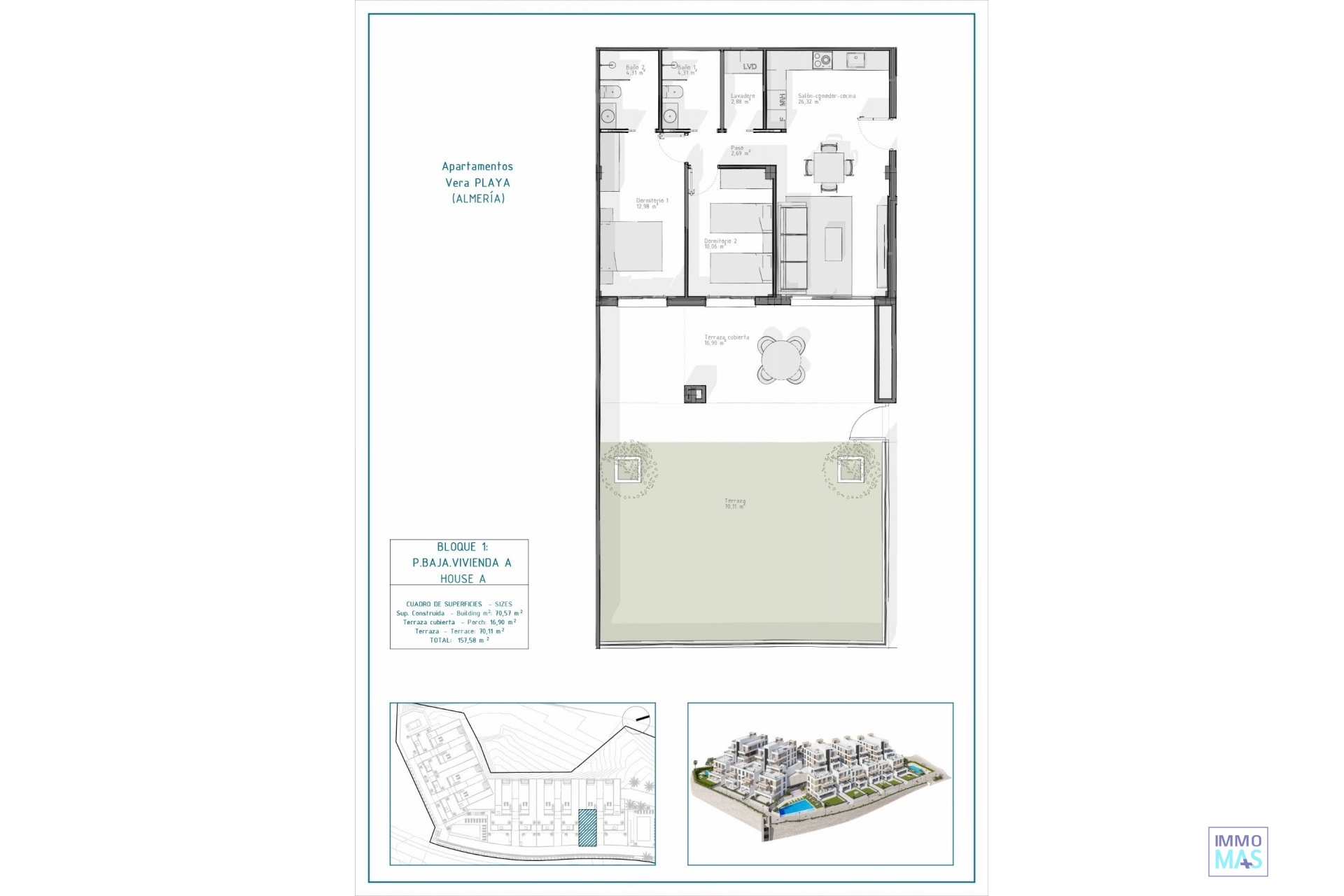 Appartements neufs à Vera Playa, Almería – Maisons modernes près de la mer Une vie contemporaine à Pueblo Salinas, à seulement 2 km de la plage Découvrez un superbe nouveau complexe résidentiel situé dans le quartier très prisé de Vera Playa, au sein de l'urbanisation exclusive de Pueblo Salinas. Ce complexe moderne offre un style de vie privilégié à seulement 2 km des plages de Vera (Almería), avec des vues spectaculaires sur la mer et un environnement méditerranéen paisible, idéal pour vivre toute l'année ou passer des vacances agréables. Des maisons élégantes alliant confort et style moderne Ce nouveau projet comprend 60 appartements de haute qualité répartis dans 5 immeubles de faible densité, avec seulement deux propriétés par étage. Choisissez entre des agencements de 2 ou 3 chambres conçus dans un souci de fonctionnalité, de confort et de style. Les options comprennent : Rez-de-chaussée avec jardins privés Appartements intermédiaires avec terrasses spacieuses Penthouses au dernier étage avec grands solariums comprenant une cuisine d'été et une pergola avec panneaux solaires. Toutes les propriétés disposent de : Cuisines ouvertes entièrement équipées avec réfrigérateur intégré, lave-vaisselle, plaque à induction, four, micro-ondes et hotte aspirante Espaces de vie lumineux et éclairage LED dans toute la maison (sauf dans les chambres) Volets motorisés en aluminium dans les chambres Salles de bains aux finitions modernes, avec sèche-serviettes, receveurs de douche avec parois en verre et meubles encastrés Pré-installation de la climatisation gainable Système aérothermique pour une production efficace d'eau chaude Porte d'entrée sécurisée Des équipements collectifs exceptionnels Les résidents bénéficieront d'un accès à un large éventail d'équipements conçus pour améliorer leur confort et leurs loisirs, notamment : Deux piscines extérieures idéales pour les mois d'été Une piscine intérieure chauffée pour une utilisation toute l'année Une place de parking privée et un espace de rangement inclus avec chaque propriété Pré-installation pour la recharge de véhicules électriques dans les parkings Emplacement privilégié avec d'excellentes connexions Vera Playa est une destination côtière très prisée, connue pour ses larges plages de sable et son style de vie décontracté. L'emplacement du complexe offre un accès facile aux services et attractions essentiels : Plage : 2 km Desert Springs Golf Resort : 8 km Centre-ville de Vera : 5 km Port de plaisance et restaurants de Garrucha : 6 km Parque Comercial Mojácar : 10 km Aéroport d'Almería : 85 km (1 heure en voiture) Faites de Vera Playa votre nouveau chez-vous Que vous recherchiez une résidence permanente, une maison de vacances ou un investissement intelligent, ces appartements neufs offrent un rapport qualité-prix inégalé dans l'une des zones les plus prisées de la Costa de Almería. Contactez-nous dès aujourd'hui pour obtenir plus d'informations et planifier votre visite.