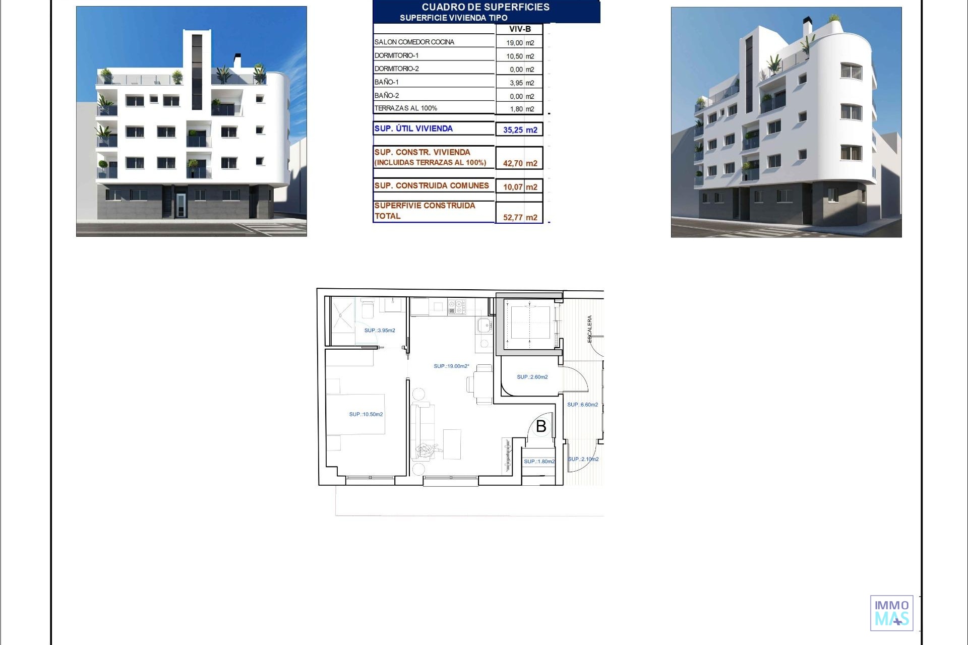 APPARTEMENTS NEUFS À TORREVIEJA Appartements et penthouses neufs à Torrevieja. Nouvelle construction résidentielle de 12 appartements et penthouses exclusifs de 1 et 2 chambres à coucher, 1 et 2 salles de bains, avec cuisine ouverte et espace de vie, grands placards équipés, salles de bains entièrement équipées avec chauffage par le sol. Tous les stores en aluminium sont motorisés. Porte d'entrée blindée avec serrure de sécurité. Pré-installation de l'air conditionné et du chauffage. Complexe résidentiel de nouvelle construction au design moderne et aux finitions de haute qualité, avec un magnifique solarium commun. Torrevieja est une ville espagnole de la province d'Alicante, sur la Costa Blanca. Elle est connue pour son climat typiquement méditerranéen et son littoral. Elle possède des promenades avec des stations balnéaires le long de ses plages de sable. Le petit musée de la mer et du sel présente des expositions sur l'histoire de la pêche et du sel dans la ville. À l'intérieur des terres, le parc naturel Lagunas de La Mata-Torrevieja propose des sentiers et deux lagunes salées, l'une rose et l'autre verte. L'aéroport d'Alicante se trouve à 40 minutes et celui de Murcie à environ 1 heure.