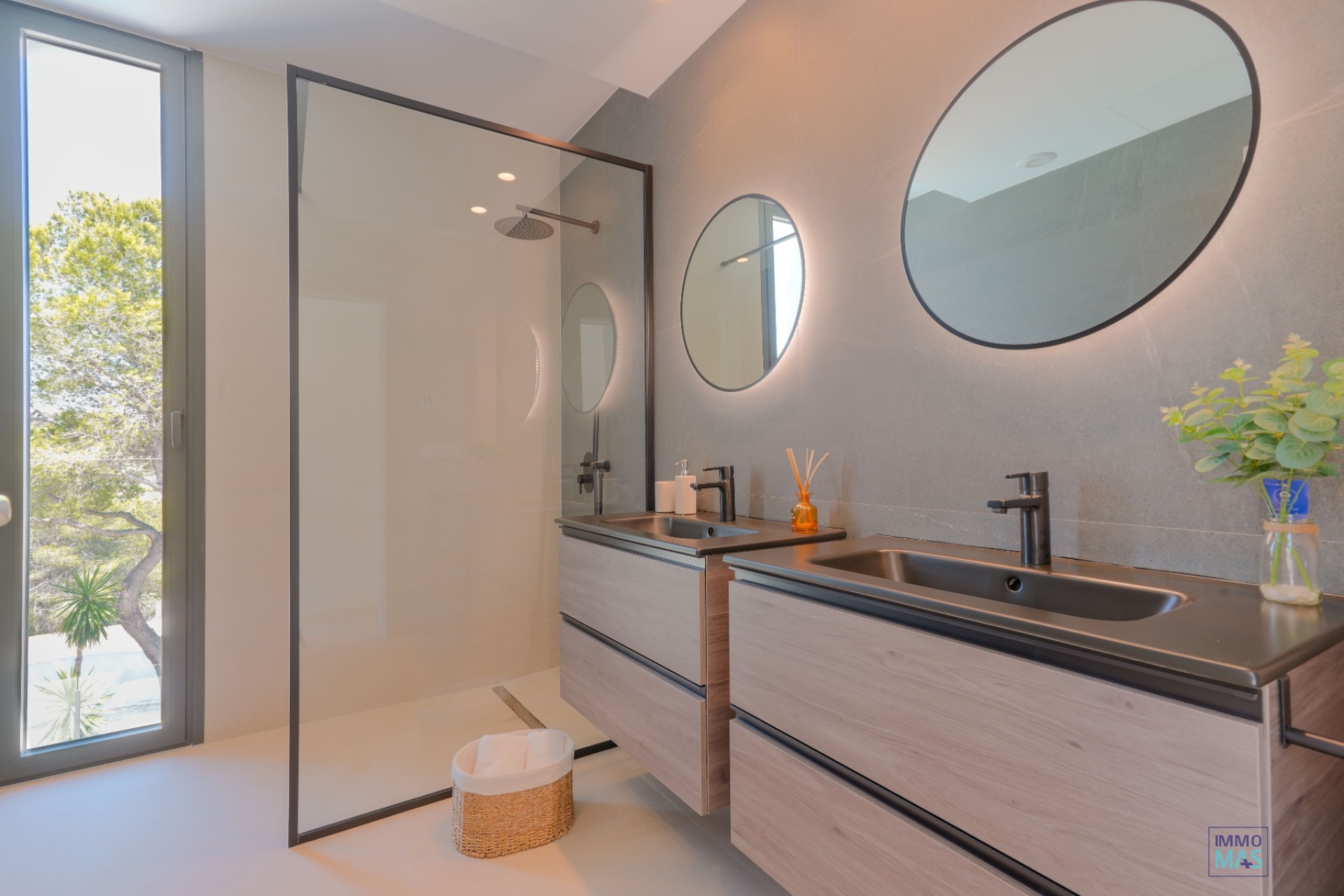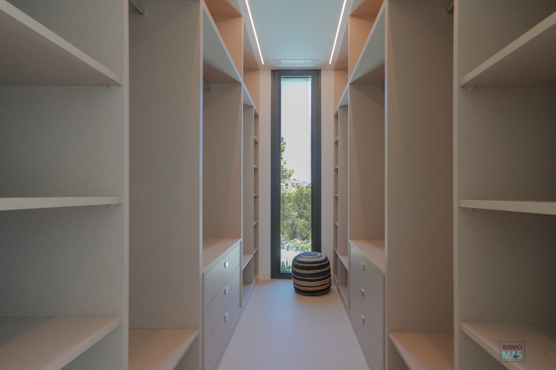 - Étage supérieur : Trois chambres, dont une chambre principale luxueuse avec dressing et salle de bains privative. Les deux autres chambres partagent une salle de bains. Toutes les chambres donnent sur un solarium ensoleillé, l'endroit idéal pour se détendre et profiter de la vue.