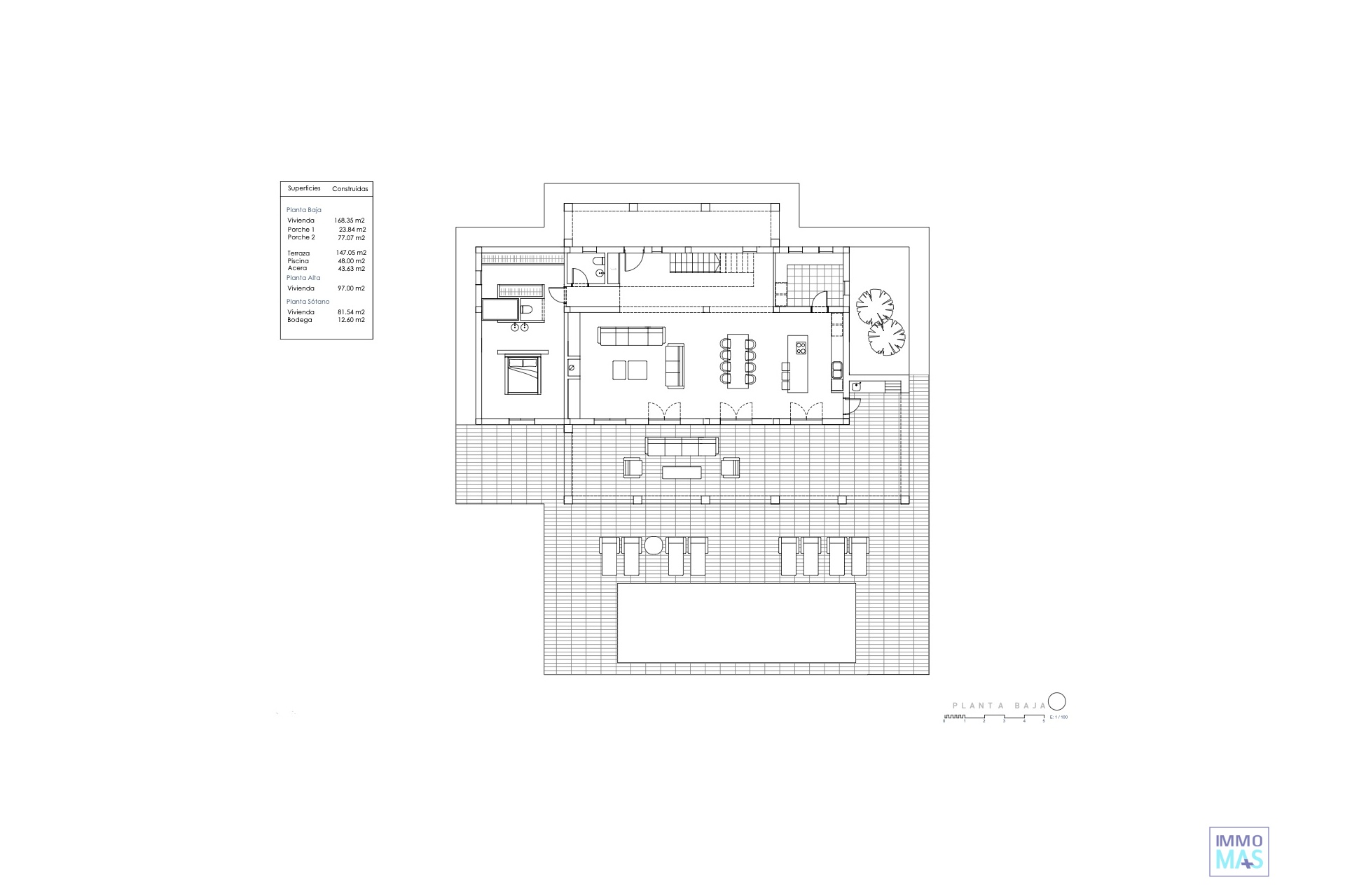 Il dispose de la climatisation dans toute la maison (conduit) et du chauffage par le sol. Porte d’entrée automatique avec entrée piétonne indépendante et interphone. Au même niveau que la maison principale se trouve la piscine et une grande terrasse.