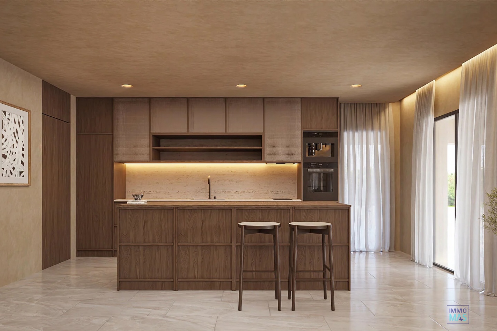Cette villa de style méditerranéen a 3 étages qui sont reliés par un escalier intérieur. Il dispose d’un spacieux salon-salle à manger-cuisine décloisonné. La cuisine est entièrement équipée et dispose d’un îlot pour cuisiner. Il dispose de 4 salles de bains et d’une toilette invités. La propriété dispose également d’un sous-sol et d’une buanderie.