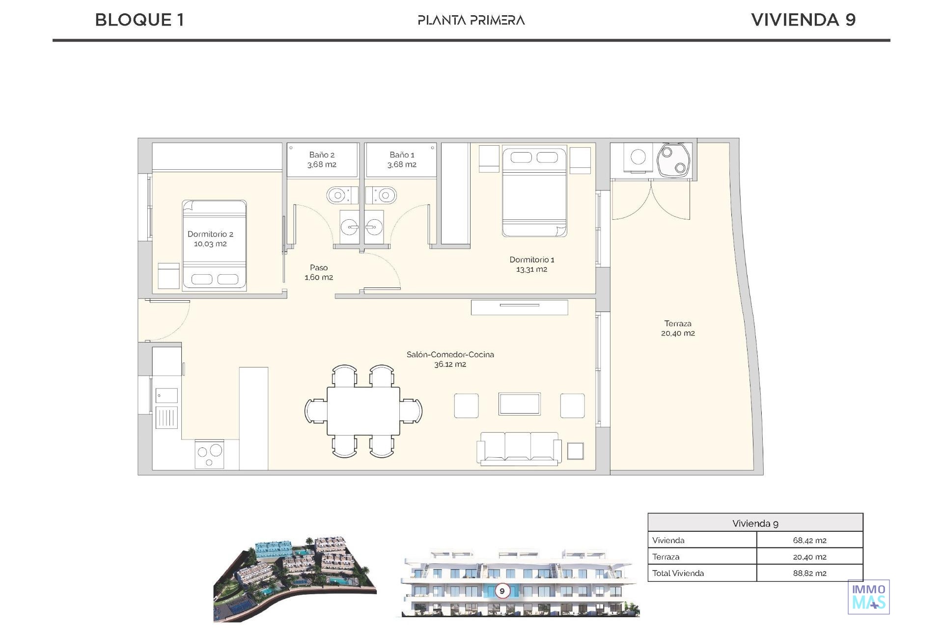 COMPLEXE RÉSIDENTIEL DE NOUVELLE CONSTRUCTION À FINESTRAT Nouveau complexe résidentiel à Balcon de Finestrat. Ce complexe d'appartements modernes avec 2 chambres, 2 salles de bains, cuisine ouverte sur le salon. Certains appartements auront une vue sur la mer. Les appartements du rez-de-chaussée disposent d'un jardin privé, ceux de l'étage intermédiaire d'une terrasse et ceux du dernier étage d'une terrasse et d'un solarium privé. Chaque propriété dispose d'un parking souterrain privé. Les propriétés ont accès à la zone commune avec 3 piscines, parking, paddle, aire de jeux, gymnastique suédoise. C'est une grande opportunité et un privilège de pouvoir vivre dans cet environnement de golf et de plage, proche de toutes les commodités de tous les services considérés comme l'un des meilleurs endroits pour investir. Finestrat est situé dans la région Marina Baixa de la Costa Blanca. Benidorm est à seulement cinq minutes en voiture des propriétés et offre tous les services dont vous avez besoin, y compris des magasins, des bars, des restaurants, des supermarchés, des banques, des pharmacies et plusieurs écoles privées internationales. Les plages de Levante, Poniente et Cala de Finestrat, qui s'étendent sur plus de 6 km, sont parmi les meilleures d'Europe et ont été récompensées par le drapeau bleu de l'Union européenne. Tous les services de loisirs tels que les parcs à thème Aqua Natura, Terra Mítica, Terra Natura, Aqualandia et Mundomar, les terrains de golf Sierra Cortina et Villaitana, la randonnée et l'escalade à Puig Campana, un cadre naturel incomparable, ou encore les sports nautiques. Distance de la mer 4 km, de l'aéroport 26 km et du golf 1km.
