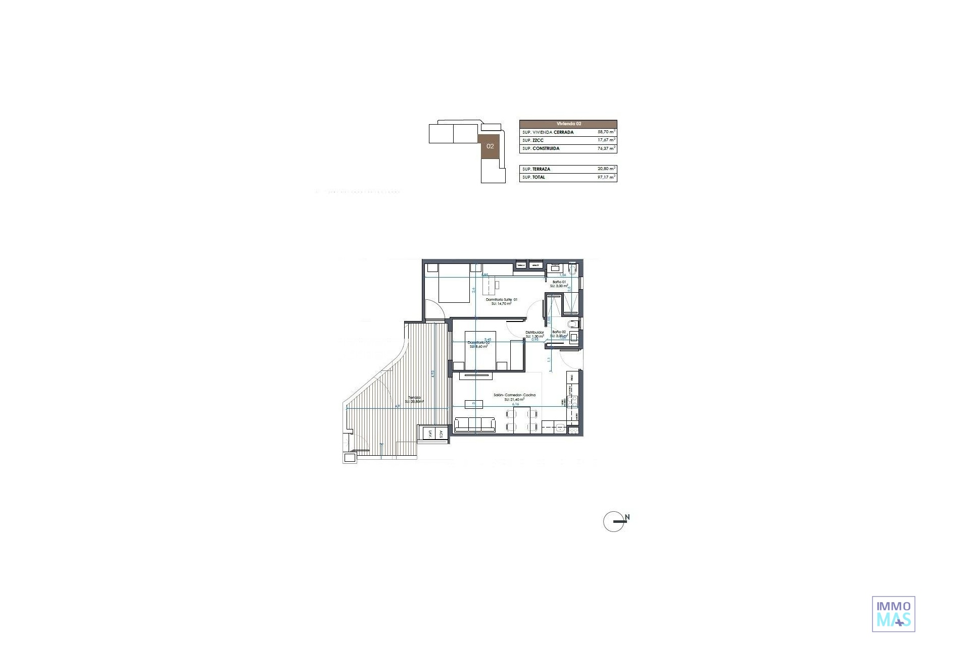 Appartements neufs à Guardamar del Segura – Une vie moderne à seulement 1,4 km de la plage Découvrez un nouveau programme résidentiel à Guardamar del Segura, Alicante, proposant seulement 19 logements exclusifs et modernes, conçus pour une vie confortable et contemporaine sur la Costa Blanca. Idéalement situé à seulement 1,4 km de la plage et à quelques pas du centre-ville, ce programme allie style, fonctionnalité et un emplacement privilégié en bord de mer. Projet résidentiel exclusif avec disponibilité limitée Ce projet immobilier de charme propose des appartements de 2 et 3 chambres avec différents agencements pour répondre à tous les besoins : Appartements en rez-de-chaussée avec de spacieuses terrasses privées Appartements en étage avec de grands balcons ou terrasses ouvertes. Un penthouse spectaculaire avec solarium privé et piscine Chaque propriété présente des lignes architecturales élégantes et courbes, des balustrades en verre et des finitions modernes, idéales pour une résidence à l'année ou une retraite de luxe. Finitions haut de gamme et caractéristiques écoénergétiques Conçues pour le confort et la durabilité, chaque maison comprend : Porte d'entrée renforcée pour plus de sécurité Cuisine entièrement équipée avec appareils électroménagers inclus Système aérothermique écoénergétique pour l'eau chaude Place de parking privée incluse dans le prix Le bâtiment dispose également d'une piscine commune et de jardins paysagers, parfaits pour profiter du climat ensoleillé de la Méditerranée. Emplacement privilégié à Guardamar del Segura Situé dans un quartier animé et bien desservi de Guardamar, ce complexe offre un accès facile à la nature, aux plages et aux services essentiels. Les résidents bénéficient de la proximité des supermarchés, des restaurants, des centres médicaux, des parcs et de la célèbre pinède et des dunes de la ville. Distances clés : Centre-ville de Guardamar – 1 km Plage la plus proche – 1,4 km Port de plaisance – 2 km Parc Reina Sofía – 1,5 km Golf La Marquesa (Ciudad Quesada) – 9 km Centre commercial Habaneras (Torrevieja) – 13 km Aéroport d'Alicante-Elche – 33 km Les transports publics comprennent des lignes de bus directes vers Alicante et Torrevieja, offrant un accès facile sans avoir besoin d'une voiture. Réservez votre appartement sur la Costa Blanca Que vous recherchiez une résidence permanente, une propriété de vacances ou un investissement intelligent, ce nouveau développement à Guardamar del Segura est le choix idéal. Contactez-nous dès aujourd'hui pour en savoir plus ou pour réserver votre nouvelle maison en bord de mer.