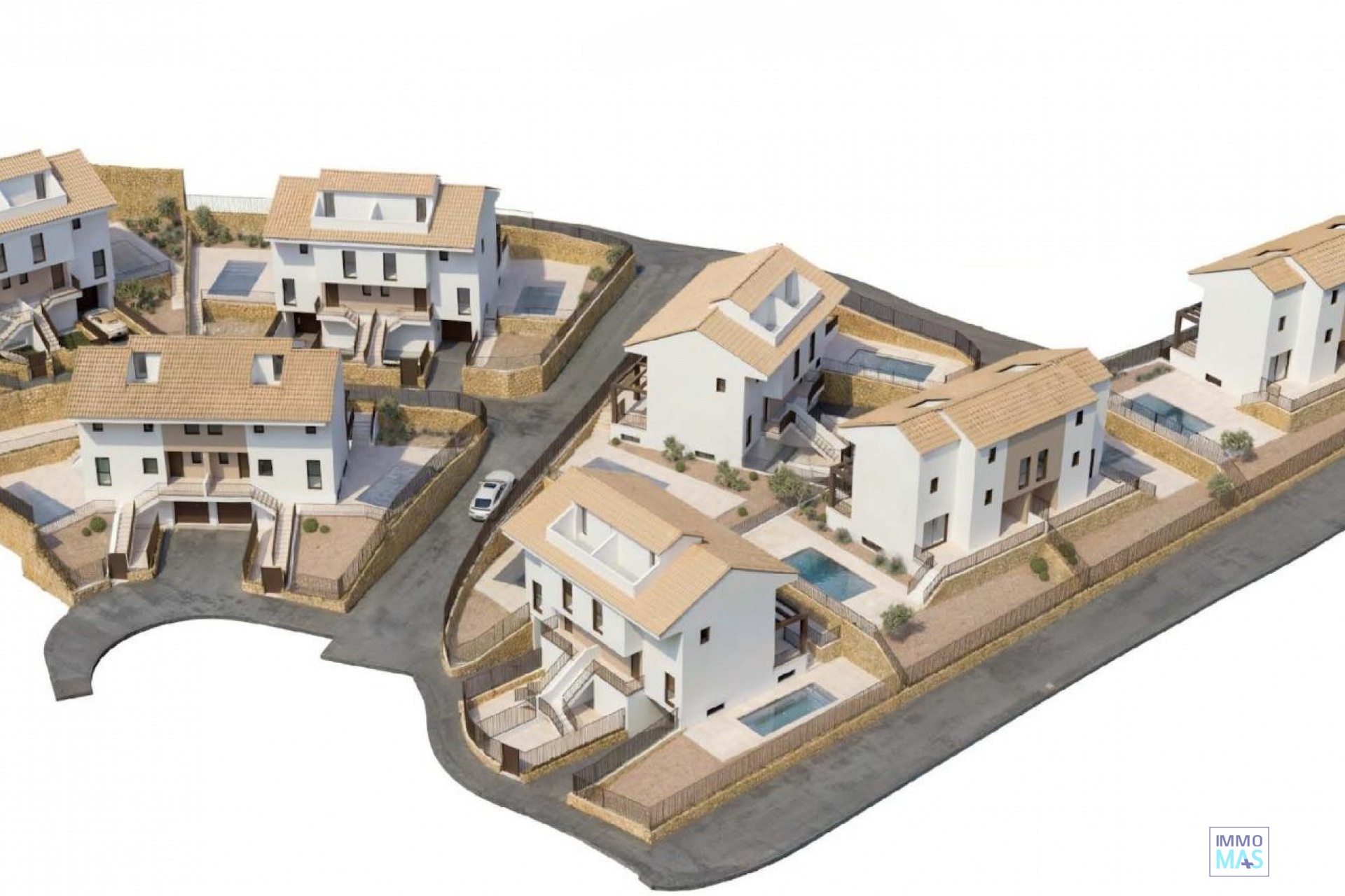 Villas jumelées exclusives de nouvelle construction avec piscine privée et garage à La Nucía Découvrez ce lotissement résidentiel haut de gamme composé de 14 villas jumelées de style méditerranéen récemment construites, alliant une architecture intemporelle à des intérieurs modernes. Situées à proximité du principal centre commercial de La Nucía, ces maisons offrent un mélange parfait de tranquillité, de sophistication et de commodité. Emplacement privilégié à La Nucía La Nucía est une ville très prisée de la région de Marina Baixa, dans la province d'Alicante, connue pour son environnement paisible, ses excellentes infrastructures et sa proximité avec la ville animée de Benidorm. Les résidents profitent d'un style de vie méditerranéen détendu avec des écoles internationales, des installations sportives haut de gamme, des hôpitaux de premier ordre, des restaurants gastronomiques, des terrains de golf et de belles plages à proximité. La ville est située à seulement 8 km de Benidorm, à 6 km des plages d'Altea et à 51 km au nord d'Alicante. Confort moderne et équipements haut de gamme Chaque villa est située sur un terrain privé et comprend un sous-sol avec garage, buanderie et débarras. Le rez-de-chaussée offre plusieurs terrasses, une piscine privée, un salon-salle à manger ouvert sur la cuisine et des toilettes pour invités. Au premier étage, vous trouverez 3 chambres et 2 salles de bains, dont une suite parentale avec salle de bains attenante. Le solarium sur le toit offre une vue panoramique dégagée. Les spécifications de haute qualité comprennent : Fenêtres en aluminium à rupture de pont thermique Porte d'entrée sécurisée Porte de garage motorisée Chauffage et climatisation aérothermiques avec système Airzone pour le contrôle individuel de chaque pièce Eau chaude sanitaire par système aérothermique Un style de vie tranquille et élégant À La Nucía, le luxe se définit par l'équilibre entre le temps, le confort et le bien-être. Du petit-déjeuner sur votre terrasse aux après-midis à la plage ou au golf, en passant par les soirées dans les restaurants gastronomiques, cet emplacement offre un style de vie privilégié au cœur de la Costa Blanca. Distances des principaux points d'intérêt : Centre commercial : 1 km Plage : 6 km Benidorm : 8 km Playa del Albir : 15 km Terra Mítica : 5 minutes École internationale Elians : 5 minutes Aéroport d'Alicante : 40 km La maison de vos rêves en Méditerranée Ces villas à La Nucía sont idéales pour ceux qui recherchent une résidence permanente, une résidence secondaire ou une opportunité d'investissement haut de gamme. Avec leur emplacement stratégique, leurs finitions de qualité supérieure et leur design moderne, elles représentent une opportunité exceptionnelle sur la Costa Blanca. Contactez-nous dès aujourd'hui pour organiser une visite et réserver votre place dans ce programme immobilier exclusif.