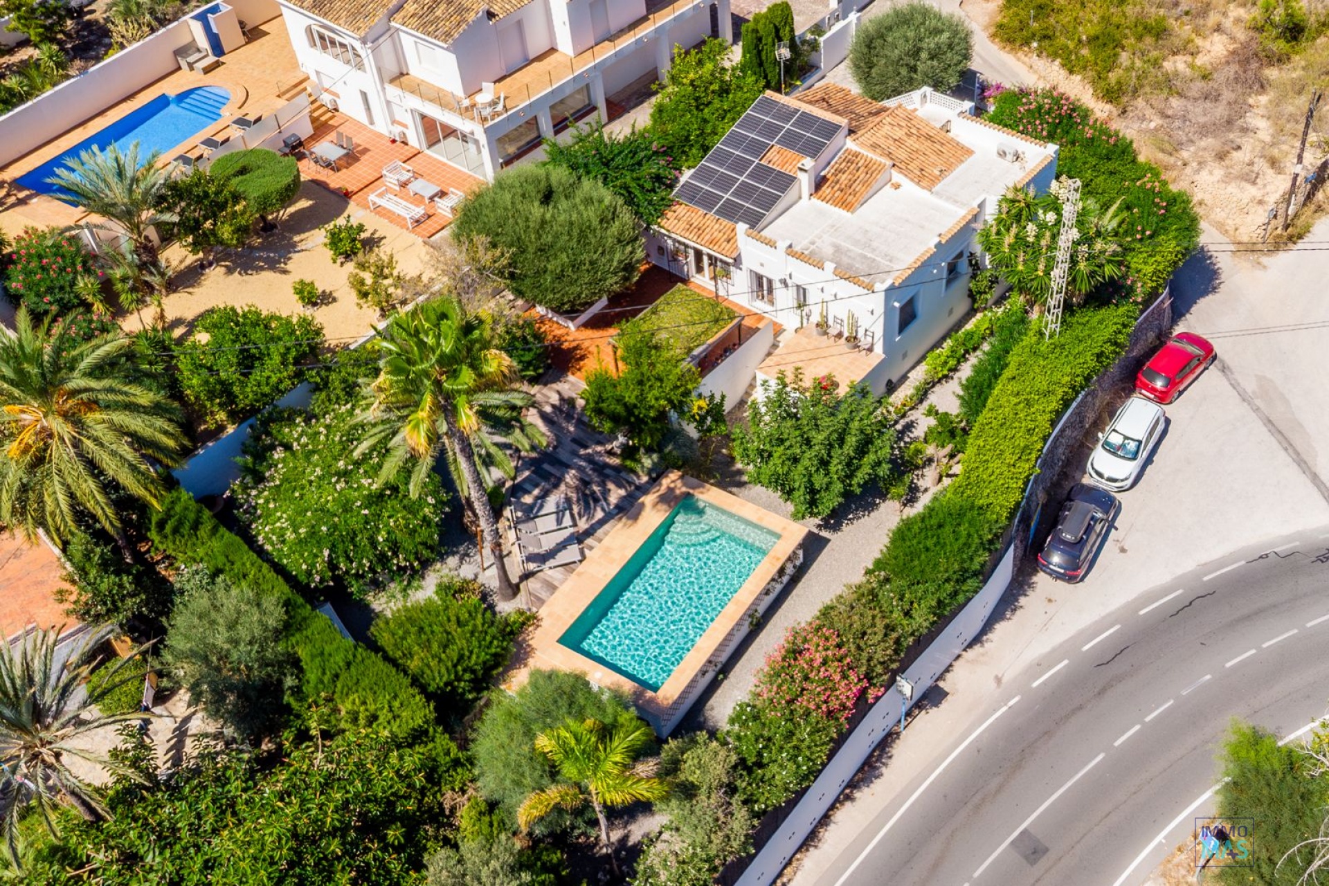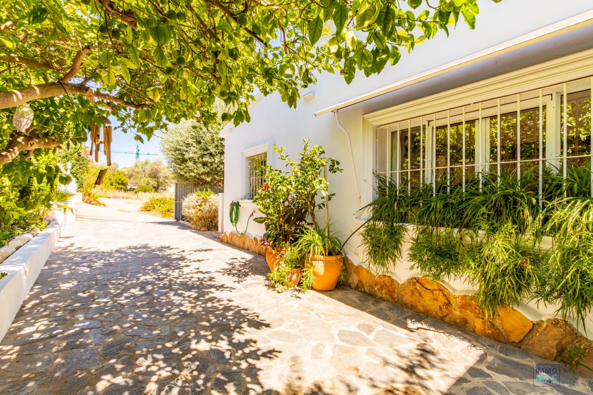 Située dans le quartier prisé de Baladrar, cette charmante villa de style méditerranéen avec des touches rustiques offre une vie calme et ensoleillée à seulement quelques pas d'une crique avec drapeau bleu. Répartie sur un seul niveau et sur un vaste terrain de 918 m², la propriété offre intimité et confort dans un environnement naturel privilégié. Le logement comprend 167 m² construits, 3 chambres doubles, 2 salles de bains complètes, un salon accueillant avec cheminée et une cuisine équipée au design chaleureux et fonctionnel. Les poutres en bois apparentes et les détails en pierre apportent du caractère et de l'authenticité à l'espace intérieur. L'extérieur est un véritable oasis : piscine privée entourée de végétation mature, espaces verts soigneusement entretenus, terrasses pour profiter de l'extérieur et zone de stationnement. Le système de panneaux solaires, la climatisation et l'orientation sud assurent efficacité et confort tout au long de l'année. Idéale tant comme résidence principale que comme maison de vacances. Parfaite pour les familles ou les personnes à mobilité réduite grâce à sa répartition sur un seul niveau. À quelques minutes des services, restaurants et plages paradisiaques de la Costa Blanca. Une occasion unique de vivre près de la mer, avec le charme du traditionnel et le confort du moderne.