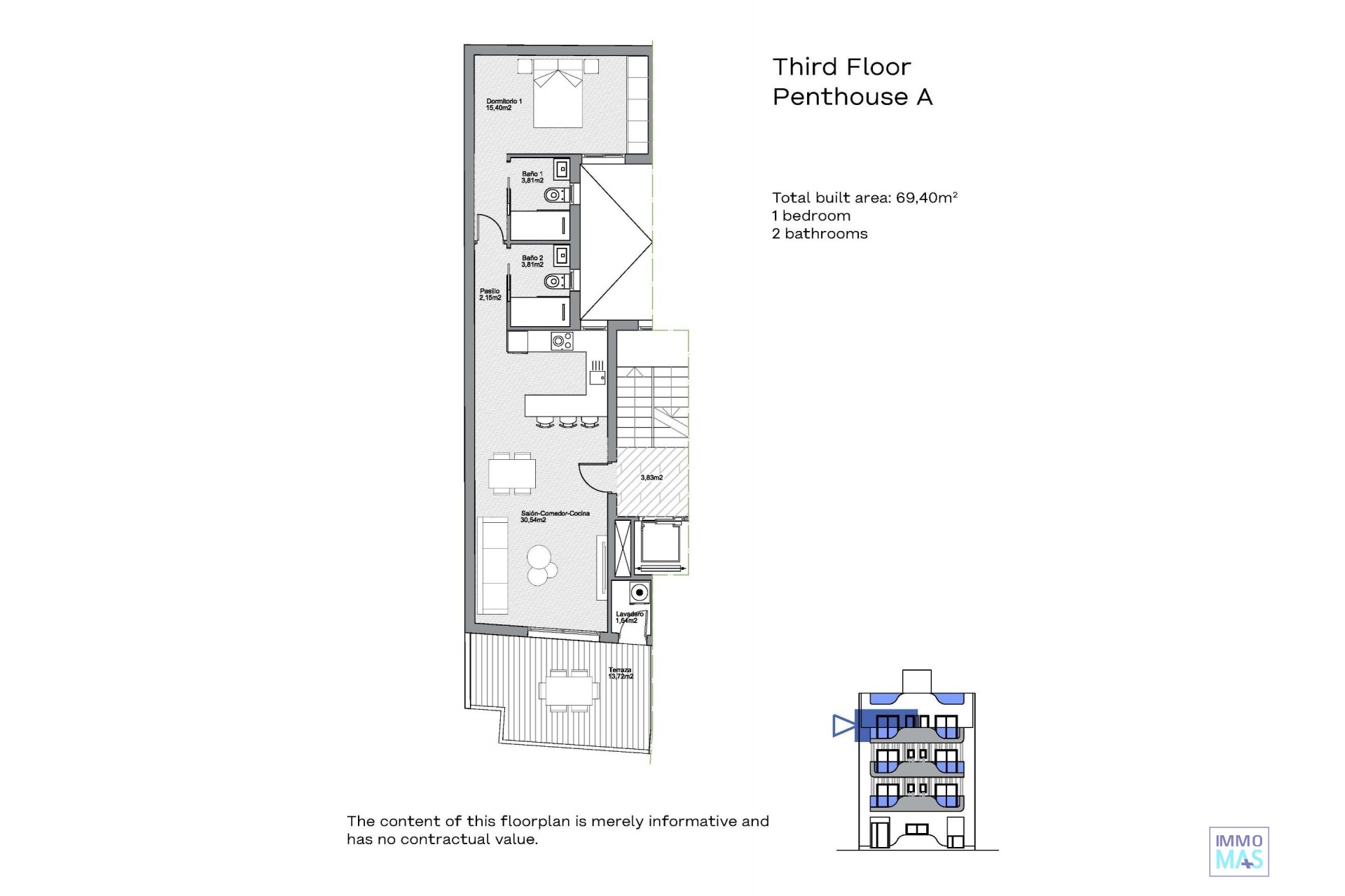 Appartements modernes neufs au cœur de Torrevieja, à seulement 600 m de la mer Programme immobilier boutique exclusif dans le centre de Torrevieja Découvrez un projet résidentiel exclusif de seulement 7 appartements modernes neufs, idéalement situés dans le centre animé de Torrevieja, à Alicante. À seulement 600 m du front de mer, ces logements élégants combinent parfaitement les avantages de la vie côtière et la commodité d'un style de vie urbain, offrant un accès facile aux commerces, restaurants et loisirs. Design contemporain et agencements intelligents Choisissez entre des appartements 1 ou 2 chambres, chacun avec 2 salles de bains (dont une en suite). Les agencements ouverts sont conçus pour maximiser l'espace et la lumière naturelle, garantissant à la fois confort et fonctionnalité. Des finitions haut de gamme telles que des portes d'entrée sécurisées, des armoires encastrées avec des finitions textiles, des menuiseries en aluminium à rupture thermique et des volets motorisés dans le salon garantissent durabilité et style. Les cuisines et les salles de bains sont équipées d'appareils de haute qualité, avec des parois de douche et des miroirs intégrés. Climatisation préinstallée pour un confort tout au long de l'année. Équipements exclusifs pour les résidents Ce bâtiment moderne a été conçu pour offrir confort et détente. Les résidents peuvent profiter : D'un solarium sur le toit avec piscine communautaire D'un parking pour vélos et scooters électriques au rez-de-chaussée D'un ascenseur donnant accès à tous les étages, y compris le toit Un mode de vie dynamique sur la Costa Blanca Torrevieja est une ville côtière animée, connue pour son climat ensoleillé avec plus de 300 jours de soleil par an, ses événements culturels et son mode de vie méditerranéen. Ses plages, son port de plaisance, ses promenades et ses installations de sports nautiques en font un endroit idéal pour vivre en permanence ou passer des vacances. Tous les services essentiels tels que les supermarchés, les cafés, les écoles et les centres de santé sont accessibles à pied. Excellent emplacement et connectivité Cet emplacement privilégié garantit un accès rapide aux destinations clés : Promenade : 600 m Playa del Acequión : 1 km Port de plaisance de Torrevieja : 600 m Centre commercial Zenia Boulevard : 8 km Parcours de golf : 7-10 km Aéroport international d'Alicante : 45 km Votre maison méditerranéenne vous attend Que vous recherchiez une maison de vacances, un investissement intelligent ou une résidence permanente, ces appartements modernes neufs à Torrevieja offrent une opportunité exceptionnelle dans l'un des quartiers les plus prisés de la Costa Blanca. Contactez-nous dès aujourd'hui pour organiser une visite et réserver votre nouvelle maison dans ce complexe exclusif du centre-ville.