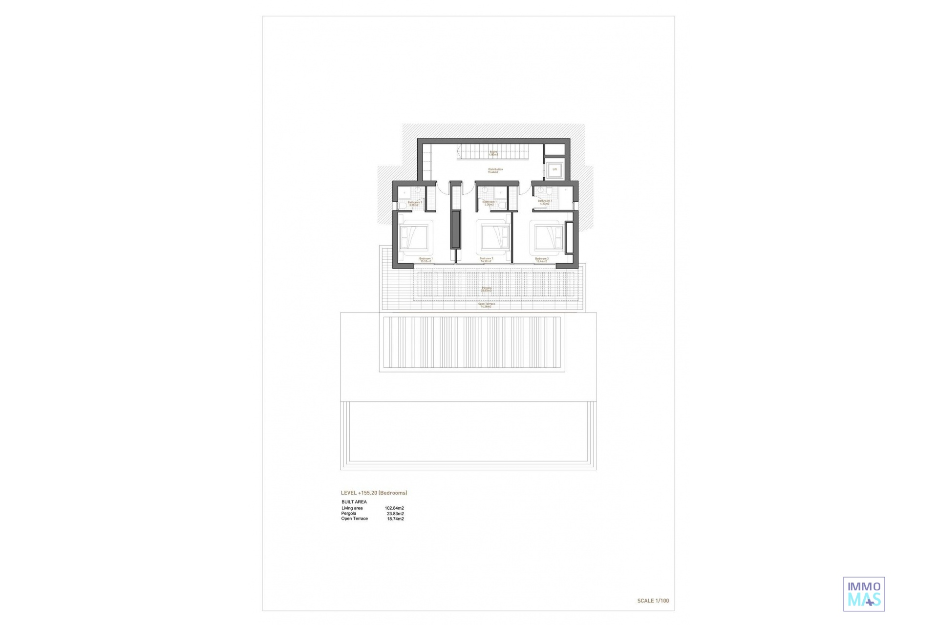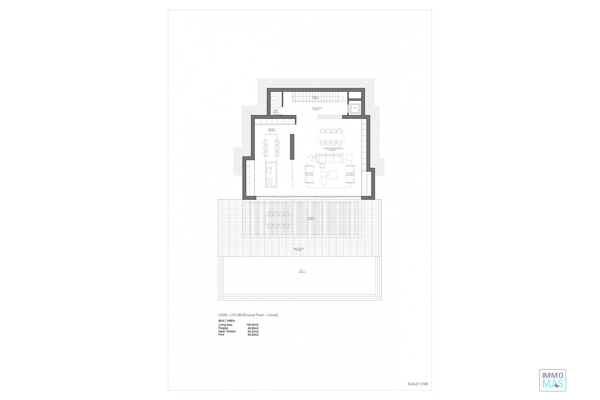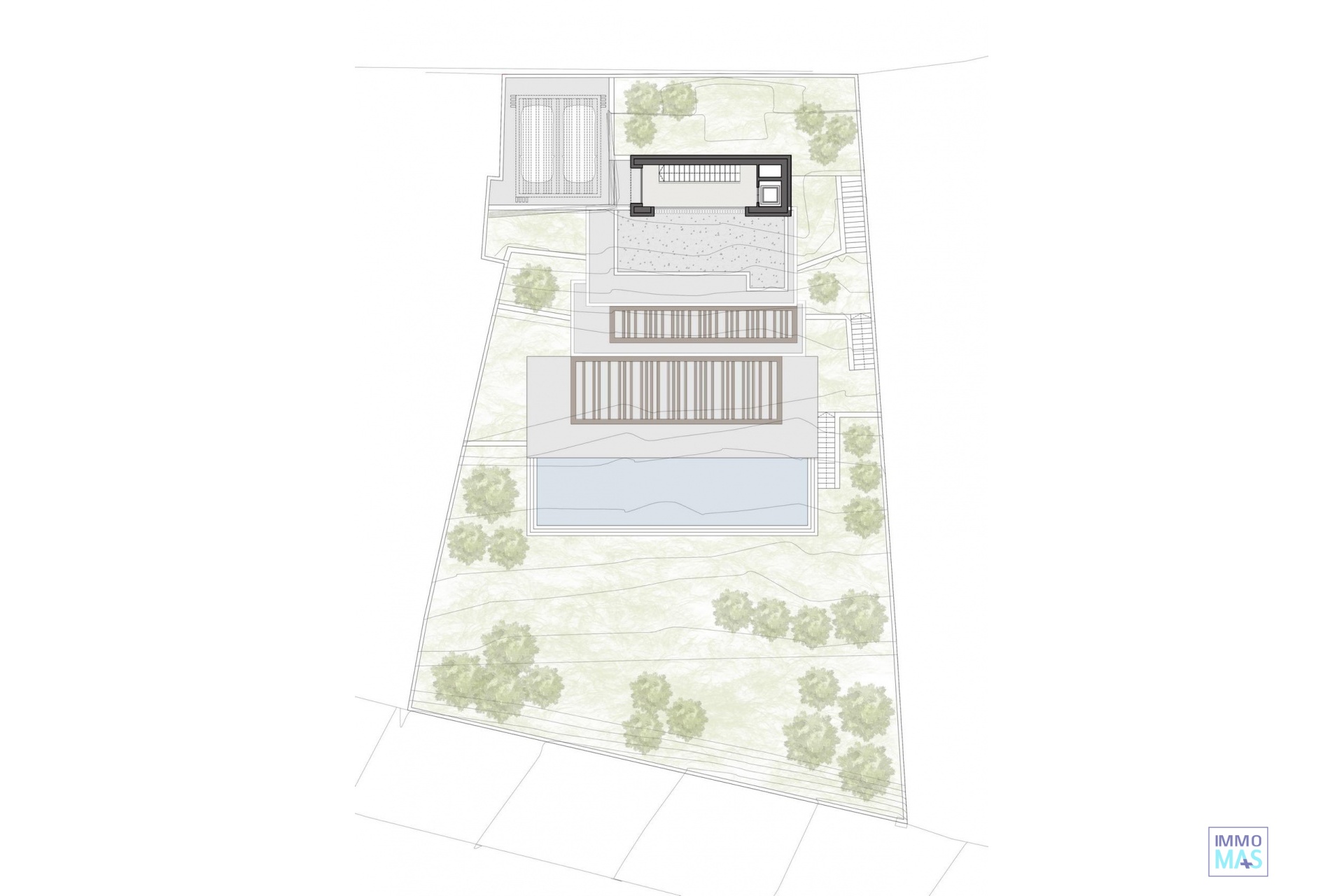 VILLA NEUVE A BENISSA Villa de construction neuve conçue pour dialoguer avec son environnement et s'y intégrer. Sa structure, basée sur des plateformes en béton et des pergolas en bois, glisse le long de la pente naturelle du terrain, créant les espaces de vie intérieurs. L'accès à la maison se fait par une cassette qui offre une vue panoramique sur les environs. En descendant au premier niveau, on trouve la chambre principale avec son propre dressing, sa salle de bains et sa terrasse. Une plateforme pour une chambre en suite avec toute l'intimité possible. En descendant encore, nous trouvons une autre plateforme avec le reste des pièces de la maison. Au total, trois chambres spacieuses avec salle de bains attenante et terrasse occupent cet espace. Le troisième niveau est occupé par la zone de jour. Deux espaces séparés, le salon-salle à manger et la cuisine, peuvent être réunis en ouvrant la porte coulissante qui les sépare. Un seul espace ouvert qui communique directement avec l'extérieur grâce à quatre panneaux coulissants. Un espace extérieur-intérieur fluide qui permet de profiter de la maison avec la brise et les vues sur l'extérieur. Enfin, au sous-sol, on trouve un grand espace de loisirs, une salle de jeux, une salle de télévision et un bar, ainsi qu'une salle de gymnastique. Les deux pièces sont inondées par la lumière qui entre par les ouvertures de la piscine et par laquelle la lumière entre, filtrée par la luminosité de l'eau. Une maison aux finitions exceptionnelles qui lui donnent de la chaleur et qui, en même temps, dialoguent avec la piscine. CONTRÔLE TECHNIQUE ET ASSURANCE DÉCENNALE -Assurance responsabilité civile décennale pour les dommages structurels. -Contrôle de la qualité de la construction par un laboratoire d'essai certifié. -Contrôle énergétique effectué par une société accréditée. -Contrôle de l'inspection technique (OCT) par une société accréditée. -Installation d'un système d'interphone vidéo en circuit fermé avec vue d'accès panoramique. EXTERIEUR -Piscine à débordement. -Mur d'enceinte extérieur en maçonnerie et clôture métallique. -Balustrades en verre encastrées sur les terrasses. -Eclairage LED encastré sur tout le périmètre de la maison. -Porte d'accès au garage principal motorisée de marque HORMANN ou équivalent. -Jardin paysager avec arbres et système d'irrigation. -Rampe d'accès et parking pavés. PLOMBERIE ET ÉLECTRICITÉ -Système domotique contrôlant les stores, l'éclairage de la piscine, l'éclairage extérieur et l'interphone vidéo. -Installation électrique JUNG. -Chauffage par le sol et climatisation avec thermostats indépendants dans chaque pièce, système AIRZONE. -Sanitaires, meubles, éviers et robinetterie en porcelaine blanche de ROCA, HANSGROHE et GEBERIT. -Pompe à chaleur air/eau à haut rendement avec bouches d'aération linéaires à cadre fin. Connexions téléphoniques et télévisuelles dans toutes les chambres, le salon, la cuisine et le sous-sol. -Interphone vidéo et système d'alarme avec détecteurs. CUISINE modèle proposé dans le projet : -Meubles de cuisine avec finition en chêne français. -Nouveau système de quincaillerie Darwin. Ferrures de tiroirs et d'armoires selon le modèle de l'architecte. -Plan de travail en grès cérame LIVING CERAMICS. Appareils électroménagers haut de gamme MIELE ou équivalent, entièrement intégrés, comprenant four, micro-ondes, cafetière, lave-vaisselle, réfrigérateur, congélateur et plaque de cuisson à induction avec hotte aspirante intégrée évacuant l'air vers l'extérieur. Benissa est une ville pittoresque située dans la province d'Alicante, connue pour sa riche histoire, ses paysages montagneux et son littoral accidenté. La vieille ville de Benissa est particulièrement charmante, avec ses rues pavées étroites, ses maisons blanches aux détails médiévaux et ses monuments historiques tels que l'église de la Purísima Xiqueta et la salle des contrats (Lonja de Contratación). L'architecture reflète son passé mauresque et médiéval, offrant aux visiteurs un voyage dans le temps. Outre son patrimoine culturel, Benissa possède un magnifique littoral d'environ 4 kilomètres, connu pour ses criques et ses plages aux eaux cristallines, comme Cala Advocat et Cala Fustera. Ces zones sont idéales pour la plongée, le snorkeling et d'autres activités nautiques. La ville est également réputée pour ses sentiers de randonnée et ses pistes cyclables qui traversent le littoral et l'intérieur des terres, permettant aux visiteurs de profiter de vues panoramiques sur la Méditerranée et les paysages ruraux. La cuisine de Benissa est un autre point fort, avec des plats traditionnels tels que l'arroz a banda, le poulpe séché et les saucisses locales.