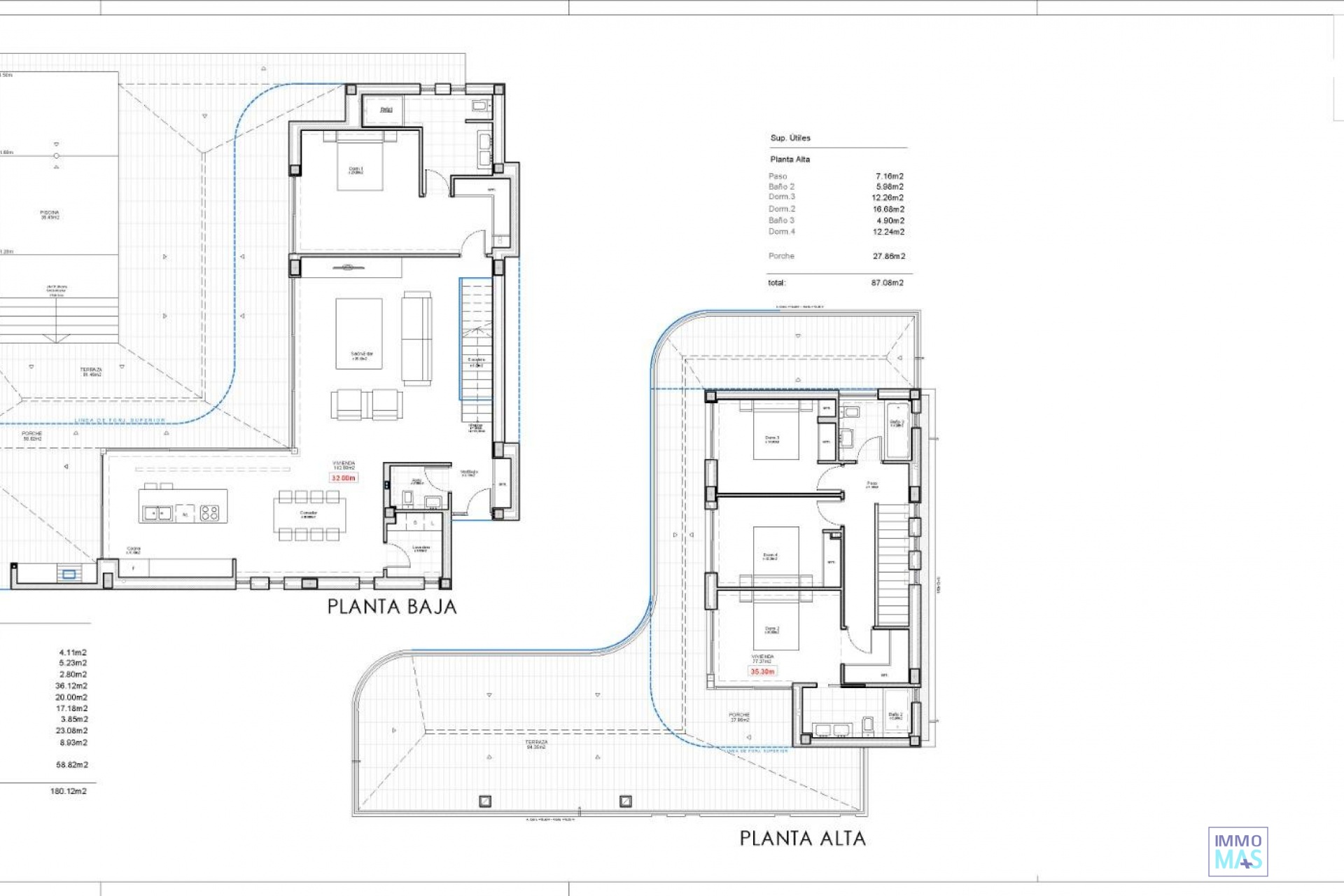 Maison moderne de luxe au cœur de Moraira-Teulada : une retraite méditerranéenne contemporaine Découvrez une superbe maison individuelle nichée dans la ville pittoresque de Moraira-Teulada, sur la Costa Blanca. Cette propriété moderne offre une combinaison exquise de luxe, de confort et de beauté naturelle, sur un terrain généreux qui offre à la fois de l'intimité et des vues panoramiques sur le paysage méditerranéen environnant. Moraira-Teulada est réputée pour son atmosphère côtière charmante, sa culture locale dynamique et son accès facile aux principales commodités. Excellence architecturale et vues panoramiques Cette maison architecturale est un chef-d'œuvre moderne qui s'intègre harmonieusement à l'environnement naturel. Construite en béton armé et agrémentée de détails en bois, la maison intègre de grands panneaux de verre pour maximiser la lumière naturelle et encadrer des vues à couper le souffle sur la mer et la verdure luxuriante. La maison est construite sur plusieurs terrasses, complétant la pente naturelle du terrain et offrant des vues dégagées sous tous les angles. Un aménagement intérieur spacieux pour une vie élégante Le rez-de-chaussée est le cœur de cette maison, avec un vaste espace de vie ouvert de 36 m² qui communique avec une vaste terrasse extérieure de 81 m². La cuisine haut de gamme et la salle à manger, d'une superficie de 20 m², sont équipées d'appareils électroménagers de pointe, ce qui les rend idéales pour la vie quotidienne et les réceptions. À l'étage, la suite parentale offre une intimité totale avec un dressing, une salle de bains attenante et un accès à une terrasse privée. Trois autres chambres, chacune avec sa propre salle de bains et sa terrasse, offrent un confort luxueux aux membres de la famille ou aux invités. Des espaces extérieurs exceptionnels et une piscine à débordement Les espaces extérieurs sont conçus pour la détente et le divertissement, avec notamment une vaste terrasse de 81 m², idéale pour les repas en plein air ou pour se prélasser sous le soleil méditerranéen. La terrasse mène à une superbe piscine à débordement qui se fond dans l'horizon, créant une oasis de paix. Le jardin soigneusement aménagé, rempli de plantes et d'arbres indigènes, renforce l'ambiance sereine de la maison et offre une intimité supplémentaire. Caractéristiques durables et économes en énergie Cette propriété est équipée de dispositifs durables, notamment d'une pompe à chaleur air-eau de pointe, d'un chauffage par le sol et d'un système de climatisation par canalisation. Des fenêtres et une isolation performantes garantissent l'efficacité énergétique et le confort tout au long de l'année. Emplacement privilégié à proximité des principales commodités Aéroport d'Alicante : 90 km Terrain de golf La Sella : 15 km Port de Moraira : 2 km Centres commerciaux : 5 km Découvrez le luxe moderne et la tranquillité dans cette maison exceptionnelle, parfaitement située dans la région recherchée de Moraira-Teulada.