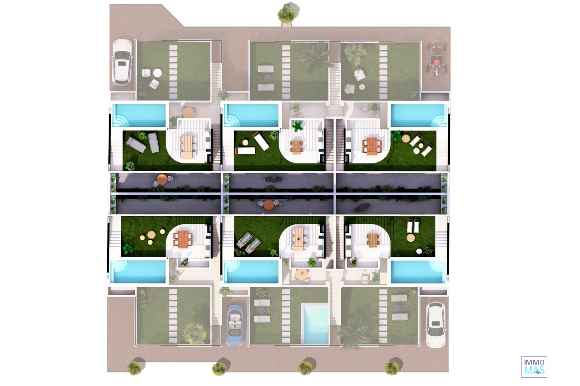 Bungalows neufs avec piscine privée à San Pedro del Pinatar Résidences boutique exclusives près de la plage Cette collection limitée de 12 bungalows neufs à San Pedro del Pinatar offre un équilibre parfait entre design moderne, style de vie méditerranéen et emplacement imbattable. À seulement 600 mètres de la plage et à quelques pas des commerces, restaurants et installations de loisirs, ces maisons sont idéales comme résidence secondaire, investissement ou résidence permanente sur la Costa Cálida. San Pedro del Pinatar est une charmante ville côtière située entre la Mar Menor et la mer Méditerranée, connue pour ses clubs de voile, ses bains de boue naturels à Lo Pagán et sa promenade animée. Très bien desservie, la ville se trouve à seulement 30 km de l'aéroport de Murcie-Corvera, à 75 km de l'aéroport d'Alicante et à quelques minutes en voiture du centre commercial Dos Mares (5 km) et de plusieurs terrains de golf de premier ordre situés entre 10 et 20 km. Choisissez entre les modèles avec jardin ou penthouse Ce projet boutique propose deux agencements soigneusement conçus : Bungalows au rez-de-chaussée : avec terrasse à l'avant, piscine privée, buanderie, patio à l'arrière et parking sur le terrain. Bungalows penthouse : avec grande terrasse, solarium privé sur le toit avec piscine, plus un espace de rangement au rez-de-chaussée et une place de parking privée. Les deux modèles comprennent 2 chambres et 2 salles de bains, la chambre principale disposant d'une salle de bains attenante. Le salon et la salle à manger ouverts communiquent directement avec une cuisine entièrement équipée, mise en valeur par de grandes portes coulissantes qui inondent l'intérieur de lumière naturelle. Des équipements de haute qualité pour le confort et le style Chaque maison de ce lotissement est construite avec des finitions haut de gamme pour garantir à la fois élégance et fonctionnalité. Les principales caractéristiques sont les suivantes : Cuisine entièrement équipée avec appareils électroménagers (plaque à induction, four, lave-vaisselle, réfrigérateur/congélateur) Climatisation gainable préinstallée Éclairage LED intérieur et extérieur Volets électriques pour plus de commodité Salles de bains équipées de meubles, miroirs et éclairage Un style de vie en bord de mer Vivre à San Pedro del Pinatar, c'est profiter d'une atmosphère côtière détendue avec toutes les commodités modernes à proximité. La marina, située à seulement 1 km, est parfaite pour les amateurs de voile, tandis que les eaux calmes de la Mar Menor offrent toute l'année la possibilité de se baigner et de pratiquer des sports nautiques. Réservez le bungalow de vos rêves sur la Costa Cálida Avec une livraison prévue pour mi-2027, c'est le moment idéal pour acquérir votre nouvelle maison en bord de mer. Contactez-nous dès aujourd'hui pour obtenir plus d'informations ou organiser une visite, et commencez à vivre le style de vie méditerranéen que vous méritez.
