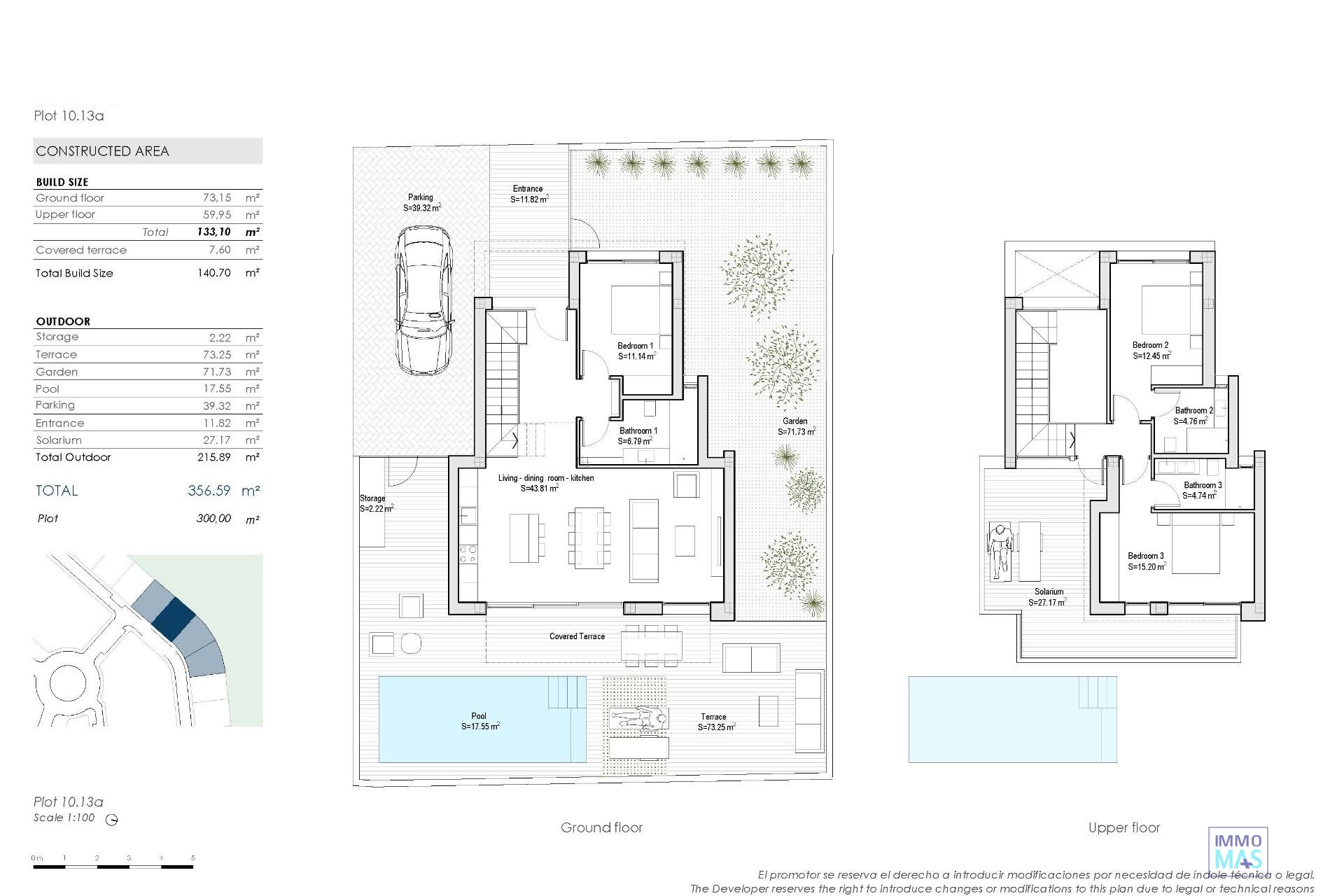 Villas neuves en première ligne de Roda Golf avec piscine privée Une vie exclusive au bord du golf sur la Costa Cálida Ces villas modernes en première ligne à Roda Golf (Murcie) offrent le mélange parfait entre luxe, confort et style de vie méditerranéen. Situé à seulement 3 km des plages dorées de la Mar Menor, ce projet résidentiel est idéal pour les amateurs de golf, les passionnés de sports nautiques et ceux qui recherchent une maison paisible mais bien desservie sur la Costa Cálida. Le complexe est entouré de services, de restaurants, de commerces et d'installations sportives, garantissant ainsi un confort optimal au quotidien. Villas spacieuses avec piscines privées Chaque villa est soigneusement conçue sur deux niveaux, avec une surface totale de 140 m². L'agencement comprend : 3 chambres (dont 2 avec salle de bains attenante) 3 salles de bains entièrement équipées Salon lumineux avec cuisine ouverte Chambre au rez-de-chaussée pour plus de commodité Deux chambres au premier étage avec accès direct à la terrasse non couverte Profitez de la vie en plein air avec une piscine privée, une terrasse spacieuse au rez-de-chaussée et une terrasse ensoleillée au premier étage offrant une vue imprenable sur le golf et un ensoleillement toute la journée. Chaque propriété comprend également une place de parking privée sur le terrain et un grand débarras extérieur. Caractéristiques de haute qualité Ces maisons sont construites selon les normes les plus élevées et comprennent : Chauffage au sol dans les salles de bains Volets motorisés en aluminium dans toutes les chambres Salles de bains entièrement équipées avec meubles, miroirs, éclairage et parois de douche en verre Cuisines modernes avec appareils électroménagers inclus Pré-installation de la climatisation par conduits dans le salon et les chambres Panneaux solaires avec onduleur pour une meilleure efficacité énergétique Emplacement privilégié à Roda Golf Situées dans le prestigieux Roda Golf & Beach Resort, ces villas sont entourées de fairways luxuriants et de paysages méditerranéens. Distances vers les principaux points d'intérêt : Plages de Mar Menor : 3 km Centre commercial Dos Mares : 5 km Marina de Lo Pagán : 6 km Clubhouse de Roda Golf : accessible à pied Aéroport international de Murcie (Corvera) : 35 km Aéroport d'Alicante : 85 km Ville de Carthagène : 30 km Vivez le style de vie méditerranéen Que ce soit comme résidence permanente, comme lieu de villégiature ou comme investissement locatif, ces villas offrent la combinaison parfaite entre élégance, fonctionnalité et emplacement. Contactez-nous dès aujourd'hui pour planifier une visite et réserver votre villa en première ligne à Roda Golf. La maison de vos rêves sur la Costa Cálida vous attend !