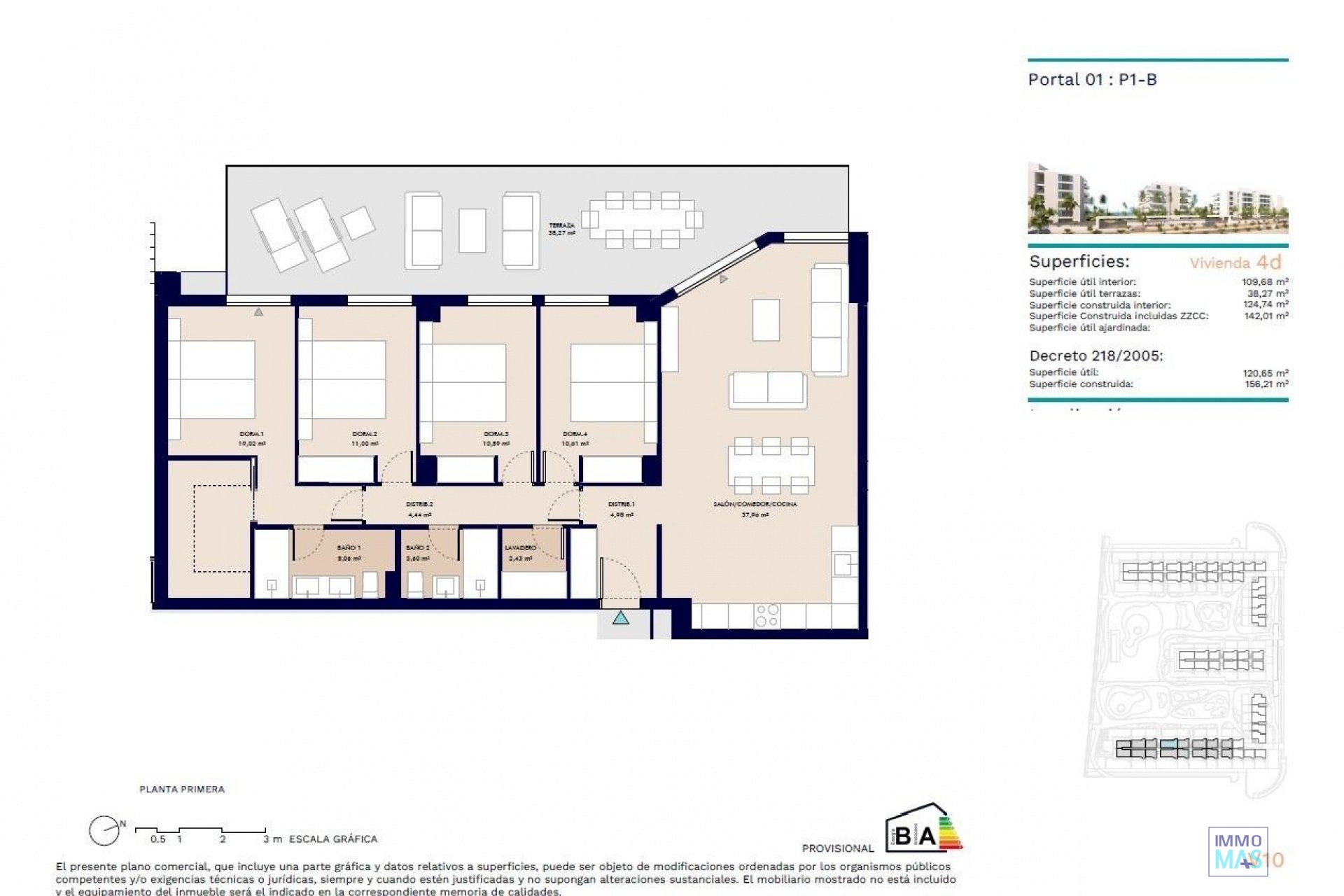 NOUVEAU COMPLEXE RÉSIDENTIEL À ALMERIMAR Nouvelle construction d'un développement exclusif d'appartements avec 2 et 3 chambres à coucher adaptés à vos besoins dans une zone privilégiée d'Almerimar. Les appartements modernes ont des vues incroyables sur la mer, des finitions de haute qualité, de grandes terrasses et des espaces lumineux, ainsi que des zones communes extraordinaires qui ont un service de conciergerie et de sécurité, des piscines de différentes tailles, une zone de solarium, une salle de gym, un garage, une salle de stockage et de vastes zones de jardin d'où vous pouvez entendre le bruit des vagues de la mer. Complexe résidentiel de nouvelle construction avec des vues panoramiques impressionnantes sur la Méditerranée, situé à côté de la promenade qui longe la plage d'Almerimar, où vous pouvez vous détendre. Le complexe est très proche de tous les services dont vous avez besoin au quotidien, tels que les supermarchés, les banques, les écoles exclusives et bien plus encore. De plus, si vous souhaitez pratiquer votre swing sans trop vous éloigner de la maison, les 27 trous du terrain de golf d'Almerimar se trouvent à seulement 3 minutes. Si vous préférez faire de la voile, le port de plaisance est à votre disposition à seulement 5 minutes en voiture. Le complexe offre également une connexion en moins de 2 heures avec Malaga, Sierra Nevada et les aéroports de Malaga, Almeria et Grenade.