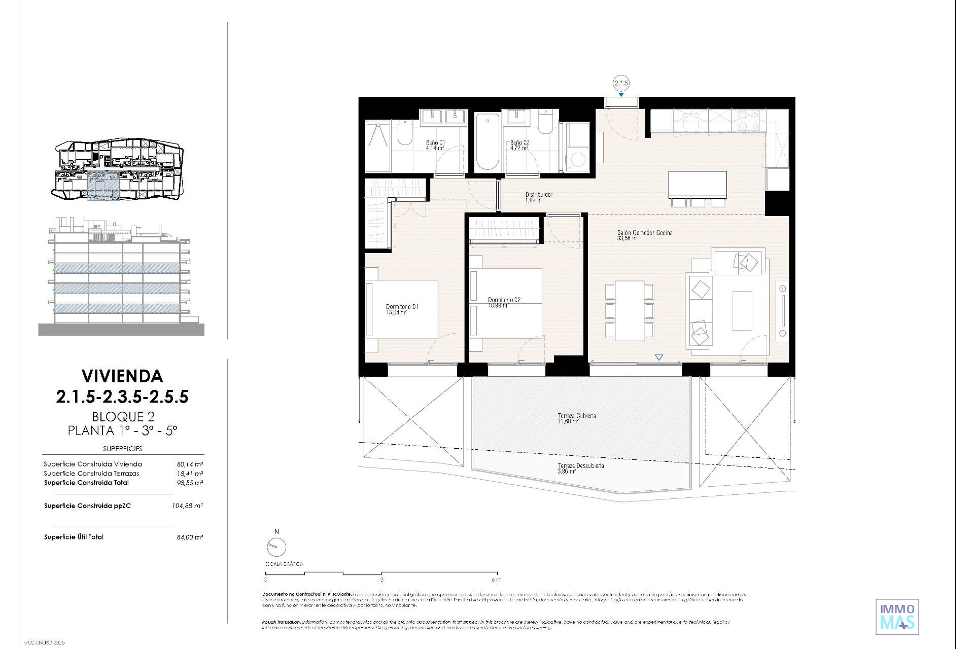Complexe de luxe à Villajoyosa - Un paradis en bord de mer Découvrez un complexe résidentiel unique à Playa del Torres Situé à moins de 5 minutes à pied de la sereine Playa del Torres à Villajoyosa, ce nouveau complexe exclusif propose 164 appartements et penthouses modernes de 1 à 3 chambres. Conçue pour offrir un mode de vie optimal, la communauté allie luxe, détente et équipements inégalés dans un cadre méditerranéen paisible. Des équipements exceptionnels pour tous les résidents Le cœur de ce projet est le Roof Top, situé sur le toit du Block 2. Cet espace bien conçu comprend une superbe piscine avec vue panoramique, des aires de détente, une zone de barbecue, un espace polyvalent et un belvédère, parfaits pour se retrouver ou se détendre. Un salon intérieur, idéal pour les repas gastronomiques entre amis ou comme espace de coworking. Pour les amateurs d'eau, le complexe comprend Des piscines de style tropical avec accès à la plage. Une piscine chauffée, une piscine pour enfants et un jacuzzi chauffé. Les adeptes du fitness peuvent profiter : Des salles de sport intérieures et extérieures, avec un circuit de gymnastique suédoise. Un putting green et un mini-golf pour les activités de loisirs. Des logements modernes dotés d'équipements haut de gamme Chaque appartement est équipé d'une cuisine entièrement équipée avec des appareils électroménagers de haute qualité : Une cuisine entièrement équipée avec des appareils de haute qualité, notamment un réfrigérateur, un four à micro-ondes, un four, un lave-vaisselle et un lave-linge/sèche-linge intégré. Systèmes aérothermiques à haut rendement énergétique pour l'eau chaude et la climatisation. Chauffage par rayonnement dans les salles de bains. Fenêtres en PVC de haute qualité avec isolation thermique et double vitrage. Un parking privé et un espace de stockage pour plus de commodité. Le bâtiment bénéficie d'un classement énergétique A, ce qui garantit une efficacité et une durabilité maximales. Un emplacement parfait à Villajoyosa Niché à Playa del Torres, ce complexe offre une retraite paisible entourée de beauté naturelle. Les eaux cristallines et les teintes turquoise de la plage constituent un cadre idyllique pour la détente. Le complexe est idéalement situé : 2 km du charmant centre-ville de Villajoyosa. 10 km de Benidorm, avec sa vie nocturne animée et ses boutiques. 30 minutes en voiture de l'aéroport d'Alicante. Villajoyosa, connue pour ses maisons colorées et sa riche histoire, reste un authentique joyau méditerranéen. Récemment reconnue comme la « Meilleure destination secrète d'Europe 2024 » par European Best Destinations, cette ville allie tradition, beauté naturelle et tranquillité. La maison de vos rêves vous attend à Playa del Torres Découvrez le meilleur de la vie moderne dans un paradis naturel. Avec sa situation privilégiée, ses équipements luxueux et son design contemporain, ce projet est parfait pour ceux qui recherchent une maison au bord de la mer. Contactez-nous dès aujourd'hui pour planifier une visite et faire de cette superbe propriété la vôtre !