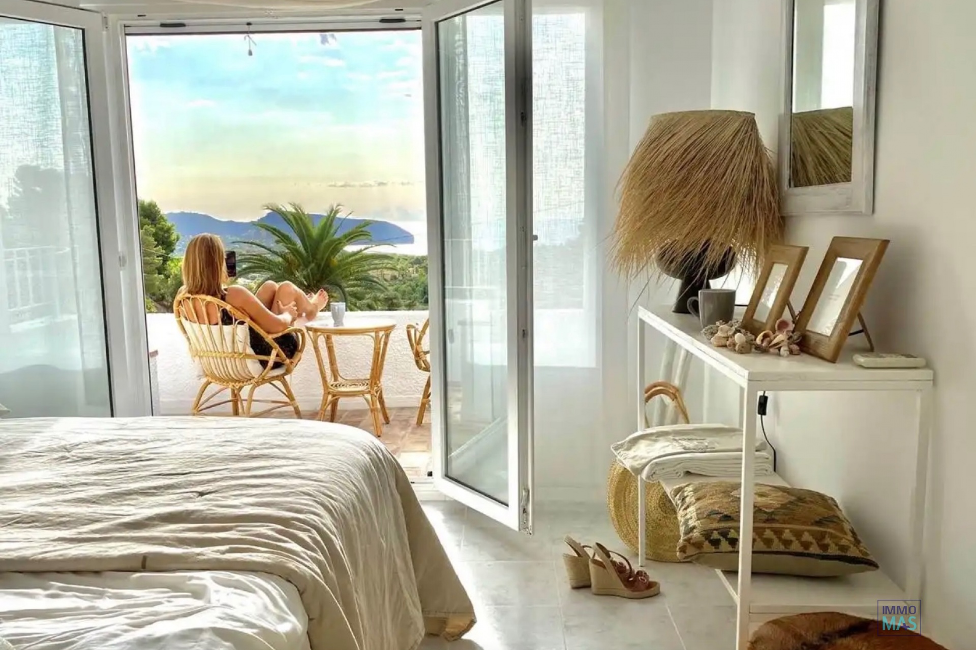 Découvrez cette villa unique de style Ibiza, située sur une magnifique colline entre la mer et les montagnes. Avec un terrain de près de 3 000 m², cette villa de rêve offre plus de 450 m² de terrasses ensoleillées et ombragées, parfaites pour profiter du style de vie méditerranéen. La piscine privée chauffée avec terrasse clôturée et chaises longues confortables invite à la détente, tandis que le coin salon élégant est un endroit idéal pour se retrouver.
