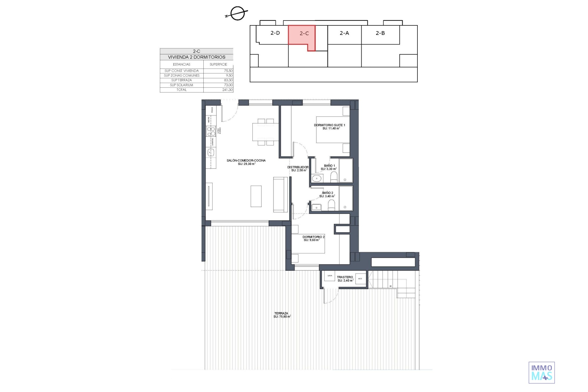 NOUVELLE CONSTRUCTION RÉSIDENTIELLE À BENIJOFAR Nouvelle construction résidentielle avec piscine commune sur le toit, située au centre du charmant village de Benijofar. Vous pouvez choisir des appartements modernes avec terrasses ou des penthouses avec solarium. Propriétés modernes avec cuisine ouverte et salon, 2 et 3 chambres à coucher, 2 salles de bains, terrasses. Un parking souterrain est disponible en option moyennant un supplément. Benijofar est un joli village avec une charmante église et une place attrayante située à l'intérieur des terres sur la Costa Blanca sud, à proximité des stations touristiques de Guardamar del Segura et Torrevieja. Benijofar est également un lieu de séjour populaire pour les vacances d'été, car il est suffisamment proche des stations balnéaires, tout en étant assez calme pour pouvoir s'en éloigner. Il y a plusieurs terrains de golf à proximité, ainsi que des parcs aquatiques à Rojales et Torrevieja. Les plages les plus proches et les plus belles de Benijofar se trouvent à environ quinze minutes en voiture et font partie des meilleures plages du sud de la Costa Blanca, à Guardamar del Segura et Torrevieja. Des bus partent régulièrement de Benijofar pour Guardamar del Segura et Torrevieja, ce qui permet d'accéder facilement aux plages. L'aéroport d'Alicante se trouve à 20 minutes en voiture et propose des vols réguliers dans toute l'Europe.