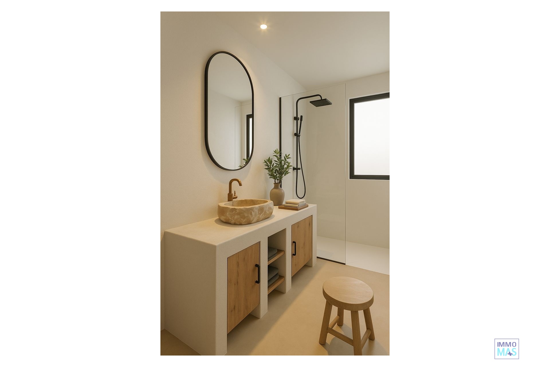 Découvrez l'Élégance de cette Villa Moderne à PedreguerSitué dans la charmante ville de Pedreguer, dans la province de Alicante, ce projet de villa moderne est le refuge parfait pour ceux qui recherchent un mode de vie contemporain sans renoncer à la chaleur d'un foyer. Son design ibicenco se distingue par sa simplicité élégante, en faisant un joyau au cœur de la Costa Blanca. Espaces Spacieux et FlexiblesAvec une surface construite de 176,63 m² et un terrain de 1150 m², cette villa offre un vaste espace où la lumière naturelle flâne avec clarté. Profitez d'une ambiance chaleureuse où chaque coin est pensé pour allier modernité et confort. La disposition extérieure met encore plus en valeur la beauté des environs, permettant aux vues sur le paysage méditerranéen de devenir une partie de votre quotidien. Confort dans Chaque DétailLa villa dispose de 3 chambres confortables et de 2 salles de bains, chacune conçue dans un style pratique et fonctionnel. La cuisine, équipée d'un impressionnant îlot central, se transforme en l'endroit idéal pour partager des moments inoubliables avec la famille et les amis. De plus, le système de climatisation par conduits et le chauffage par conduits garantissent une atmosphère agréable tout au long de l'année, transformant cette propriété en un véritable foyer. Un Oasis en Plein AirIl est difficile de résister à l'appel de la nature lorsque l'on dispose d'une magnifique piscine, accompagnée d'une terrasse ouverte et d'une terrasse couverte. Ces espaces extérieurs sont parfaits pour profiter du soleil, organiser des rassemblements en plein air ou simplement se détendre en contemplant la beauté des environs. La tranquillité et l'intimité de la propriété invitent à se déconnecter et à profiter de chaque instant. Commodités et Style de VieLe parking inclus offre un accès pratique et sécurisé, facilitant votre quotidien. L'emplacement de la villa à Pedreguer vous donne accès à une variété de services sans sacrifier la tranquillité que procure la vie dans un environnement paisible. La proximité des plages de la Costa Blanca, ainsi que de divers sentiers naturels, garantit que chaque jour peut être rempli de nouvelles expériences. La combinaison d'espaces bien agencés, la qualité des finitions et l'ambiance détendue font de cette villa moderne une option inégalable. Si vous recherchez une propriété qui reflète un style de vie contemporain et élégant, cet endroit pourrait être votre prochaine résidence.