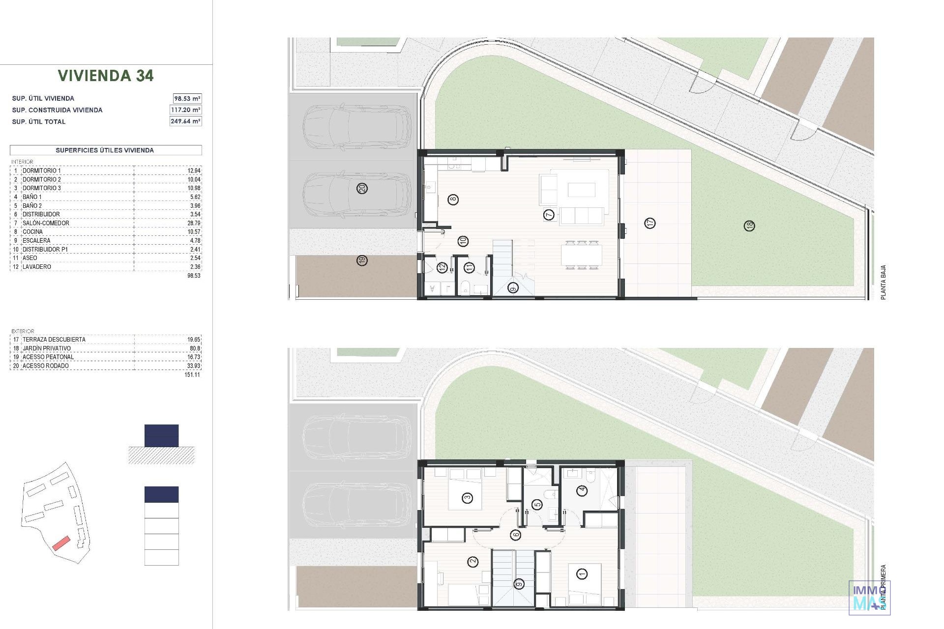 Maisons de ville modernes de 3 chambres à vendre à Balcon de Finestrat, Costa Blanca Maisons contemporaines dans un emplacement méditerranéen privilégié Ce nouveau complexe résidentiel de maisons de ville comprenant 3 chambres, 2 salles de bains et 1 WC invités est situé à Balcon de Finestrat, un quartier paisible et bien entretenu de la Costa Blanca. À quelques minutes de Benidorm et à proximité du terrain de golf Puig Campana, cet emplacement offre un équilibre idéal entre nature, mer et services essentiels. La région est réputée pour ses magnifiques paysages montagneux, son accès facile aux zones de loisirs et son climat agréable tout au long de l'année. Design moderne avec des intérieurs lumineux et fonctionnels Les maisons de ville présentent un agencement moderne et ouvert. Le rez-de-chaussée comprend une cuisine spacieuse, un coin repas et un salon baignés de lumière naturelle, ainsi que des toilettes pour invités. À l'étage, les chambres doubles et les salles de bains entièrement équipées offrent confort et intimité à toute la famille. Certaines unités comprennent un sous-sol de 50 m² avec une pré-installation pour une salle de bains supplémentaire et un espace ouvert que les propriétaires peuvent personnaliser, avec un accès direct au jardin. Des espaces extérieurs conçus pour la vie méditerranéenne Chaque propriété dispose de terrasses spacieuses, idéales pour profiter de la vue sur la nature environnante et du climat ensoleillé de la Costa Blanca. La communauté dispose d'une piscine, de jardins paysagers et d'espaces de détente en plein air, créant un environnement paisible pour les résidents. Finitions de haute qualité et efficacité énergétique Les maisons comprennent des salles de bains entièrement équipées avec meubles, miroirs et parois de douche, une installation complète de climatisation, des panneaux solaires pour l'alimentation électrique, une porte d'entrée blindée et un certificat énergétique A. Les sous-sols sont pré-équipés pour l'installation de climatiseurs split. Excellente connectivité et services à proximité Les plages de sable de Benidorm et Villajoyosa sont à seulement 4 km, et le centre commercial La Marina, qui propose des restaurants, des boutiques et des divertissements, est à quelques minutes en voiture. Vous trouverez à proximité des écoles internationales, des supermarchés et toutes les commodités quotidiennes. Distances utiles : aéroport d'Alicante à 40 km, parcours de golf Puig Campana à 1 km, plages de Benidorm à 4 km, port de Villajoyosa à 9 km. Un style de vie confortable et pratique Chaque propriété comprend une ou deux places de parking extérieures privées, garantissant praticité et confort tout au long de l'année. Contactez-nous dès aujourd'hui pour organiser une visite et acquérir votre nouvelle maison à Balcon de Finestrat.