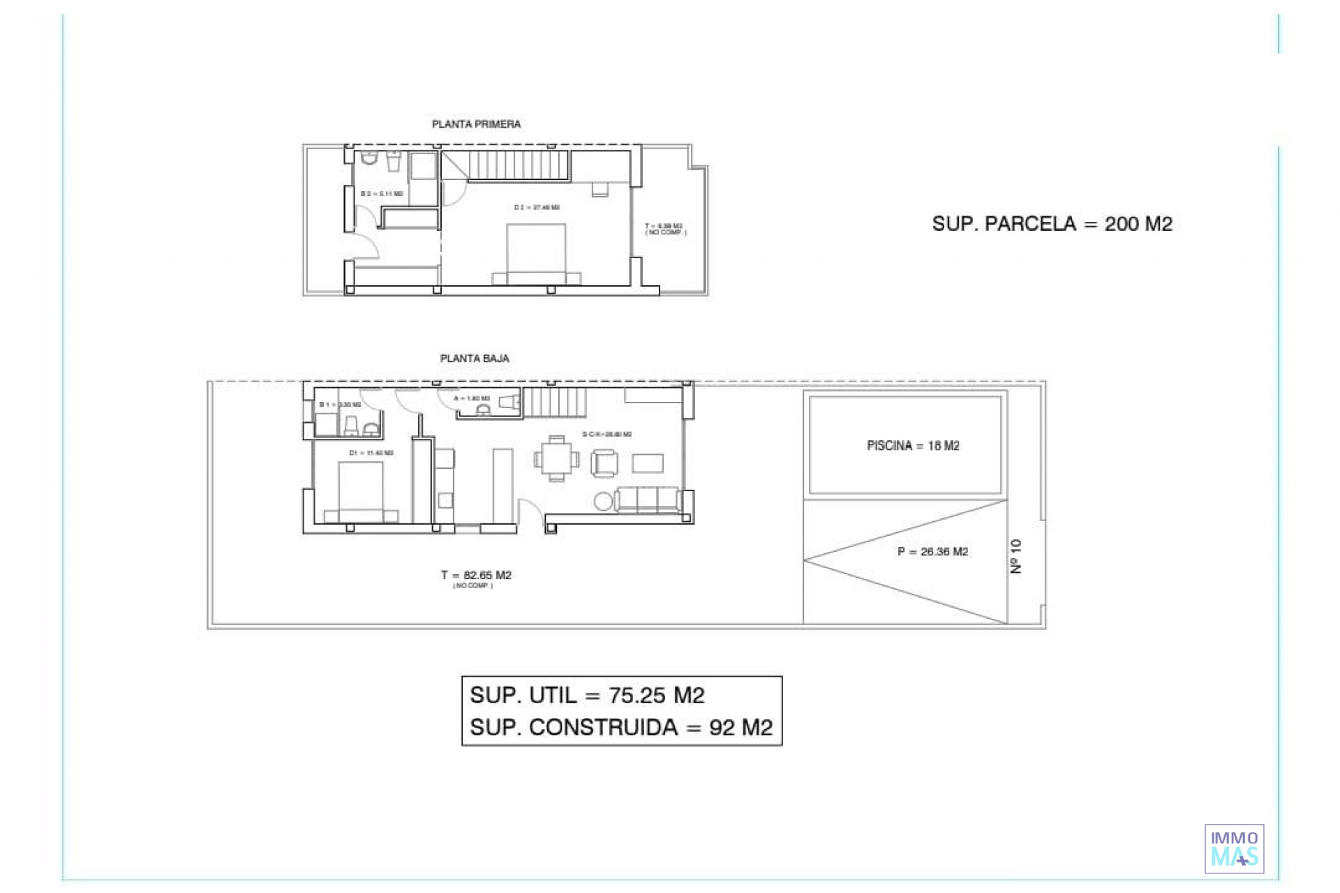 VILLA JUMELÉE DE CONSTRUCTION NEUVE À DAYA NUEVA Nouvelle villa jumelée de 2 étages à Daya Nueva. Villa neuve avec 2 chambres, 2 salles de bain, cuisine ouverte sur le salon, placards, jardin privé avec piscine et place de parking. La propriété est située à quelques minutes à pied du centre du village avec des restaurants, des bars et des magasins. Daya Nueva est un petit village idyllique entouré d'une campagne pittoresque, c'est un village rural entouré d'orangeraies et de citronniers. Il dispose d'une mairie, d'une piscine extérieure réservée à l'été, de quelques bars et restaurants et d'un certain nombre de parcs disséminés dans les zones d'urbanisation à la périphérie du village. La plage de Guardarmar est à 10 minutes en voiture et l'aéroport d'Alicante à 25 minutes. Les terrains de golf de La Marquesa à Ciudad Quesada et de La Finca à Algorfa sont tous deux à 10 minutes en voiture. 421