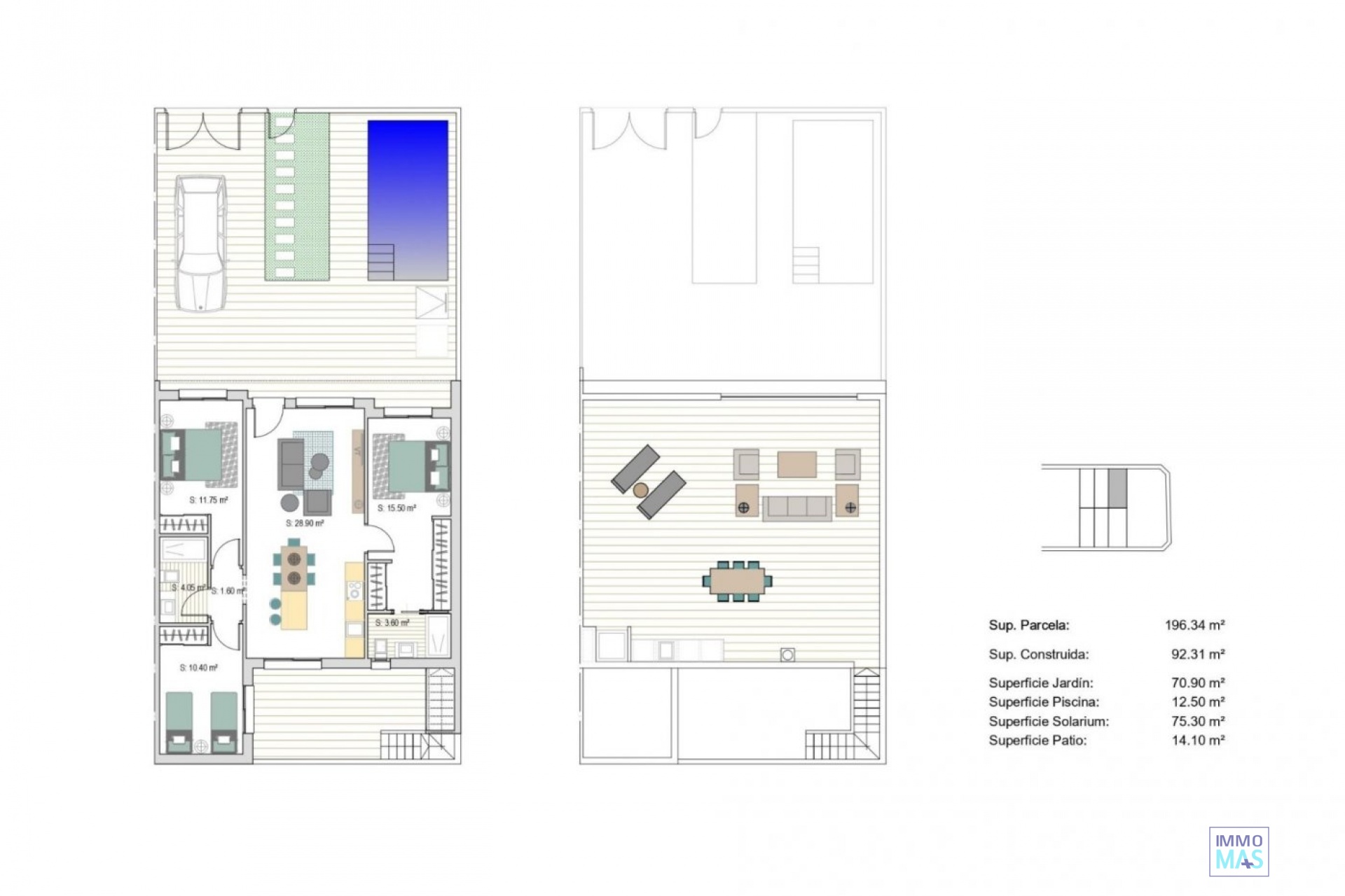 MAISONS DE VILLE NOUVELLEMENT CONSTRUITES À SAN JAVIER Nouveau complexe de luxe de 24 villas de plain-pied ou sur 2 étages avec piscine privée, terrasse et solarium avec cuisine d'été qui vous permet de profiter de toutes les heures de soleil, tous les jours de l'année. Chaque villa dispose de 2 ou 3 chambres et 2 salles de bain équipées sur un niveau ou de 3 chambres et 3 salles de bain équipées sur deux niveaux. Conçue dans un style contemporain et un concept ouvert, elle comprend une cuisine entièrement équipée et un salon-salle à manger. Le projet est situé à San Javier (Murcia), près de la plage, entouré de services, de parcs, d'installations sportives et de plusieurs terrains de golf. La propriété répondra aux normes les plus élevées et sera équipée de : Piscine privée avec douche. Cuisine entièrement meublée et équipée avec four, micro-ondes, réfrigérateur, lave-vaisselle intégré, plaque de cuisson et hotte aspirante. Éclairage : à l'intérieur de la propriété (salle à manger, cuisine, couloirs et salles de bains) ainsi que dans les espaces extérieurs. Armoires doublées avec tiroirs. Salles de bains entièrement équipées avec toilettes, meuble-lavabo, miroir et douche avec panneaux de séparation. Pré-installation de la climatisation par conduits. Solarium avec cuisine d'été. Place de parking sur le terrain. San Javier est proche de toutes les commodités avec un accès facile à la plage, aux sports nautiques, aux magasins et au réseau de transport. Ici, vous pouvez profiter de toutes les installations que San Javier a à offrir, comme les magasins locaux, les bars et les restaurants, tout en étant proche des centres commerciaux, de l'aéroport de Murcia et de tous les beaux endroits à trouver le long de la Mar Menor. L'aéroport de Corvera/Murcia est à 30 minutes et celui d'Alicante à 45 minutes. 421
