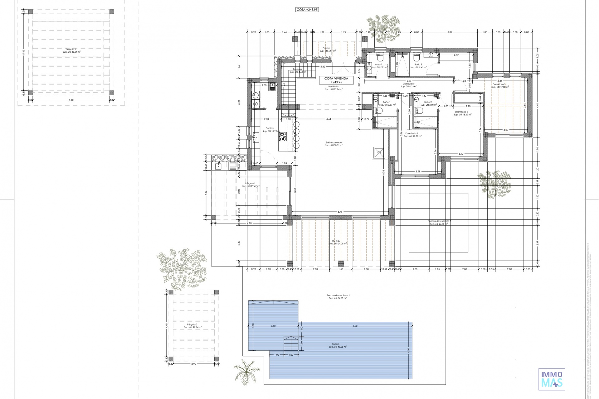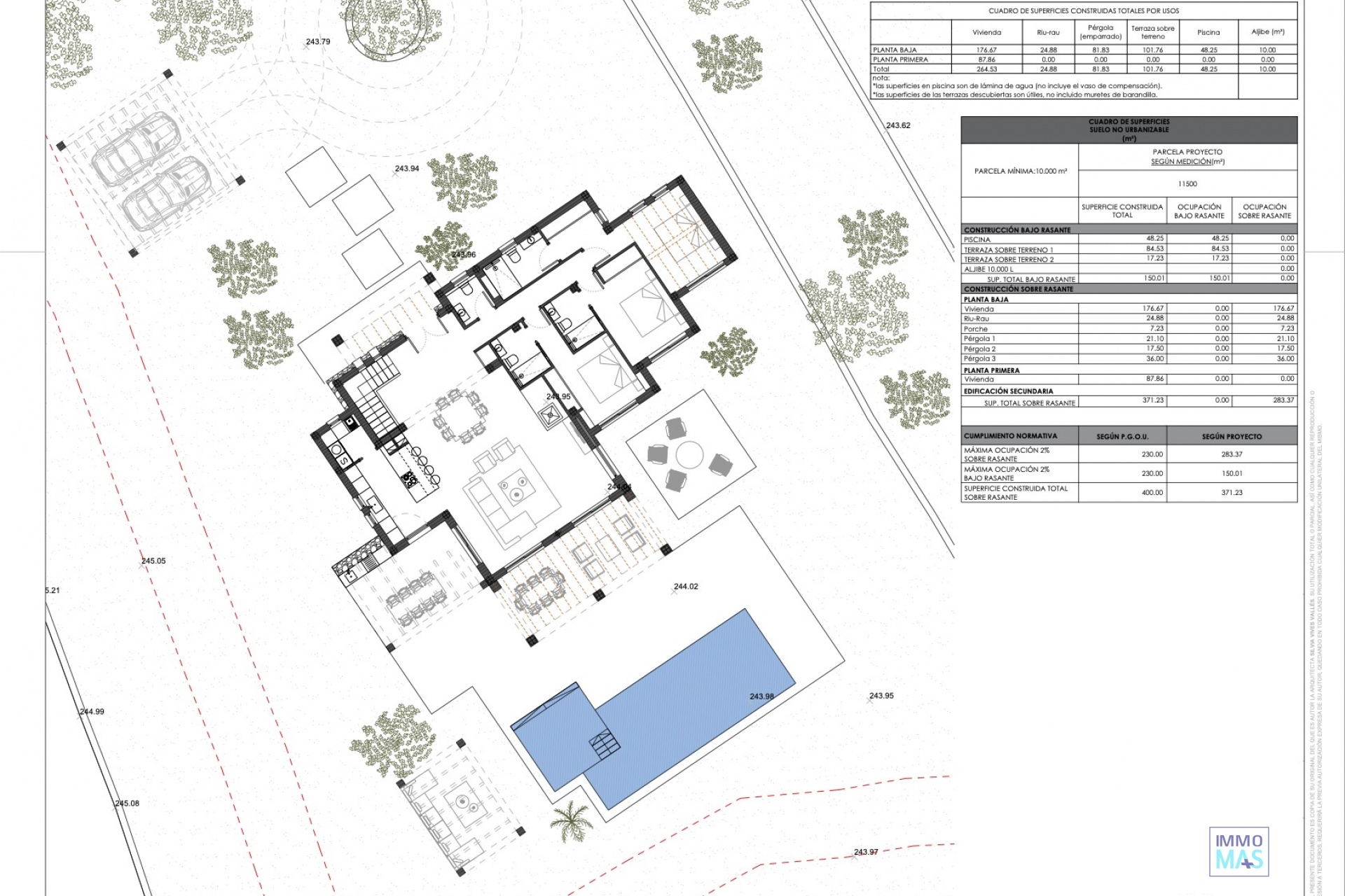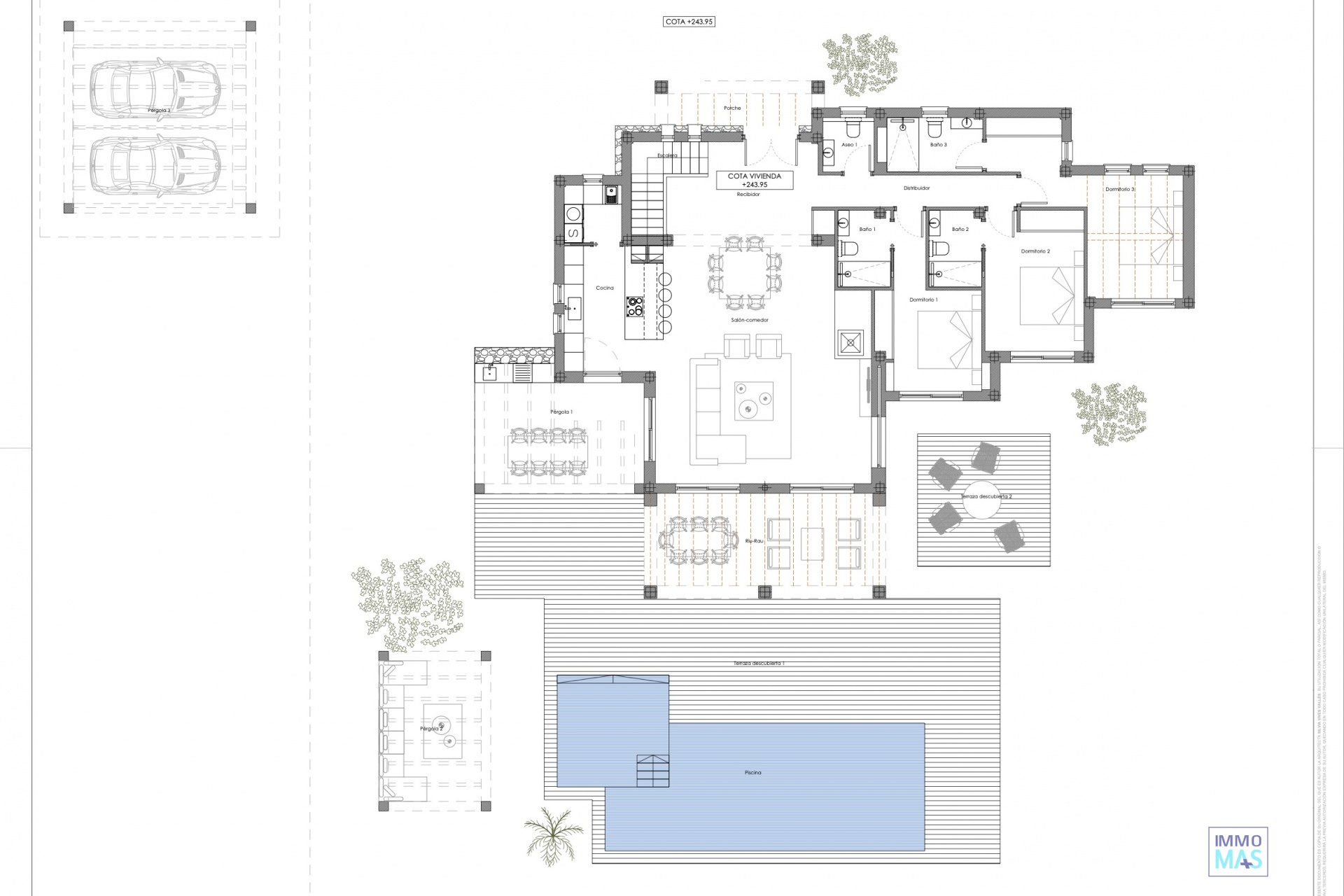 Découvrez cette élégante villa de style rustique méditerranéen, située sur un vaste terrain qui combine intimité et un environnement naturel inégalé. Avec une vue imprenable sur la mer et les montagnes, cette propriété exclusive offre le charme d'une maison de campagne traditionnelle avec toutes les commodités modernes. La maison dispose de chambres spacieuses, toutes avec salles de bains privatives, ainsi qu'un toilette invités. Les intérieurs se distinguent par leurs matériaux de haute qualité, avec un design qui combine des éléments rustiques et méditerranéens, de grandes fenêtres et une menuiserie Technal qui maximisent la connexion avec le paysage. Le confort est garanti grâce au système de chauffage au sol et à la climatisation gainable. L'extérieur invite à profiter de la vie en plein air avec de vastes espaces ouverts, des jardins et des terrasses qui tirent le meilleur parti des vues panoramiques. La propriété dispose également d'un stationnement extérieur et offre des possibilités de personnalisation. De plus, 6.000 m2 du domaine sont utilisés pour la culture du traditionnel raisin muscat de la région. Cette villa est unique et combine le luxe contemporain avec le caractère rustique, idéale pour ceux qui recherchent un style de vie exclusif, calme mais proche des plages et de tous les services. Il est également possible d'ajouter un sous-sol sur toute la surface de l'occupation de la maison pour un coût de 155.000 €, fini au même niveau que le reste de la maison et personnalisable.
