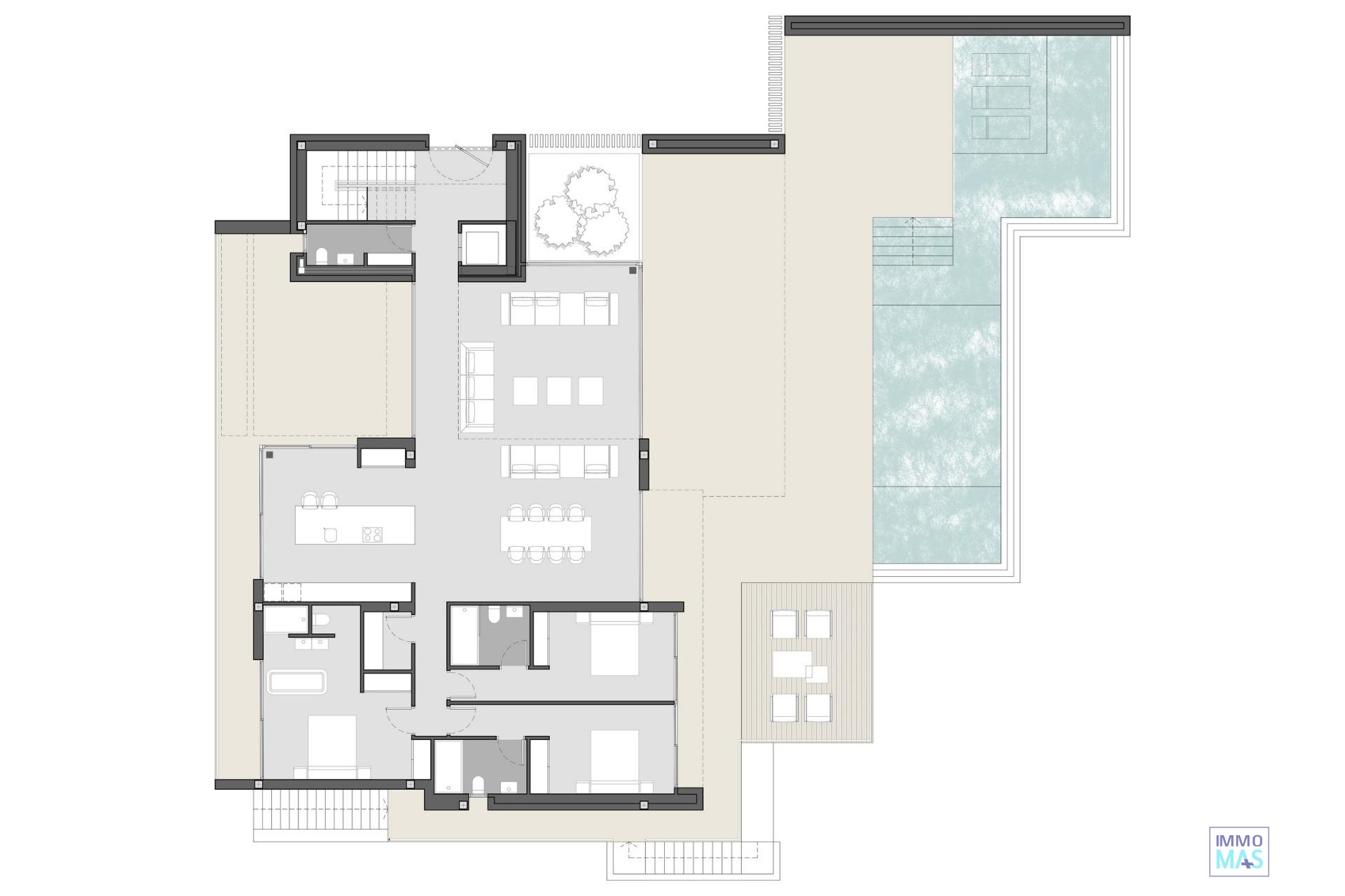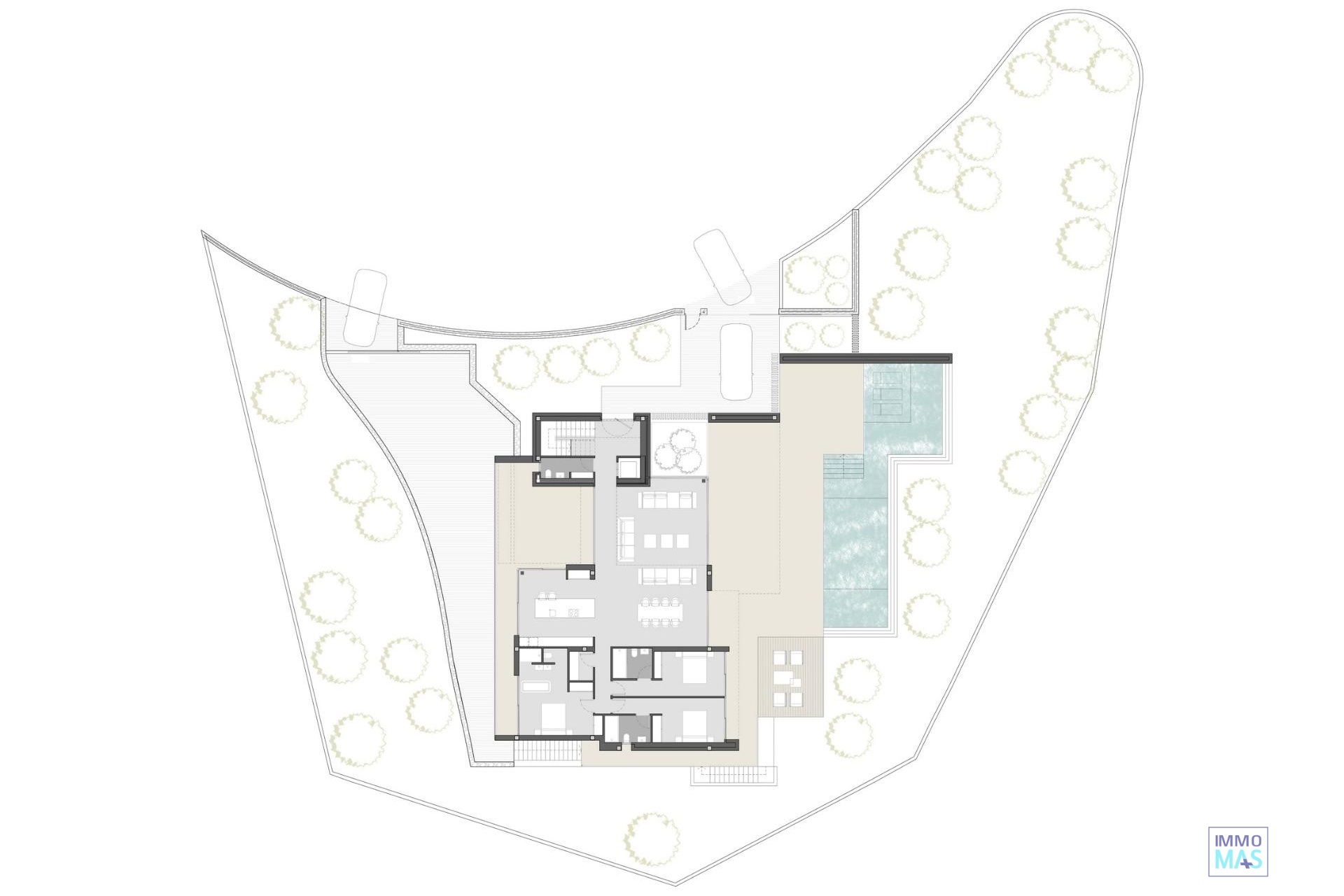 Villa contemporaine de luxe avec vue sur la mer à Benimeit, Moraira Cette villa contemporaine exclusive allie à la perfection fonctionnalité, architecture élégante et finitions haut de gamme. Située dans le quartier résidentiel très prisé de Benimeit à Moraira, la propriété occupe un terrain en hauteur sur une colline, offrant une vue panoramique imprenable sur le paysage environnant et la mer Méditerranée. La villa se trouve à moins de 3 km du littoral, offrant un équilibre parfait entre intimité, tranquillité et accès facile à la plage et aux commodités locales. La conception de la maison a été soigneusement pensée pour créer une transition harmonieuse entre les espaces de vie intérieurs et extérieurs, maximisant la lumière naturelle et permettant au magnifique cadre environnant de s'intégrer au quotidien. Un vaste espace de vie ouvert avec une transition fluide entre l'intérieur et l'extérieur Le rez-de-chaussée comprend un grand espace de vie et de repas ouvert qui communique directement avec les terrasses extérieures et l'espace piscine. Des baies vitrées ouvrent tout l'espace sur l'extérieur, créant une atmosphère lumineuse et aérée tout en encadrant les vues panoramiques. Le salon s'ouvre également sur l'arrière de la propriété, offrant une vue des deux côtés et favorisant la ventilation naturelle. La cuisine design moderne est équipée de meubles Savi de haute qualité et d'appareils électroménagers Miele haut de gamme, alliant style et fonctionnalité pour la vie quotidienne et les réceptions. La villa offre un agencement des chambres bien pensé, conçu pour maximiser la vue et l'intimité. Deux chambres d'amis s'ouvrent sur le côté est de la propriété, tandis que la chambre principale du rez-de-chaussée bénéficie d'une vue vers l'ouest. L'ensemble du rez-de-chaussée entretient un lien étroit avec les espaces extérieurs, notamment une grande terrasse couverte donnant sur la piscine à débordement et la vue, ainsi qu'une pergola arrière plus intime, idéale pour des moments de détente. L'étage supérieur est entièrement dédié à l'impressionnante suite parentale, un espace spectaculaire qui couronne la propriété et bénéficie d'une vue panoramique à près de 180 degrés sur le paysage environnant et la mer Méditerranée. Cette propriété de luxe intègre des matériaux de première qualité et des technologies de pointe dans toute la maison. Elle est notamment équipée de fenêtres Technal avec isolation à l'argon, d'un chauffage au sol et d'une climatisation centralisée avec pompe à chaleur, ainsi que d'un système domotique intelligent Niessen FreeHome avec contrôle individuel de la température par pièce via Airzone. Parmi les autres caractéristiques, citons un ascenseur reliant les trois niveaux, une buanderie entièrement équipée avec des appareils Miele, une piscine à débordement sans chlore, des panneaux solaires de 4,5 kW, un système d'alarme, un garage souterrain pour deux voitures et une place de parking extérieure supplémentaire. Emplacement de choix sur la Costa Blanca Moraira est l’une des villes côtières les plus prisées de la Costa Blanca, réputée pour son charmant port de plaisance, son style de vie méditerranéen décontracté et son excellente gastronomie. La ville offre de magnifiques plages et criques telles que Playa de l’Ampolla, Cala Cap Blanc et l’impressionnante Cala del Moraig. Les principales distances sont les suivantes : centre-ville de Moraira à 3 km, plage de Playa de l'Ampolla à 3 km, Club de Golf Ifach à 4 km, port de Marina Moraira à 3,5 km, aéroport international d'Alicante à 90 km et aéroport de Valence à 125 km. Contactez-nous dès aujourd'hui pour plus d'informations ou pour organiser une visite privée de cette propriété exceptionnelle. 421